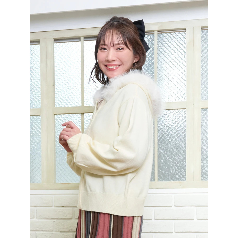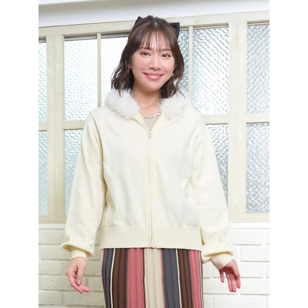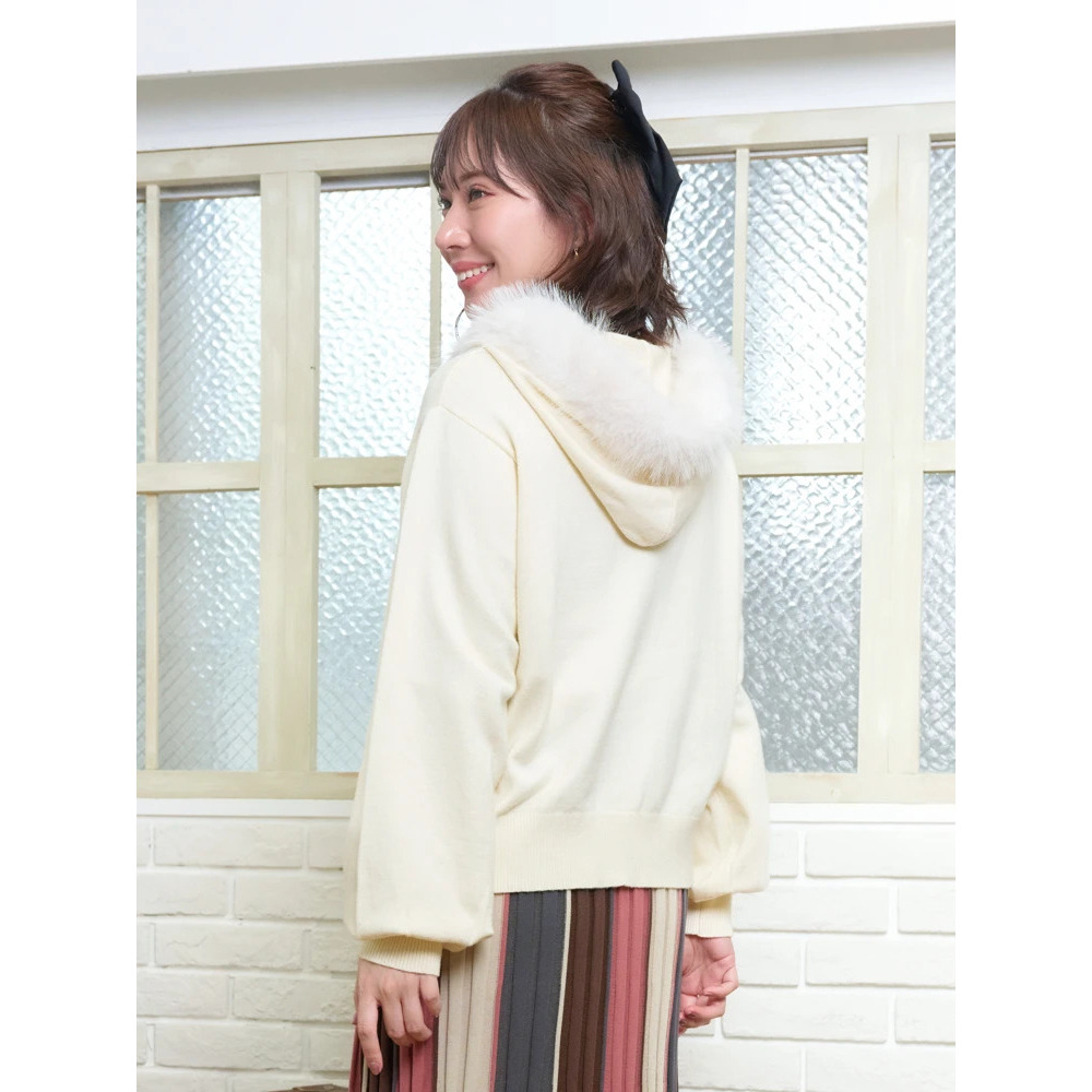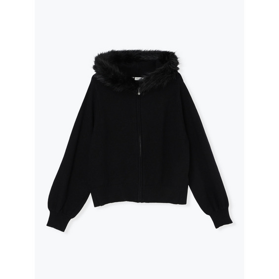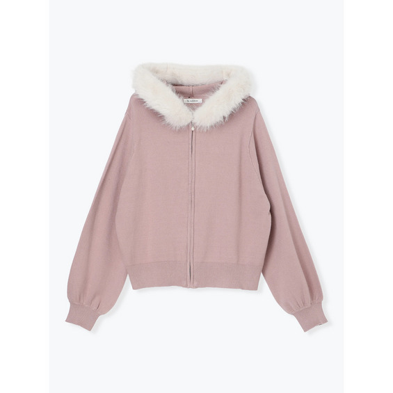 ファーフードニットZIPパーカー