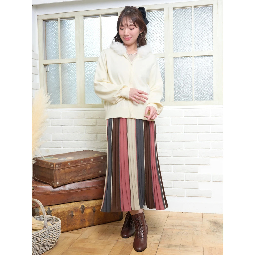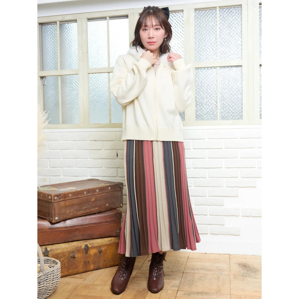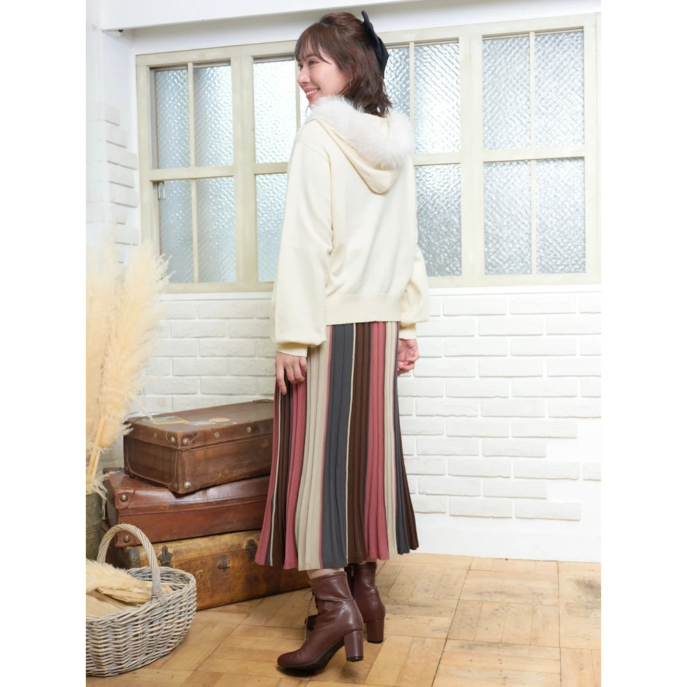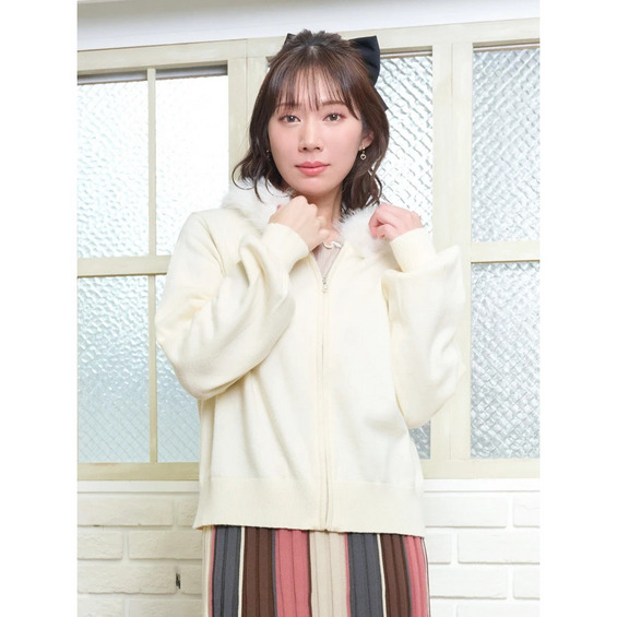 ファーフードニットZIPパーカー