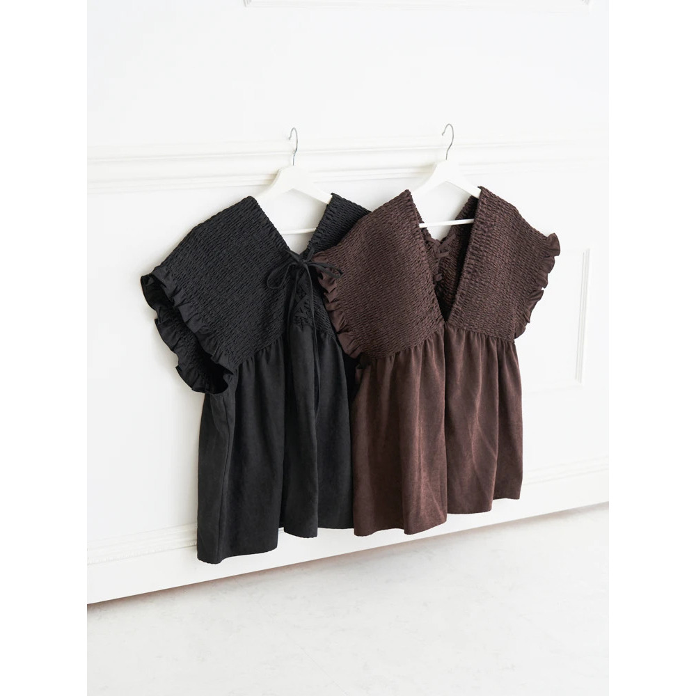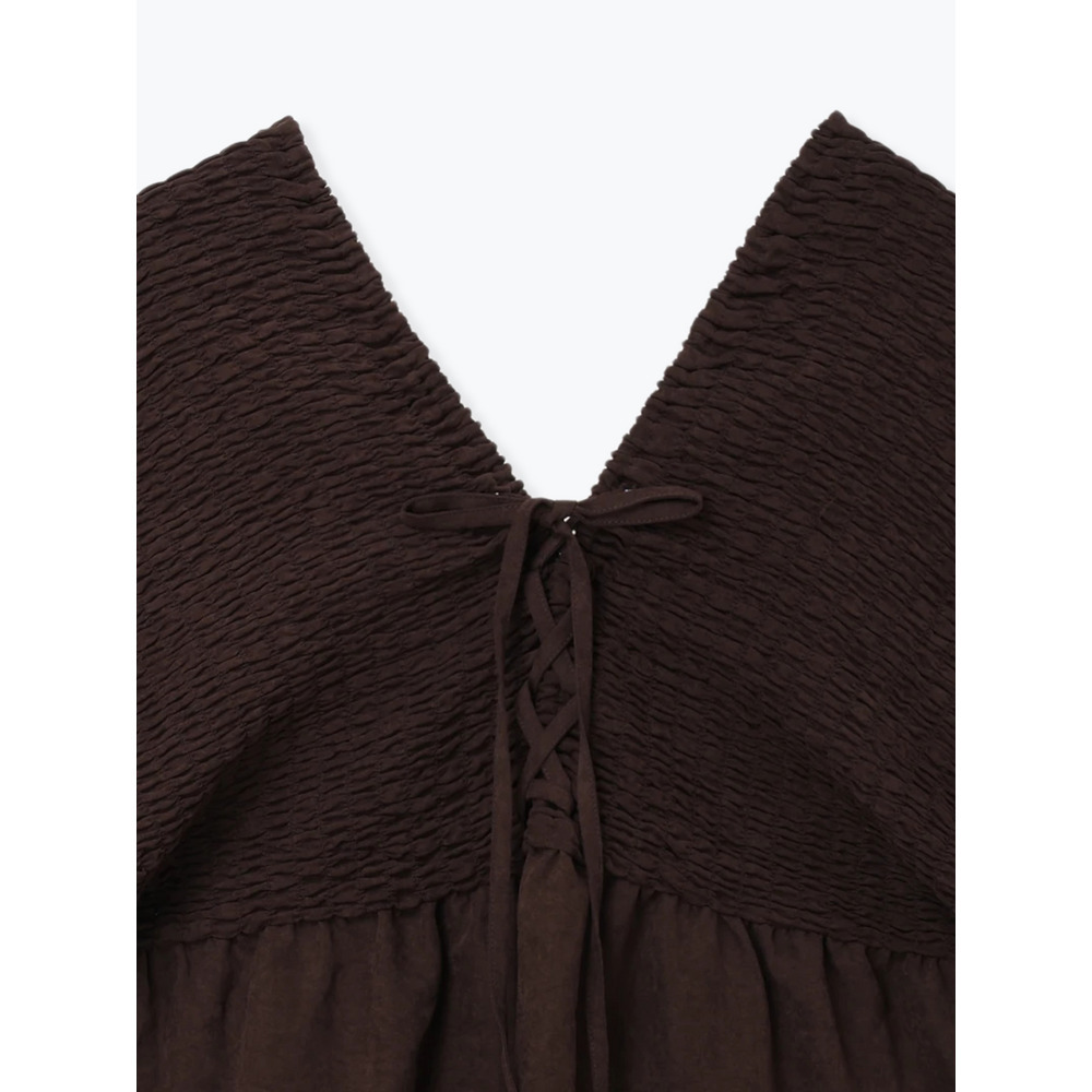 ・くしゅっとしたシャーリングデザインがコーディネートのアクセントに。