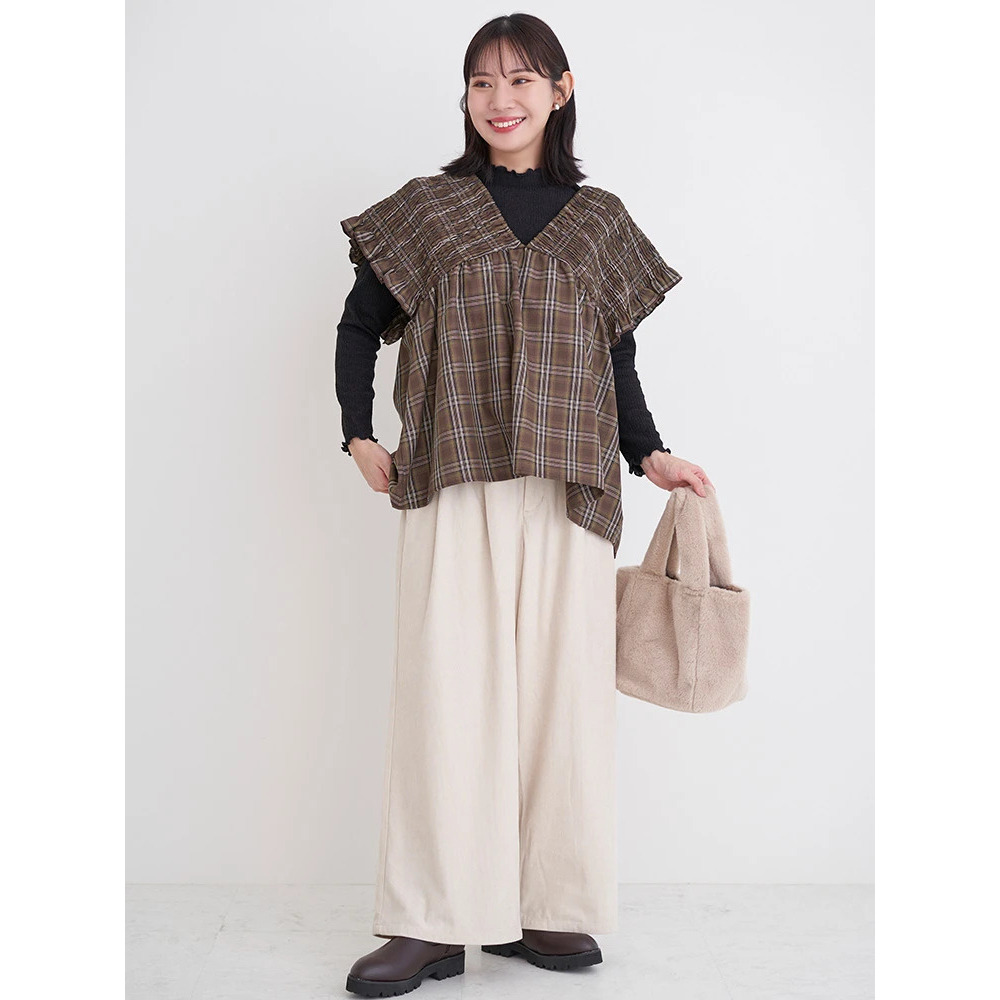 ・起毛感のあるコーデュロイ素材で、シンプルなコーディネートに加えるだけで温もりのある雰囲気に♪