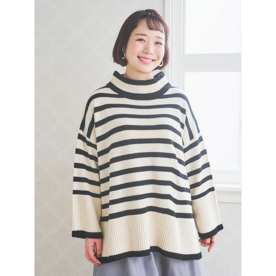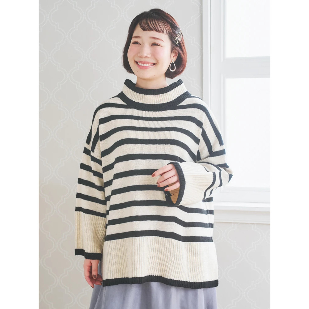 • プチハイネックゆるニットトップス(無地・ボーダー柄)12