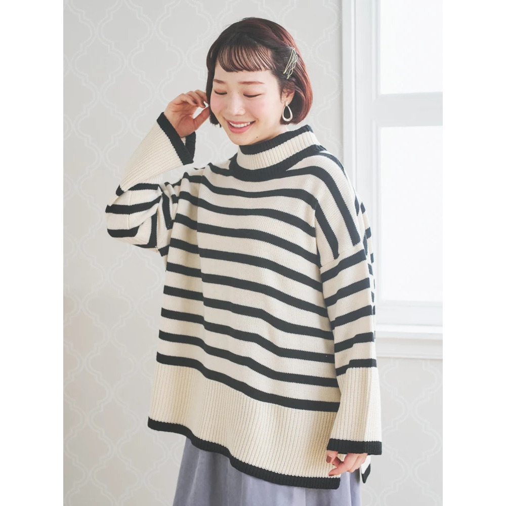 • プチハイネックゆるニットトップス(無地・ボーダー柄)24
