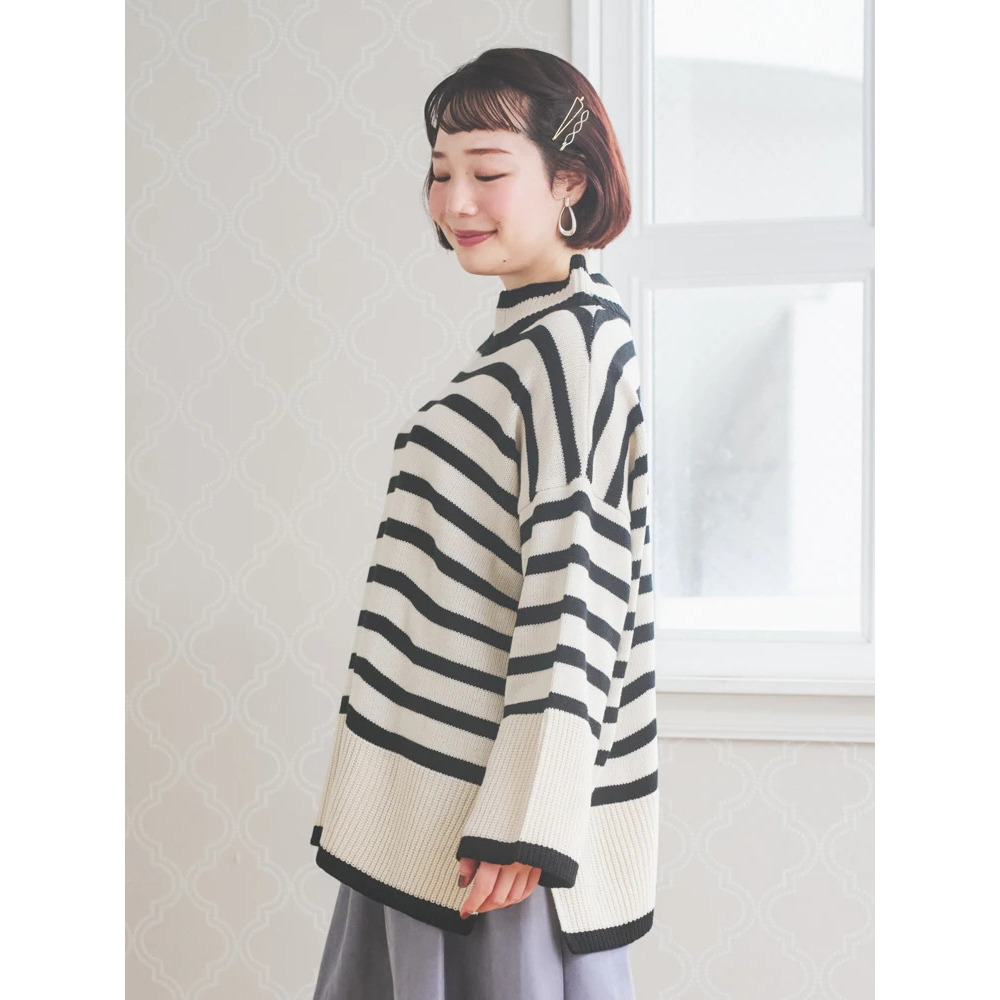 • プチハイネックゆるニットトップス(無地・ボーダー柄)22
