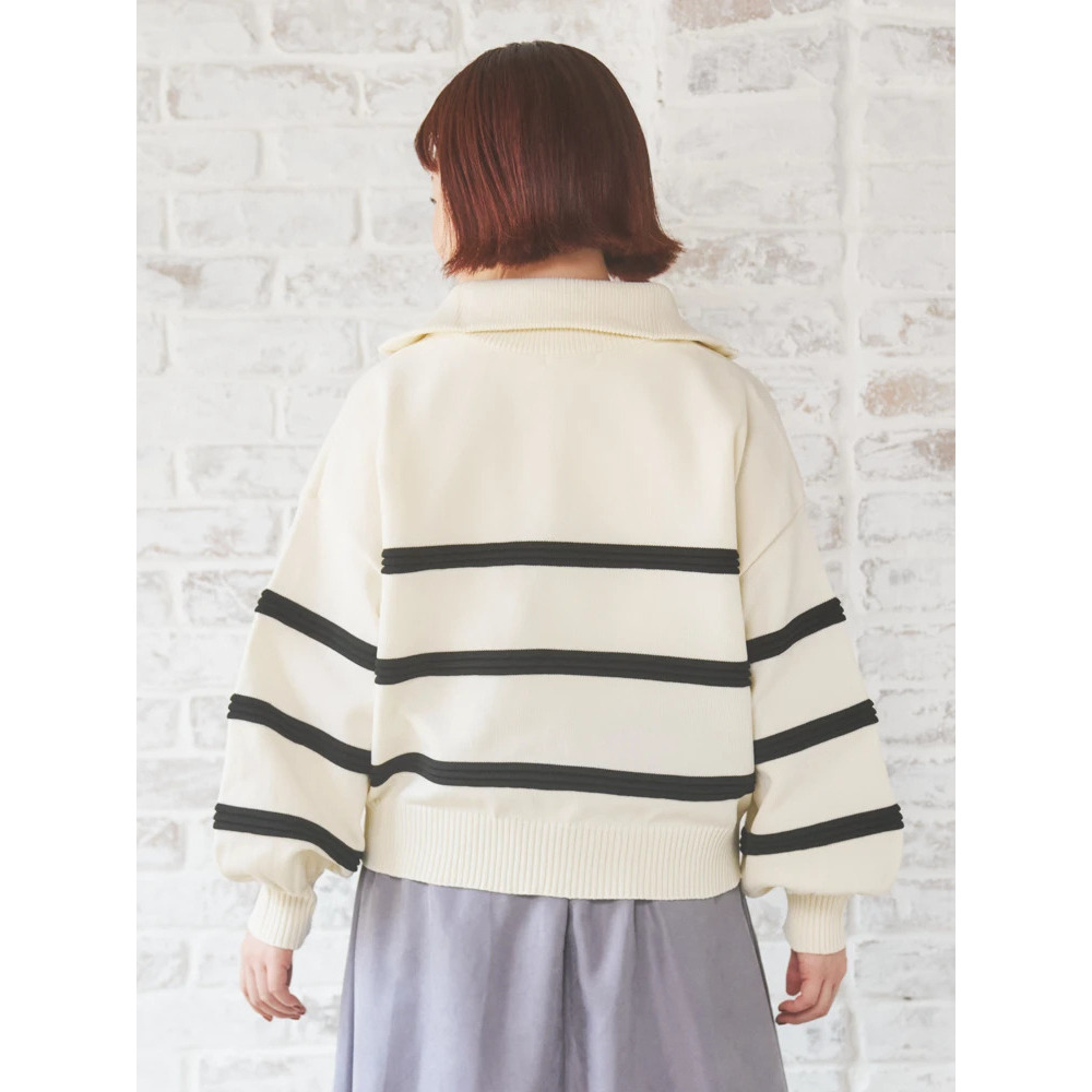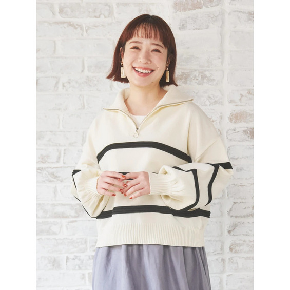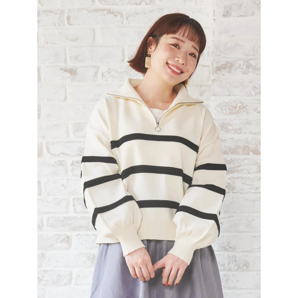• ボーダー柄スポンディッシュハーフZIPニットトップス10