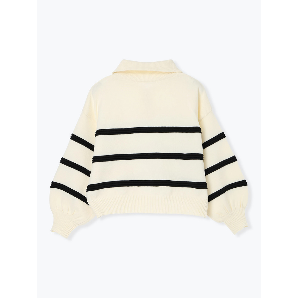 ボーダー柄スポンディッシュハーフZIPニットトップス