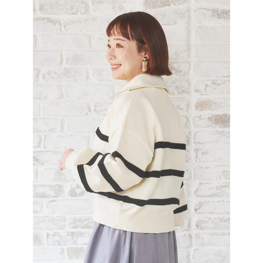 • ボーダー柄スポンディッシュハーフZIPニットトップス8