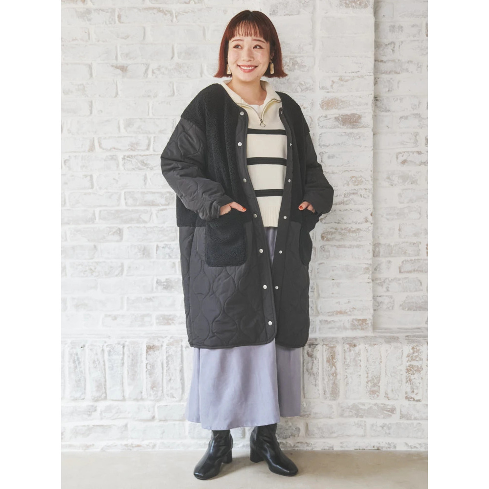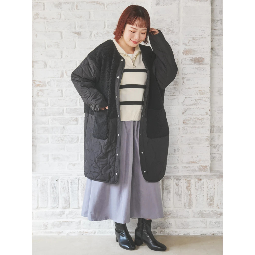 インナーにハイネックトップスを合わせて首元のレイヤードを楽しむ着こなしも◎!