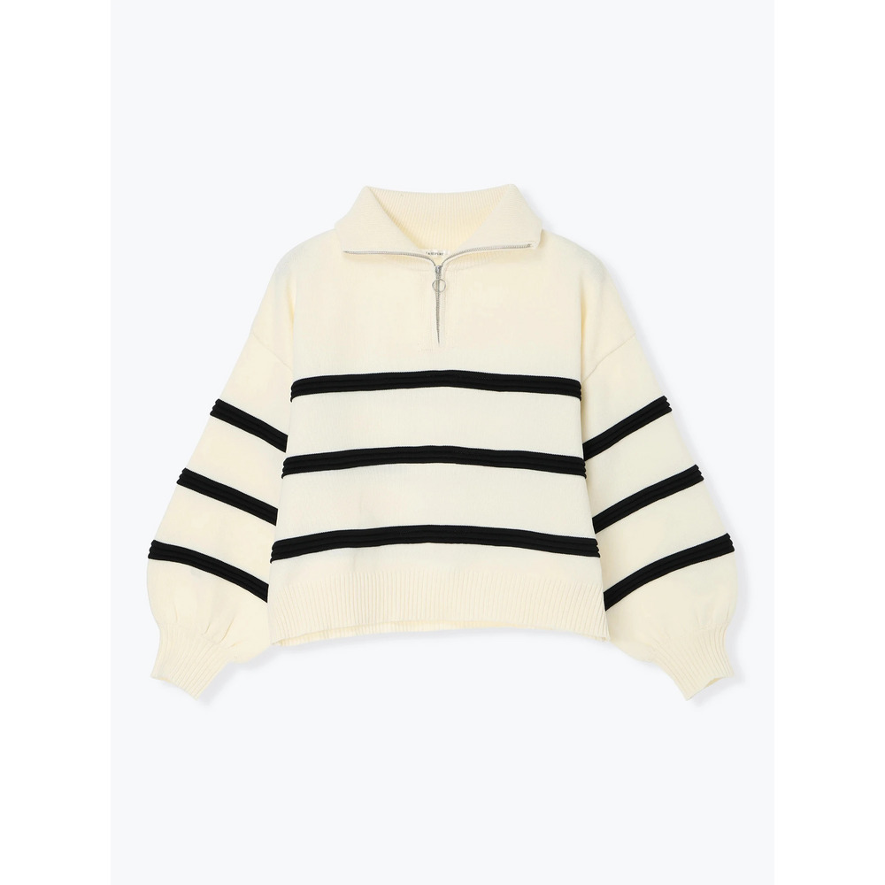 立体感のあるもこもこボーダーがアクセントになるハーフZIPニットトップス