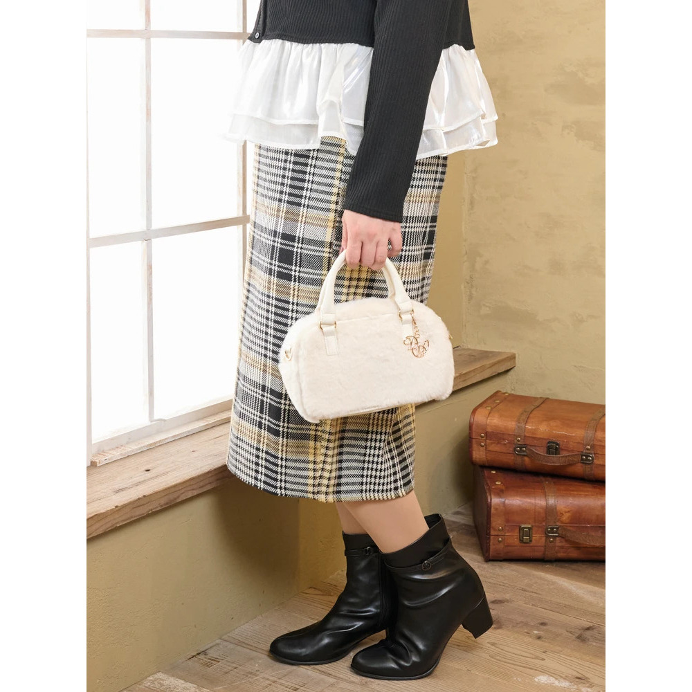 ・ツイード風のチェック柄素材がクシカルなムードを演出