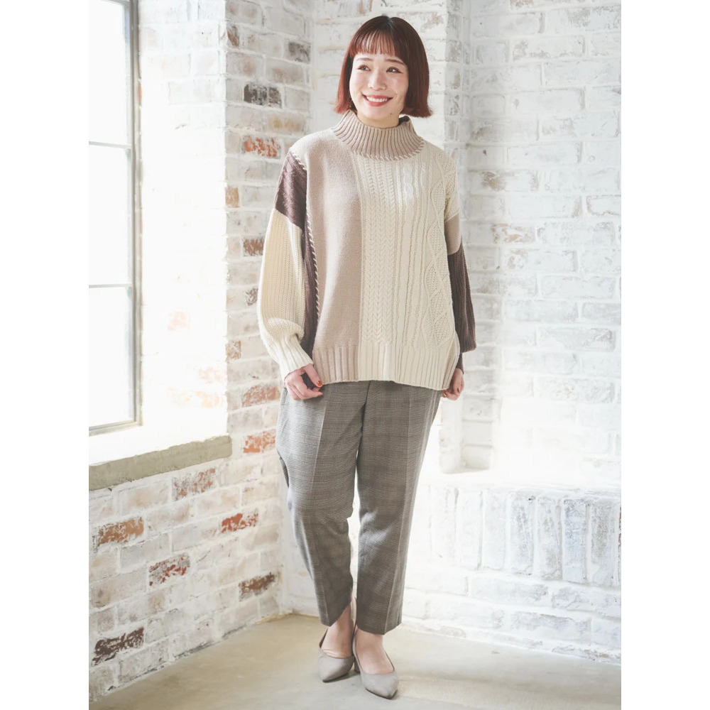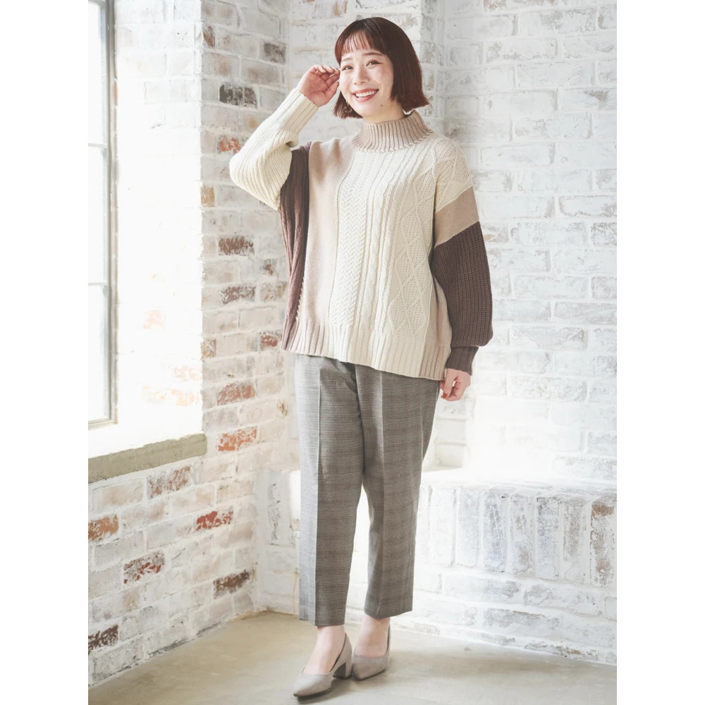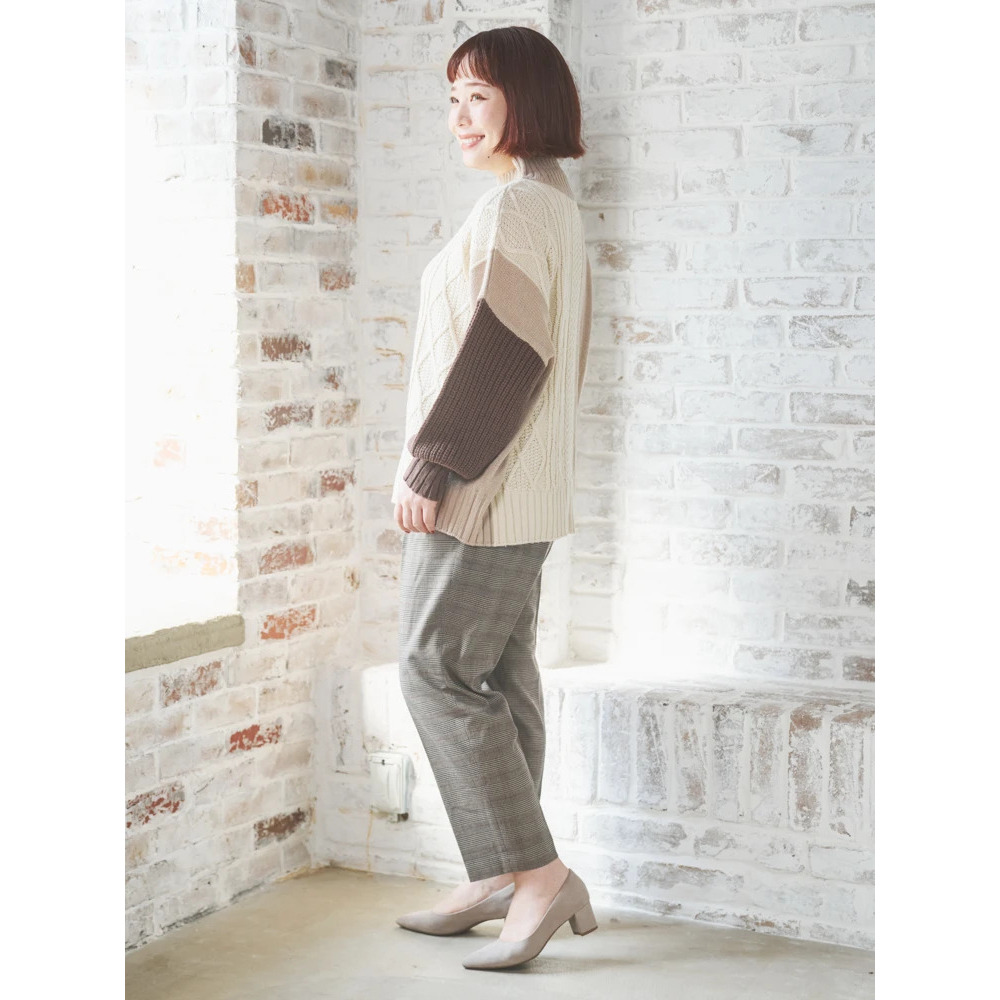 ゆったりシルエットのニットトップスやカーディガン、チュニック丈やペプラムトップスとのコーディネートは、バランスが良く着痩せ効果も◎