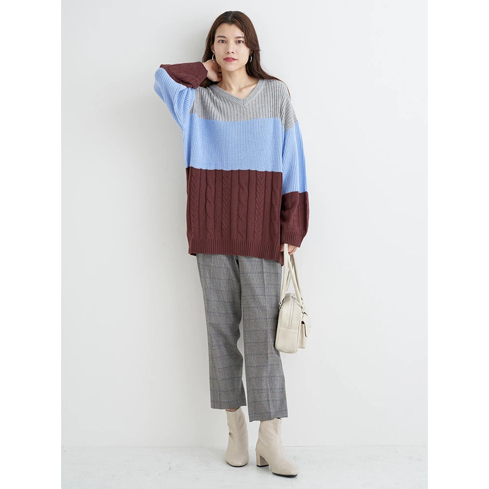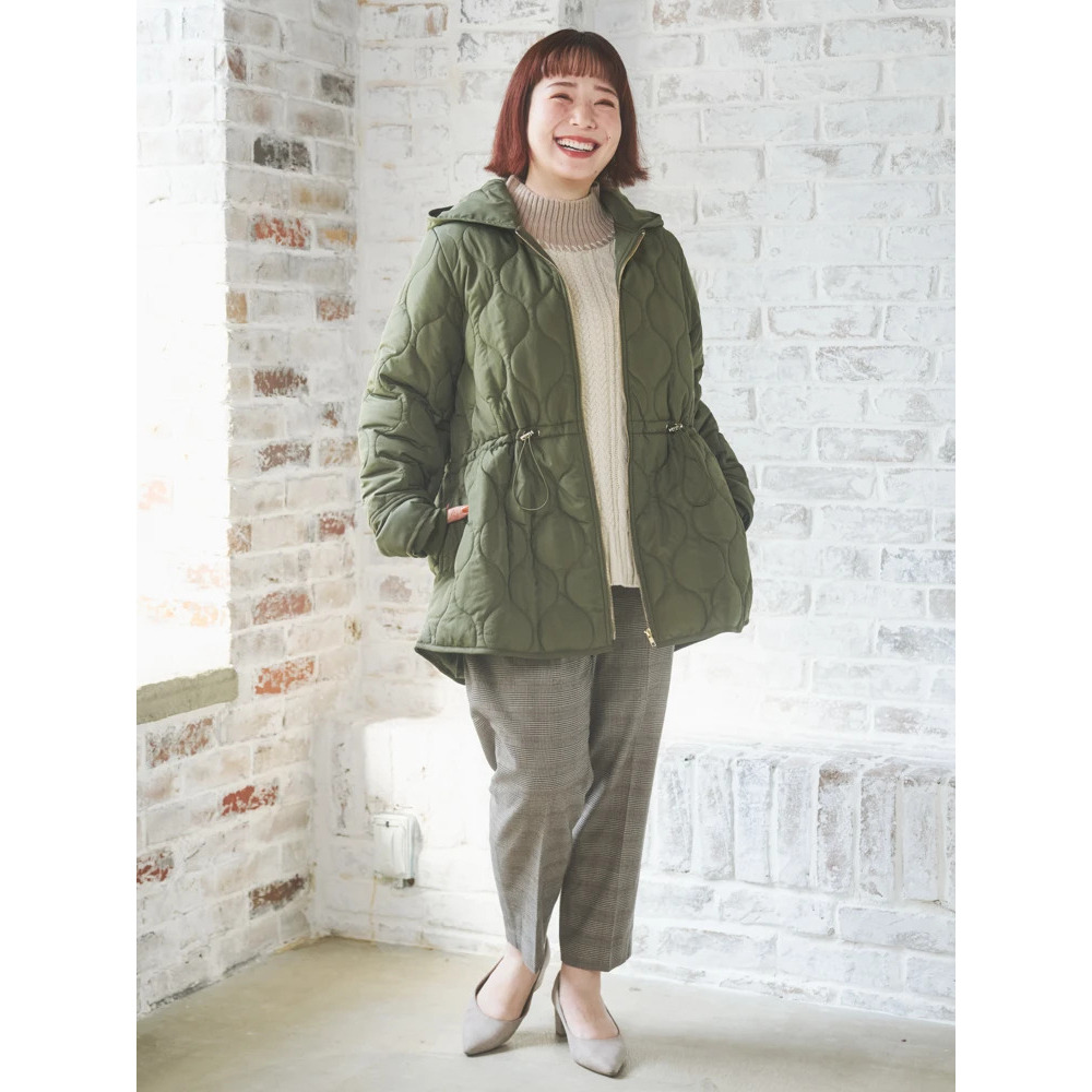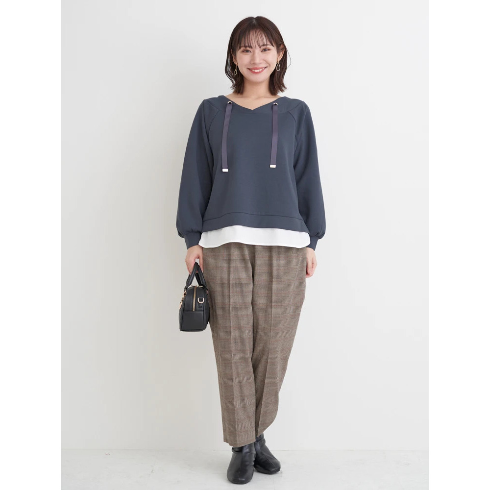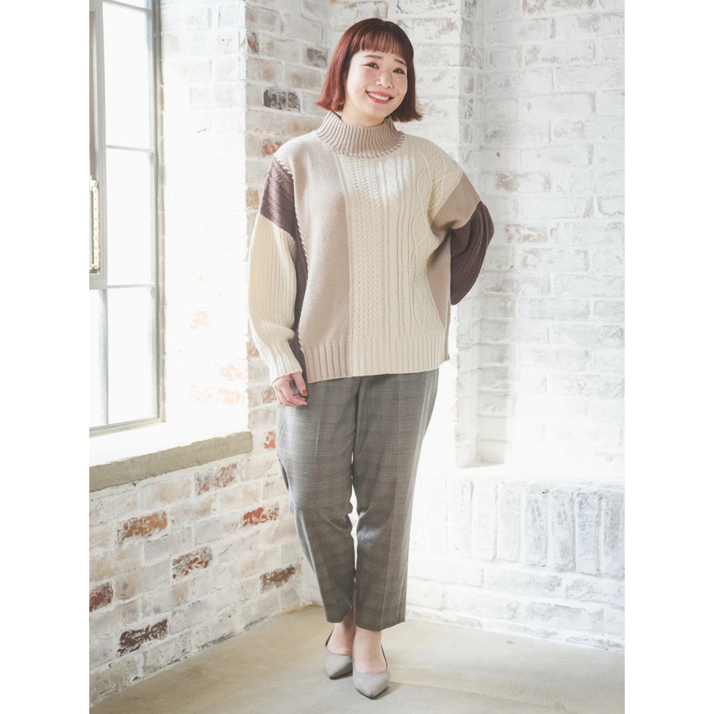 ゆったりシルエットのニットトップスやカーディガン、チュニック丈やペプラムトップスとのコーディネートは、バランスが良く着痩せ効果も◎