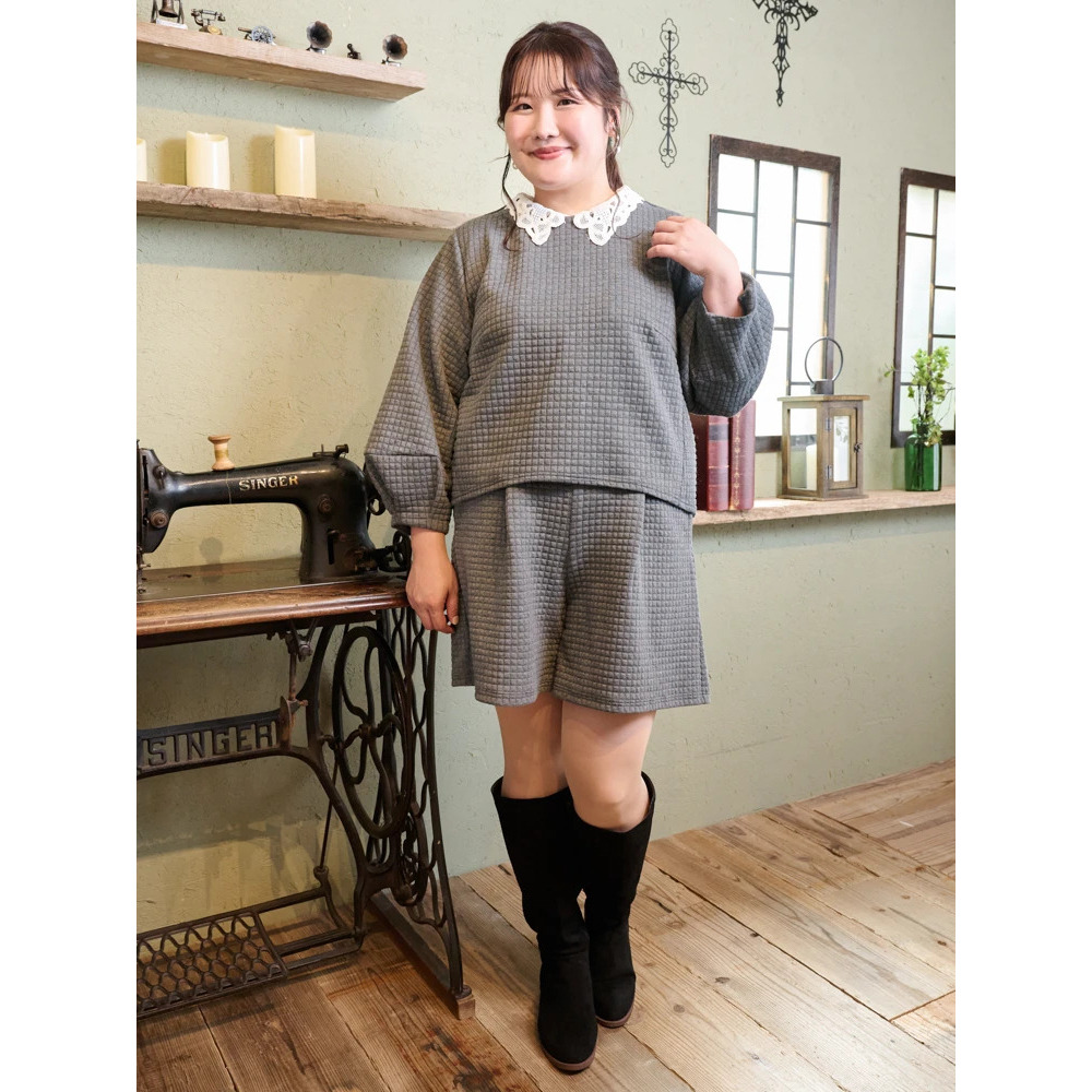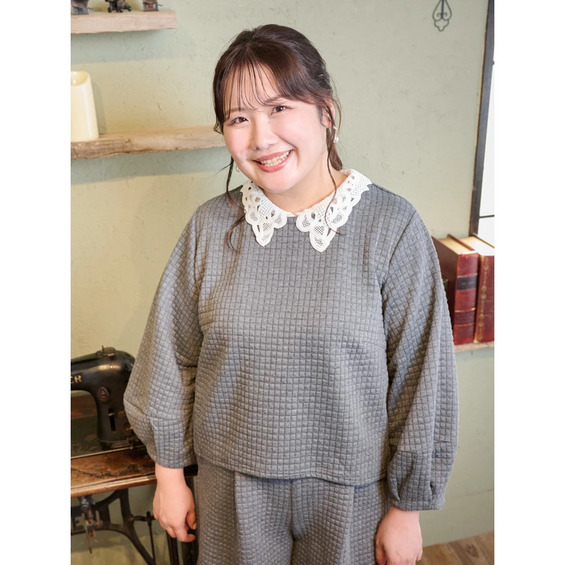 【Komachiコラボ】ふくれジャガードレース襟プルオーバー(セットアップ可)