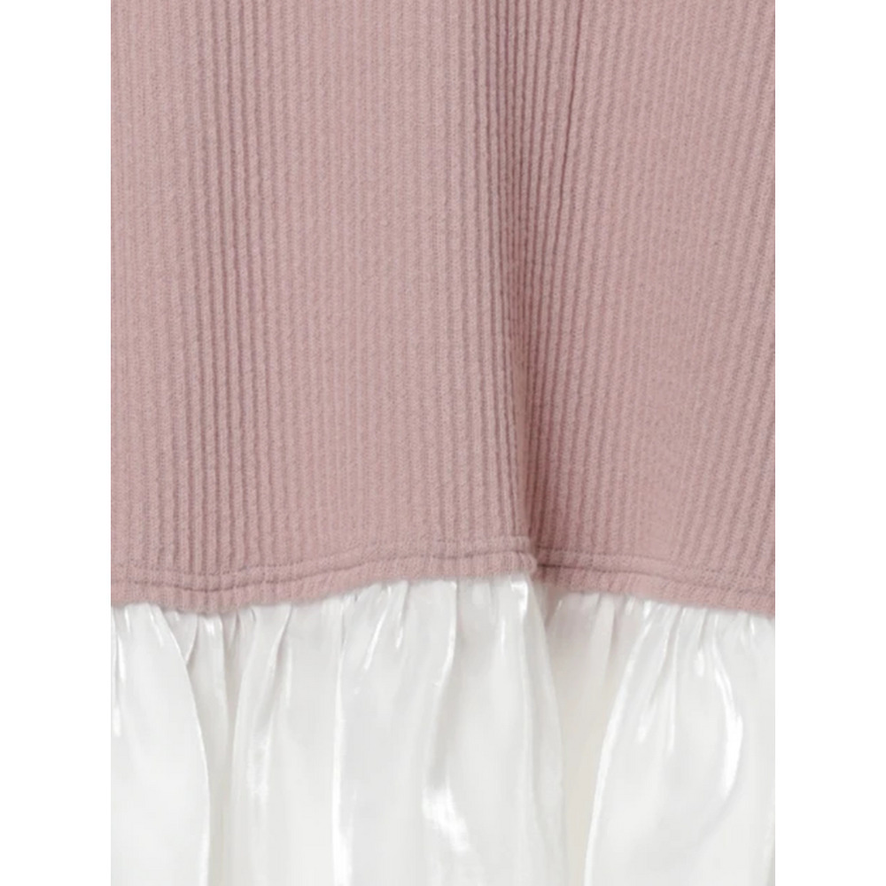 伸縮性があるリブカットソー素材×光沢感のあるサテン素材