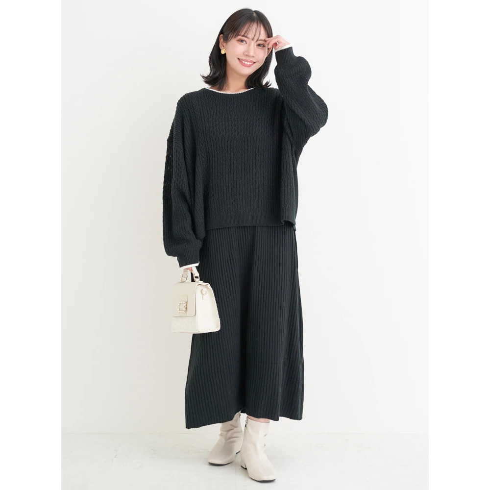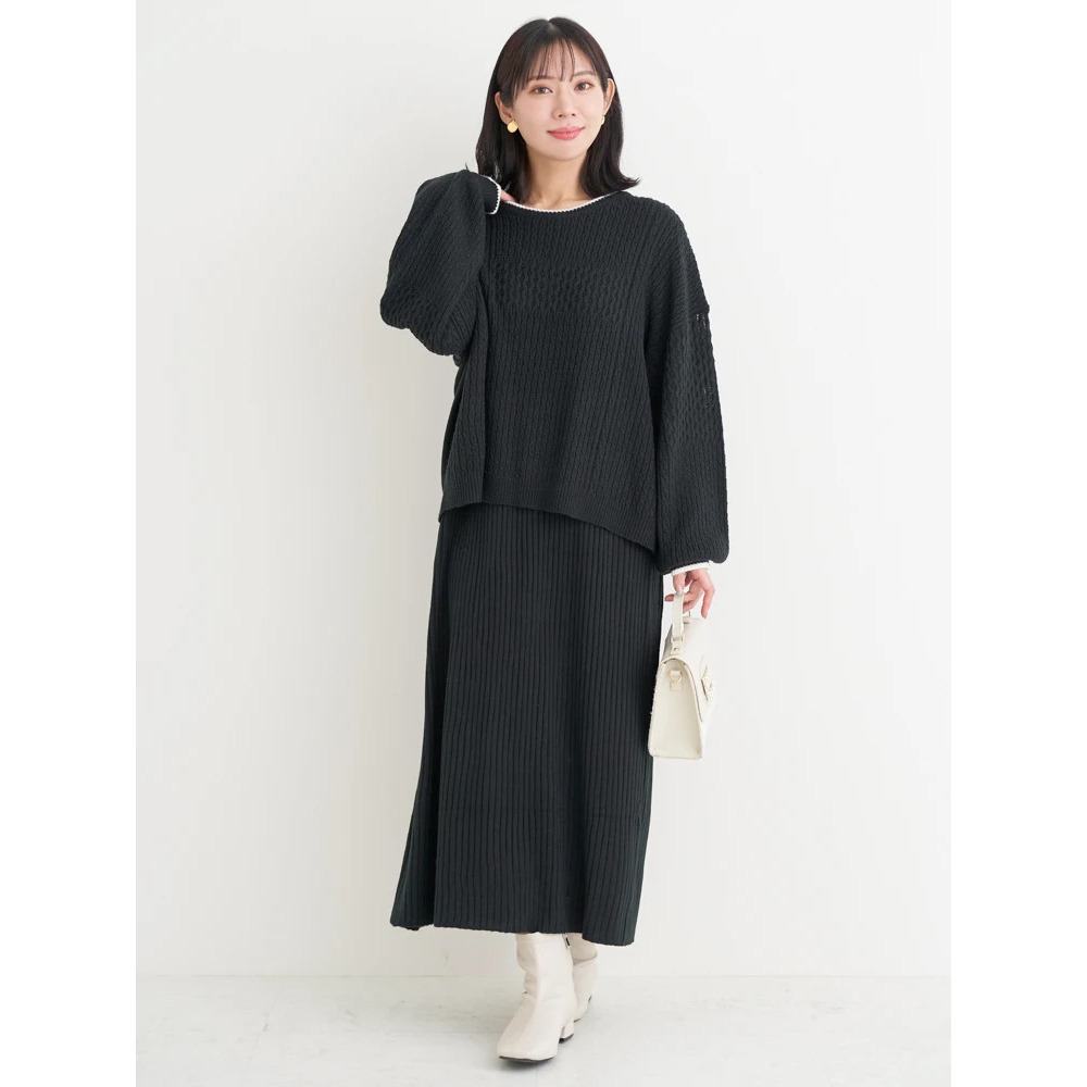 ・ワンピースは縦ラインを強調してくれるリブ編みで、すっきり見え◎。