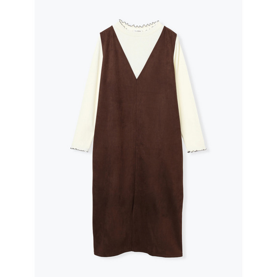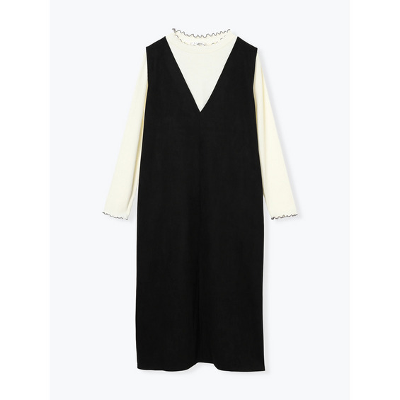 [SET]Vネックジャンパースカート×配色メローハイネックインナー