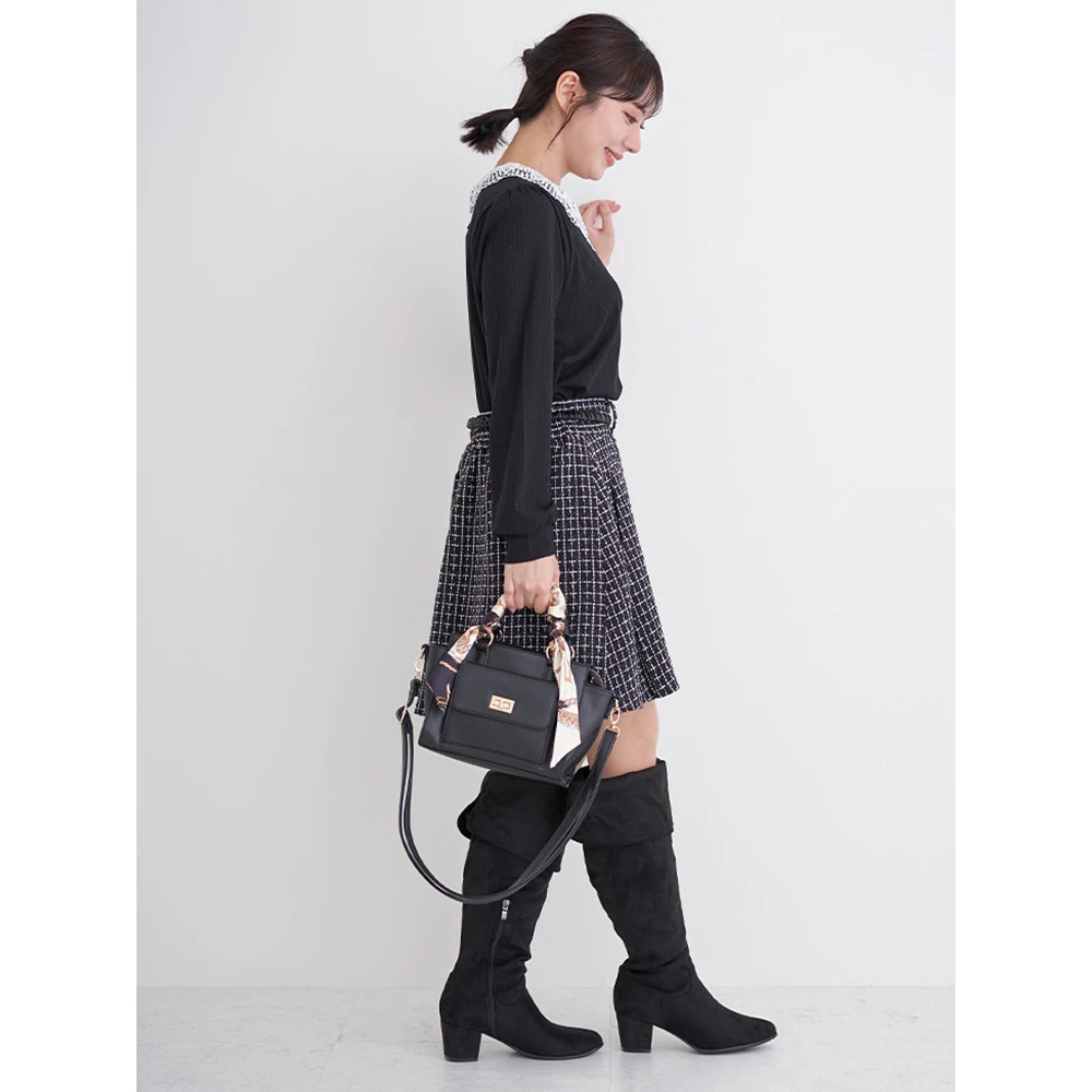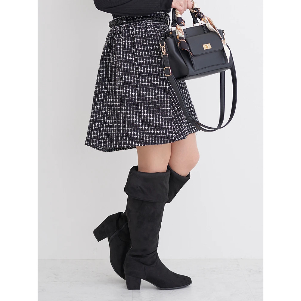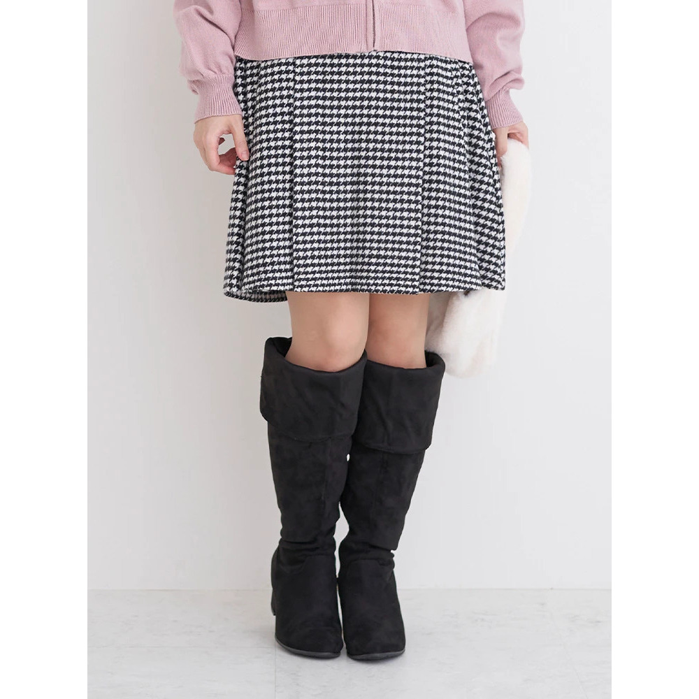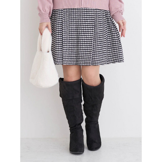 トレンドのロングブーツと合わせれば美脚効果も◎。