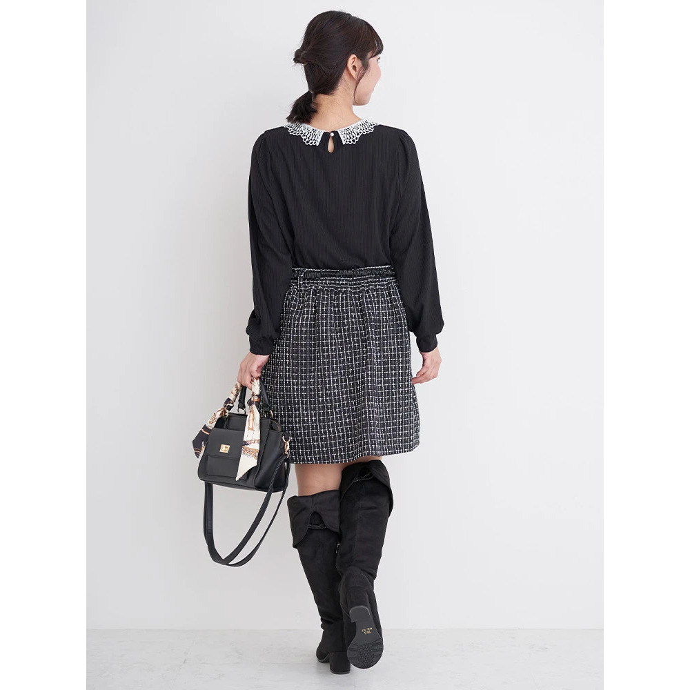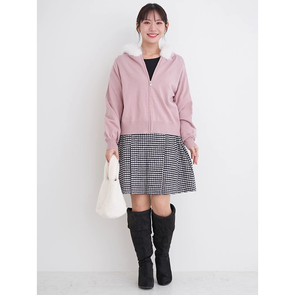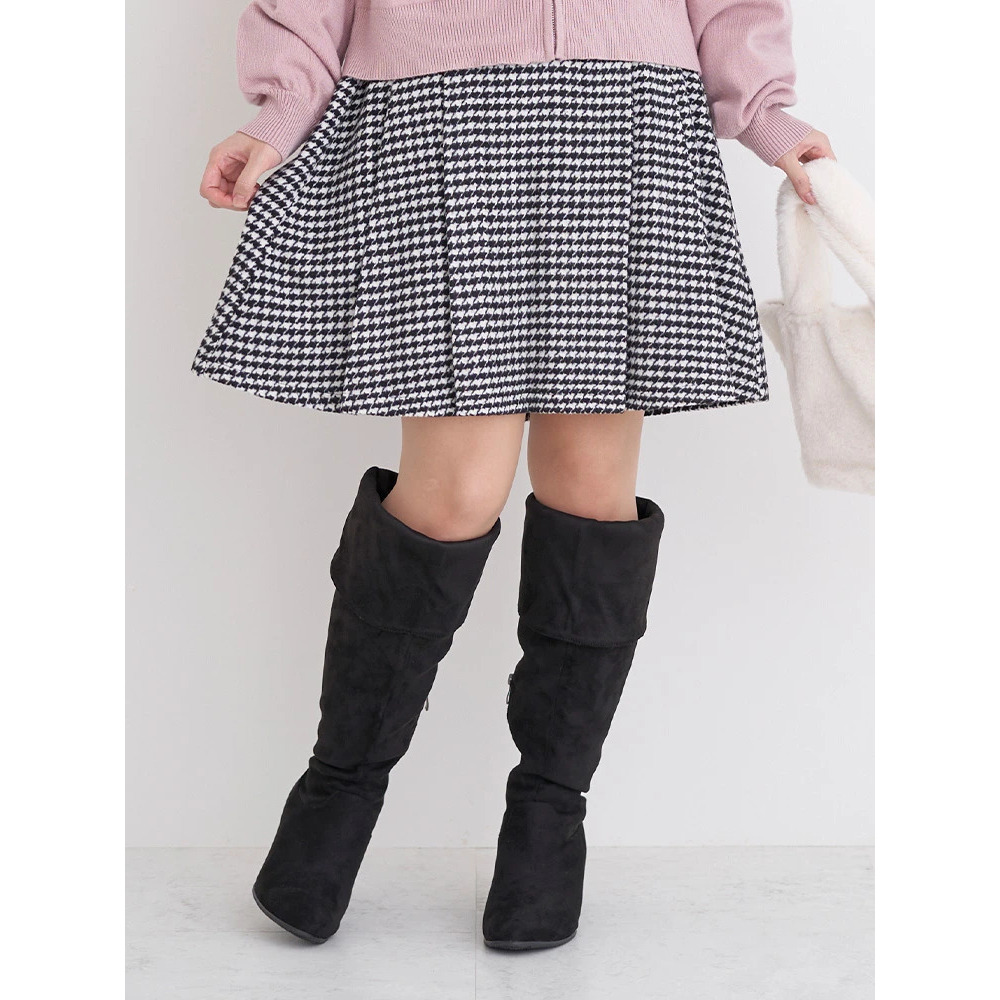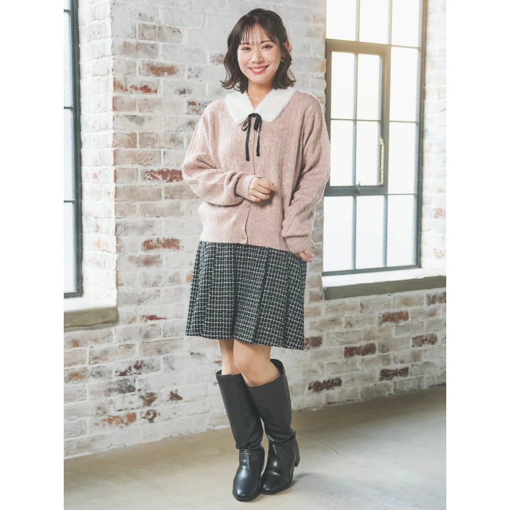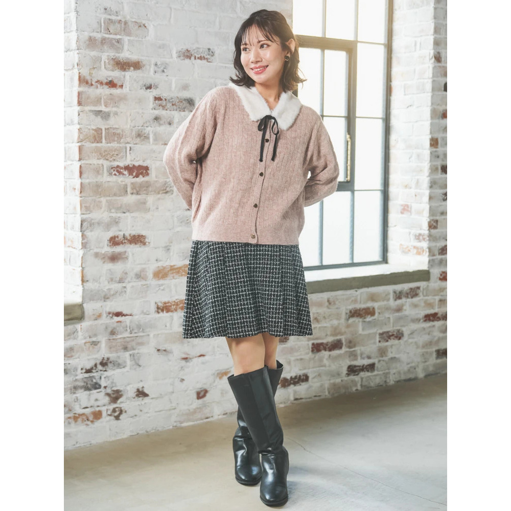 ・千鳥柄素材とツイード素材が子供っぽくならない着こなしに。