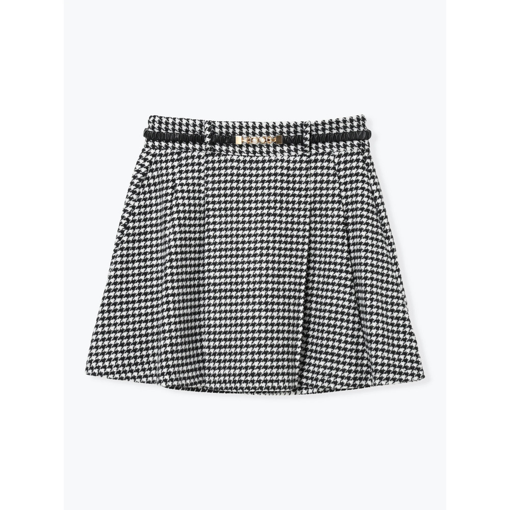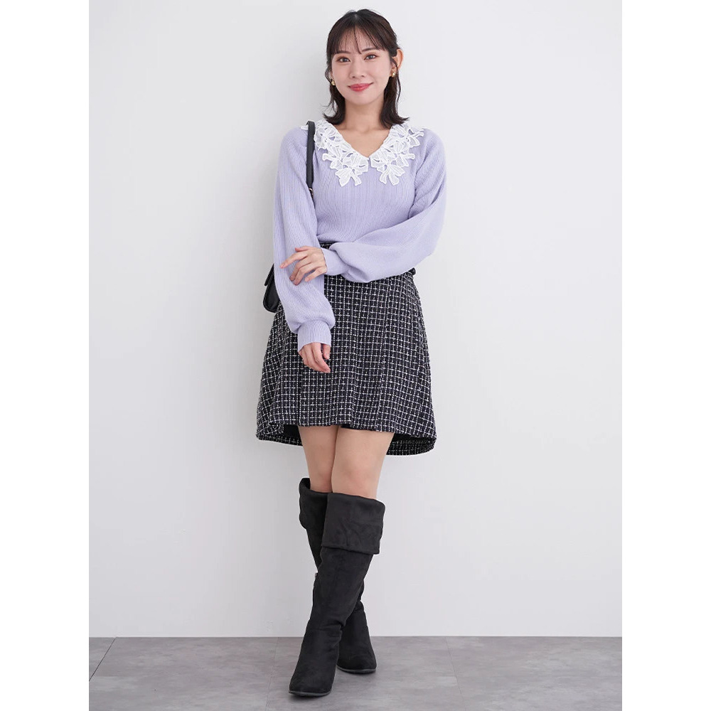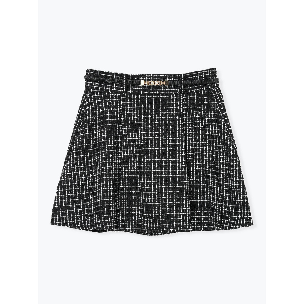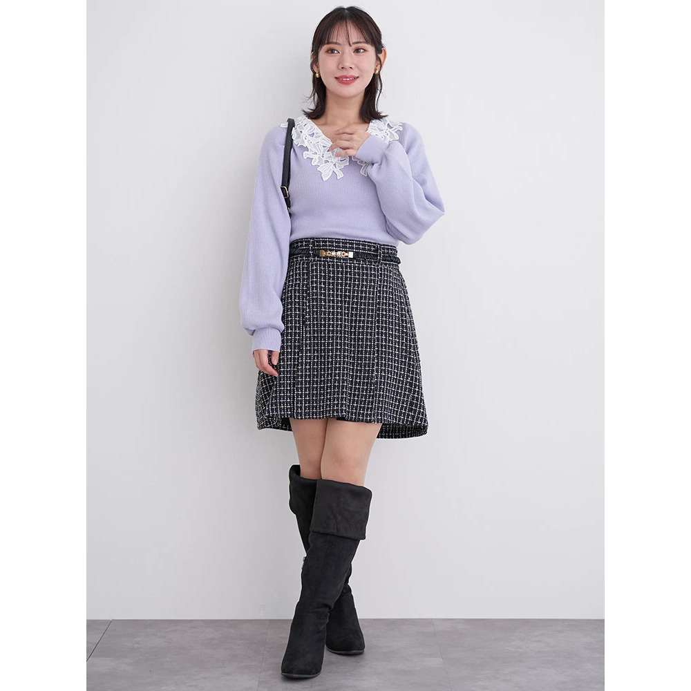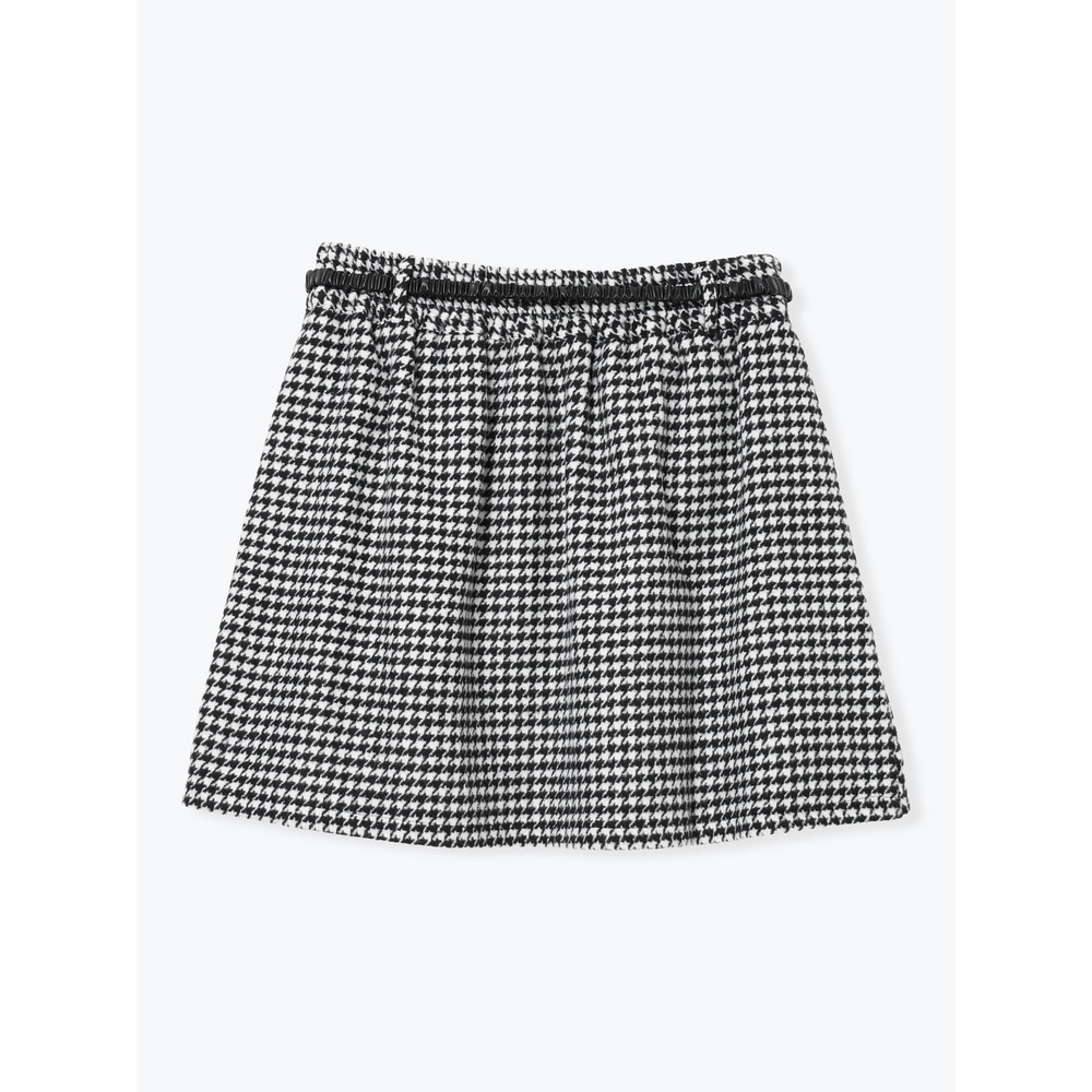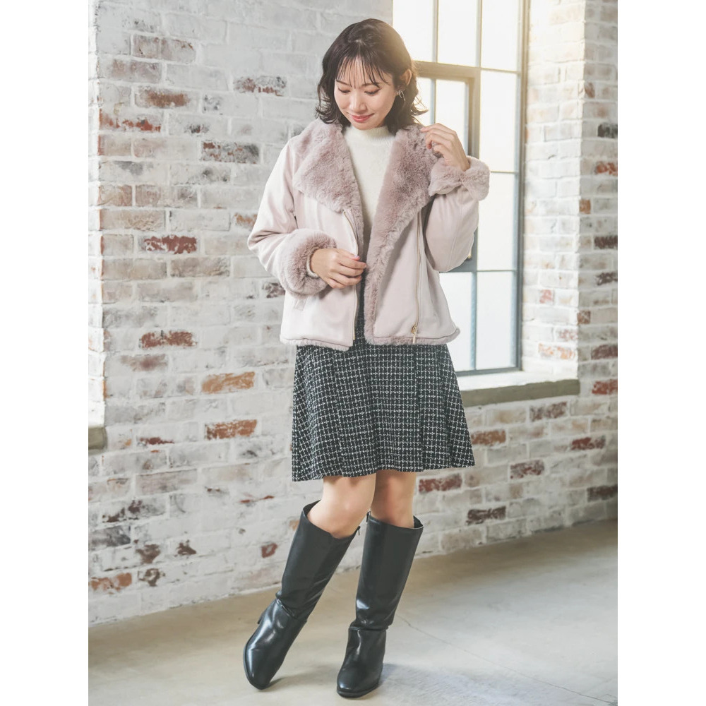 ・千鳥柄素材とツイード素材が子供っぽくならない着こなしに。