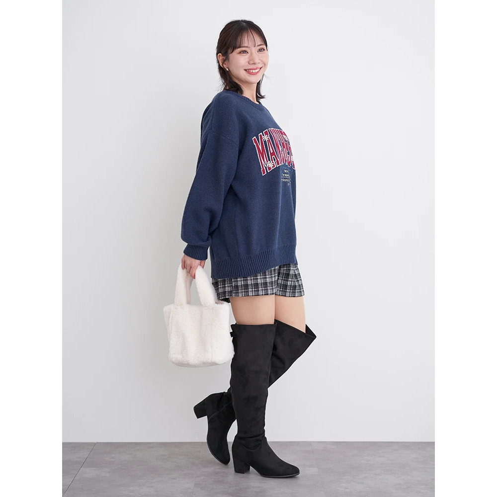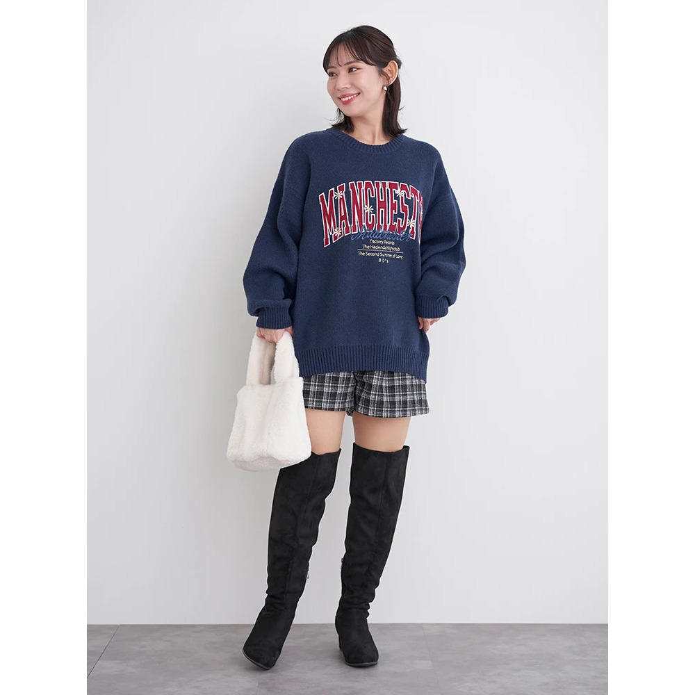 ロゴスウェットやゆったりパーカーを合わせたカジュアルスタイルや、ゆるめのふわふわニット×ロングブーツと合わせたガーリーなスタイルがおすすめ!