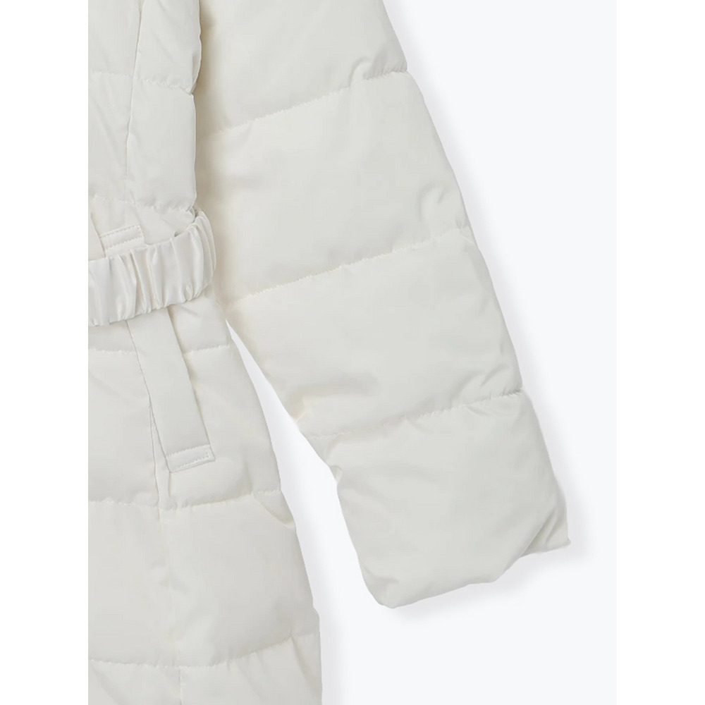 顔まわりを華やかに見せてくれるファーフードがアクセントになった中綿ロングコート