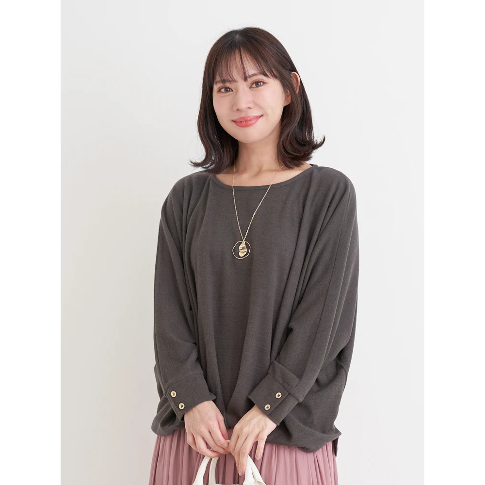 ・ゆったりめのドルマンデザインで気負いなく着られる。