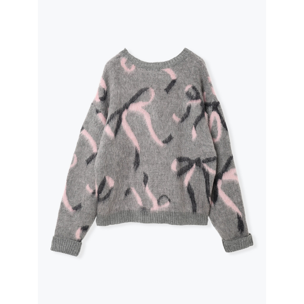 大胆に施されたリボン柄が目を惹くジャカードニットプルオーバー
