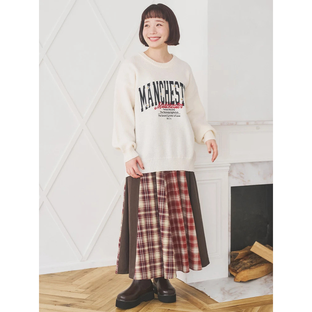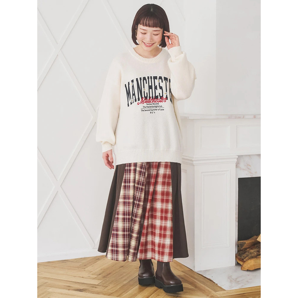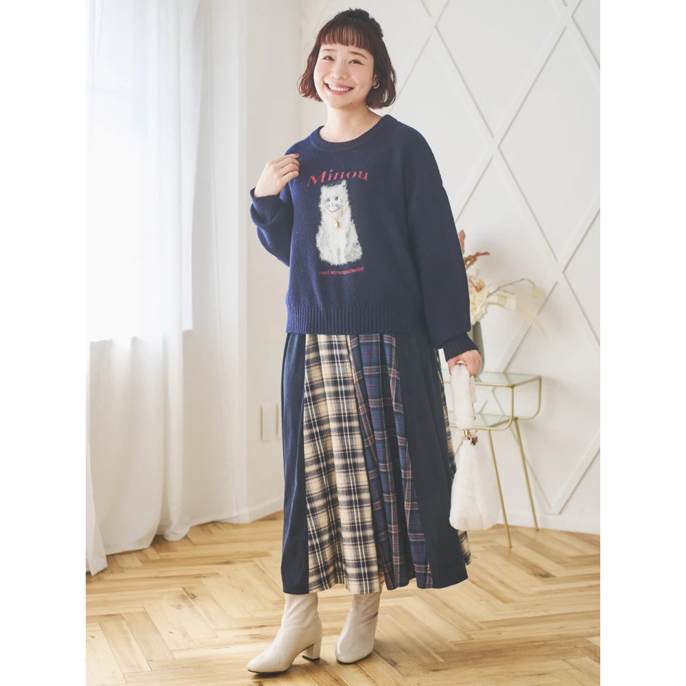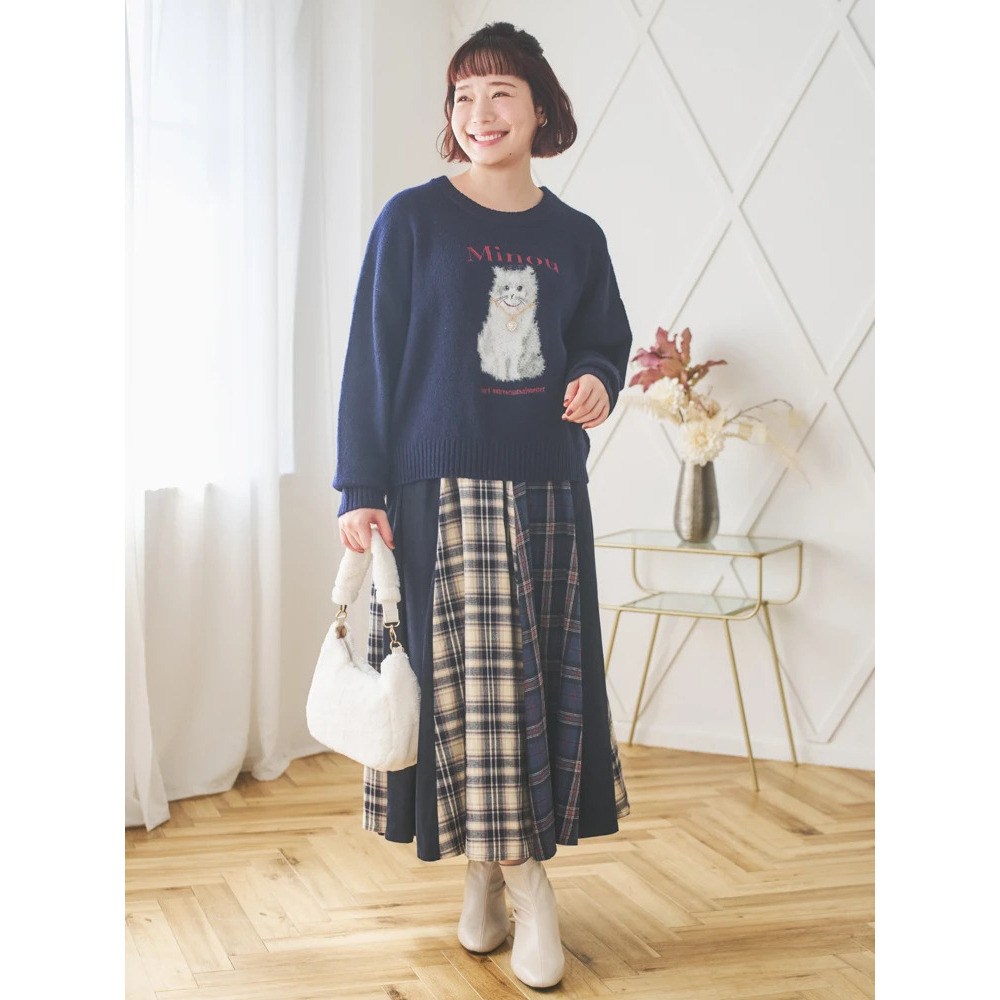 無地ニットと合わせてスカートのデザインを際立たせるコーデがオススメ!
