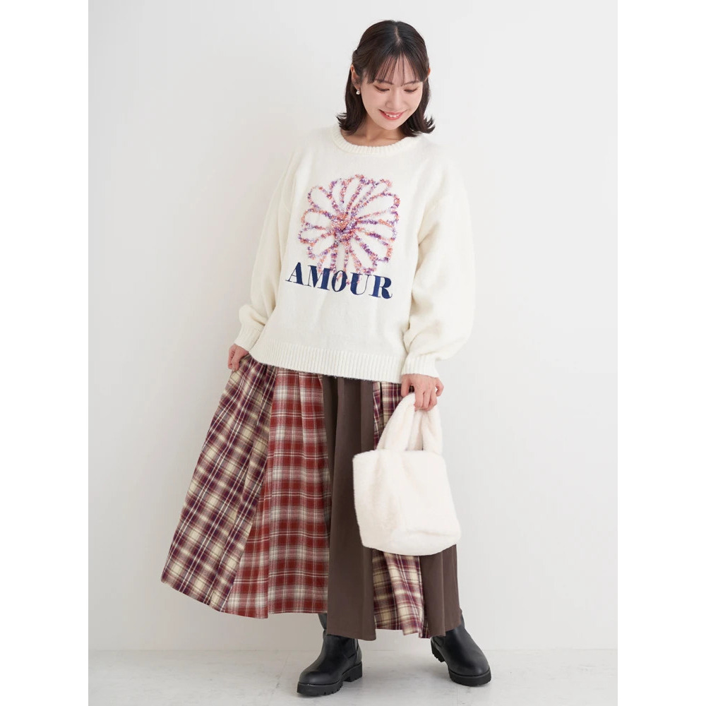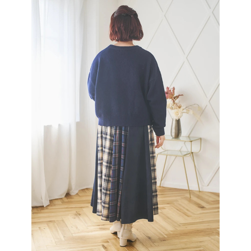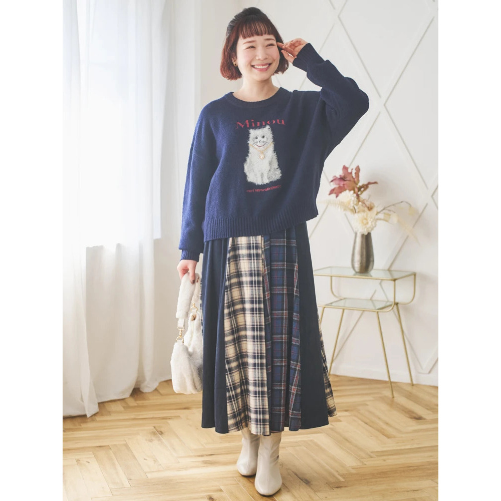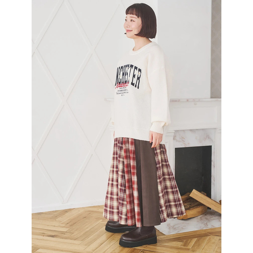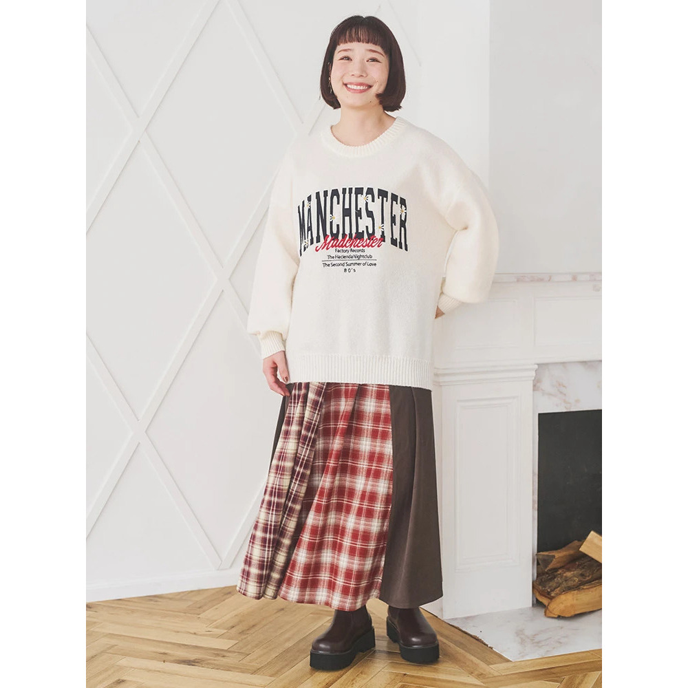 無地ニットと合わせてスカートのデザインを際立たせるコーデがオススメ!