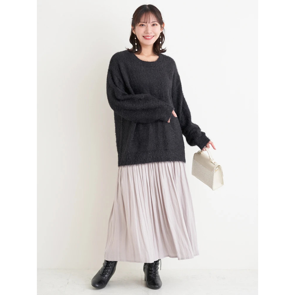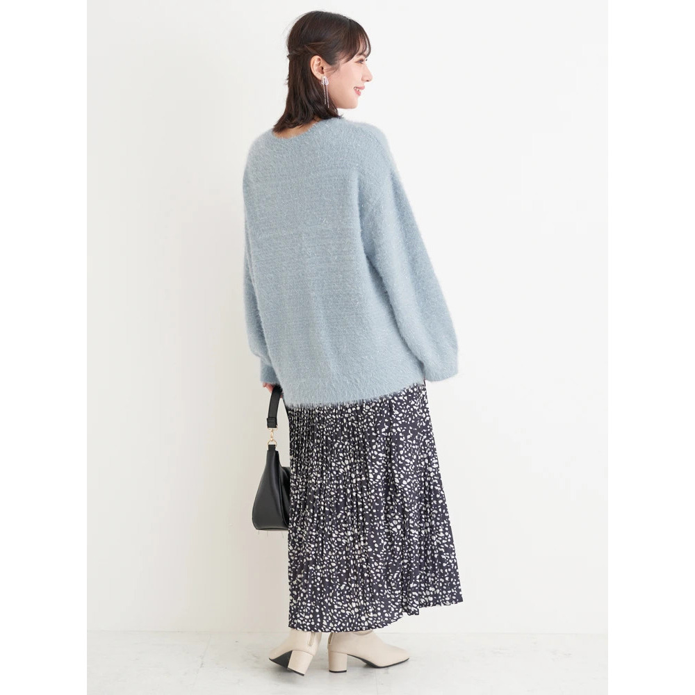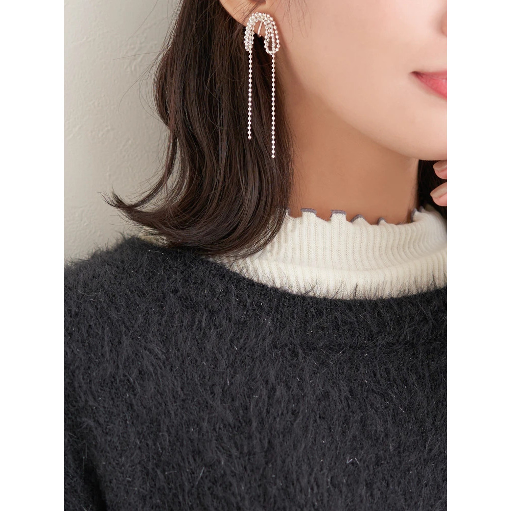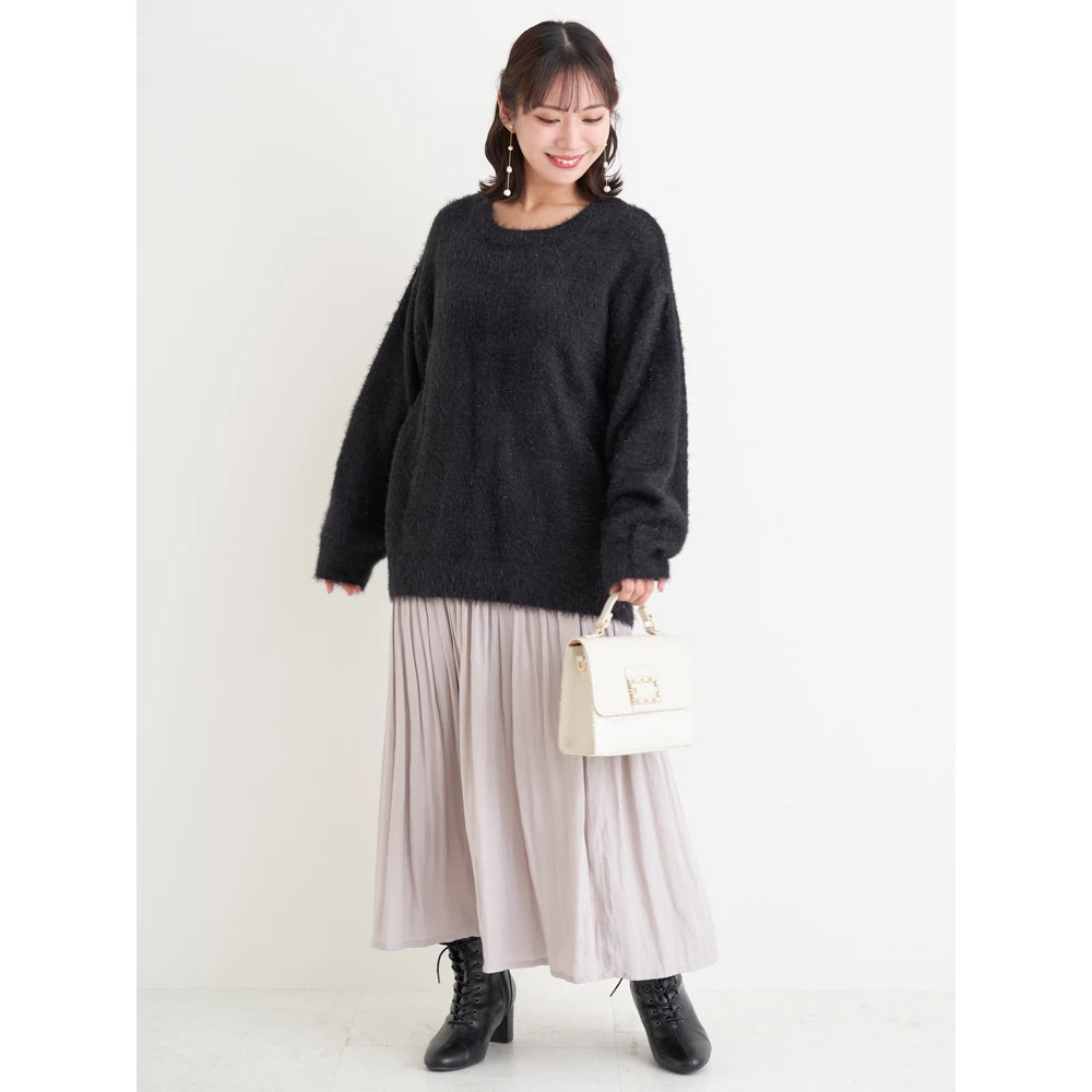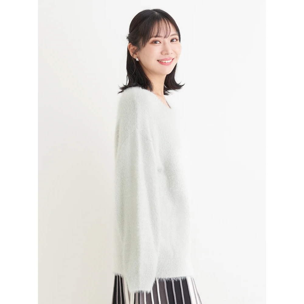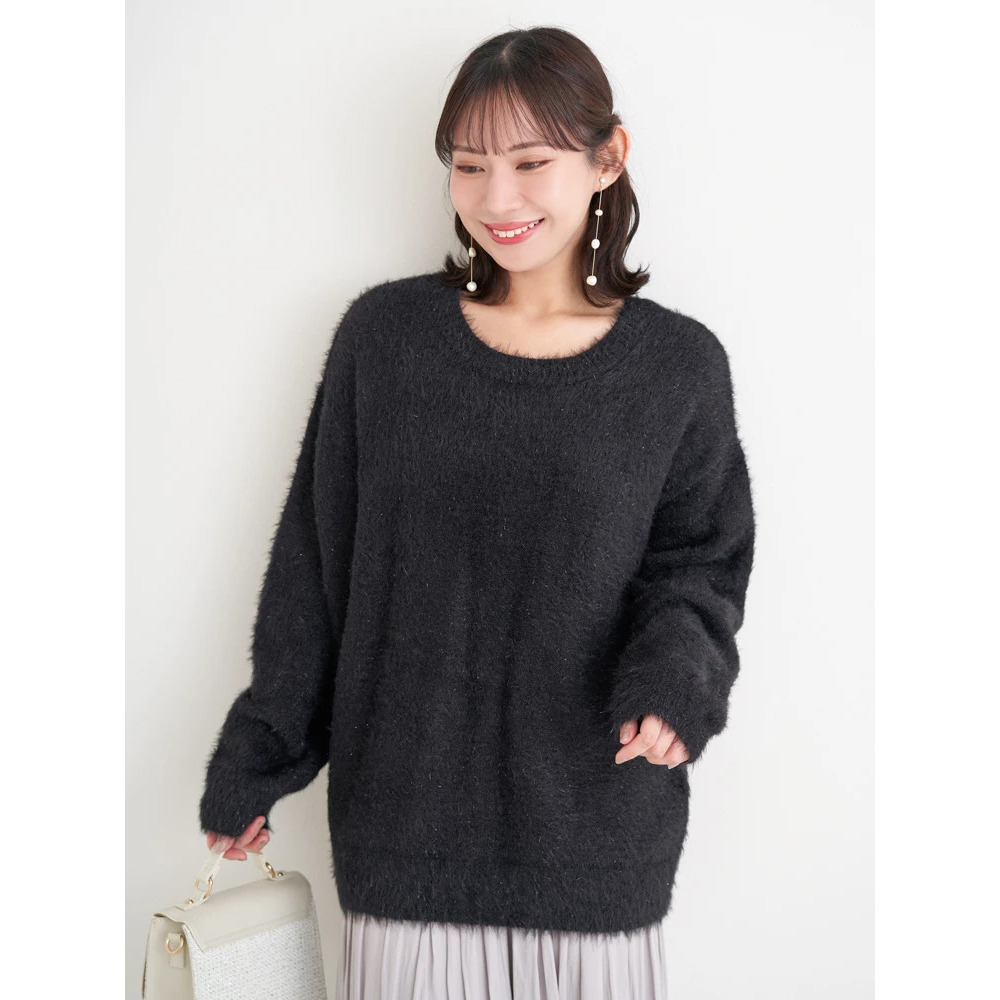 キラキラと輝くラメ糸入りのフェザーニット素材。