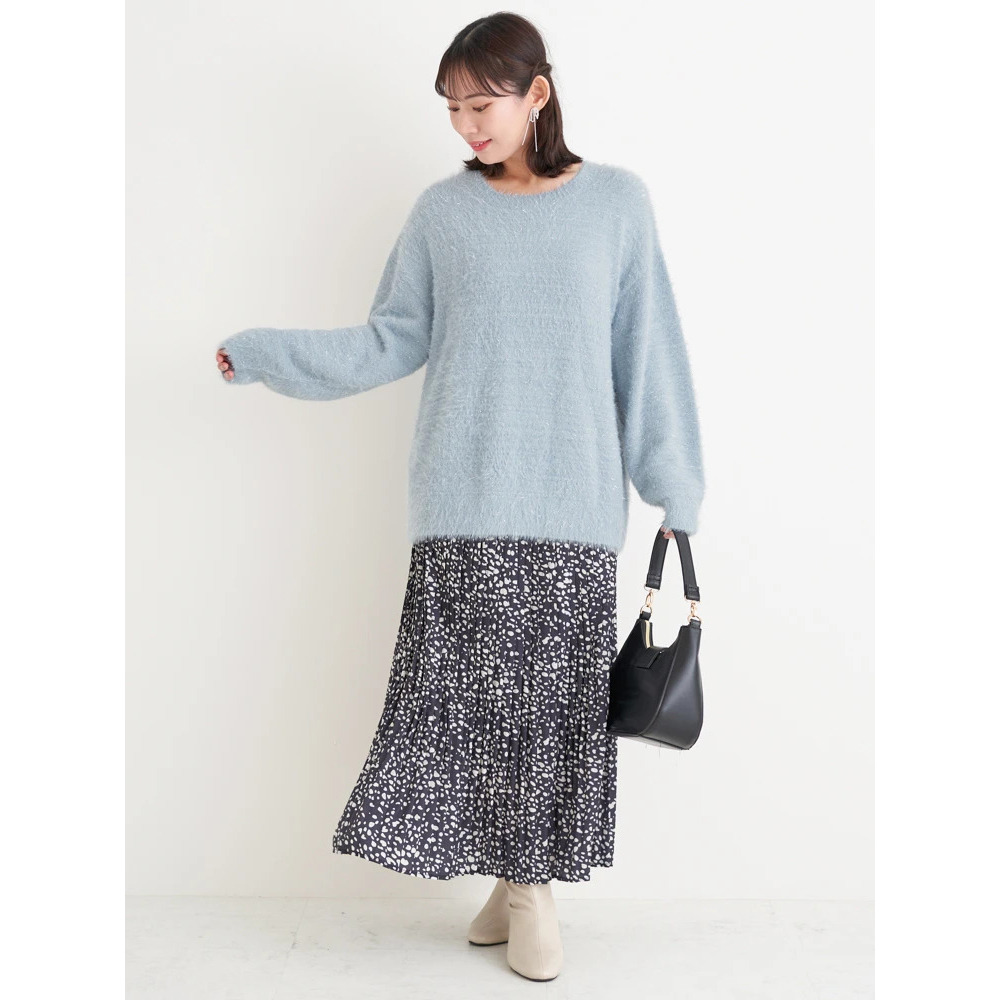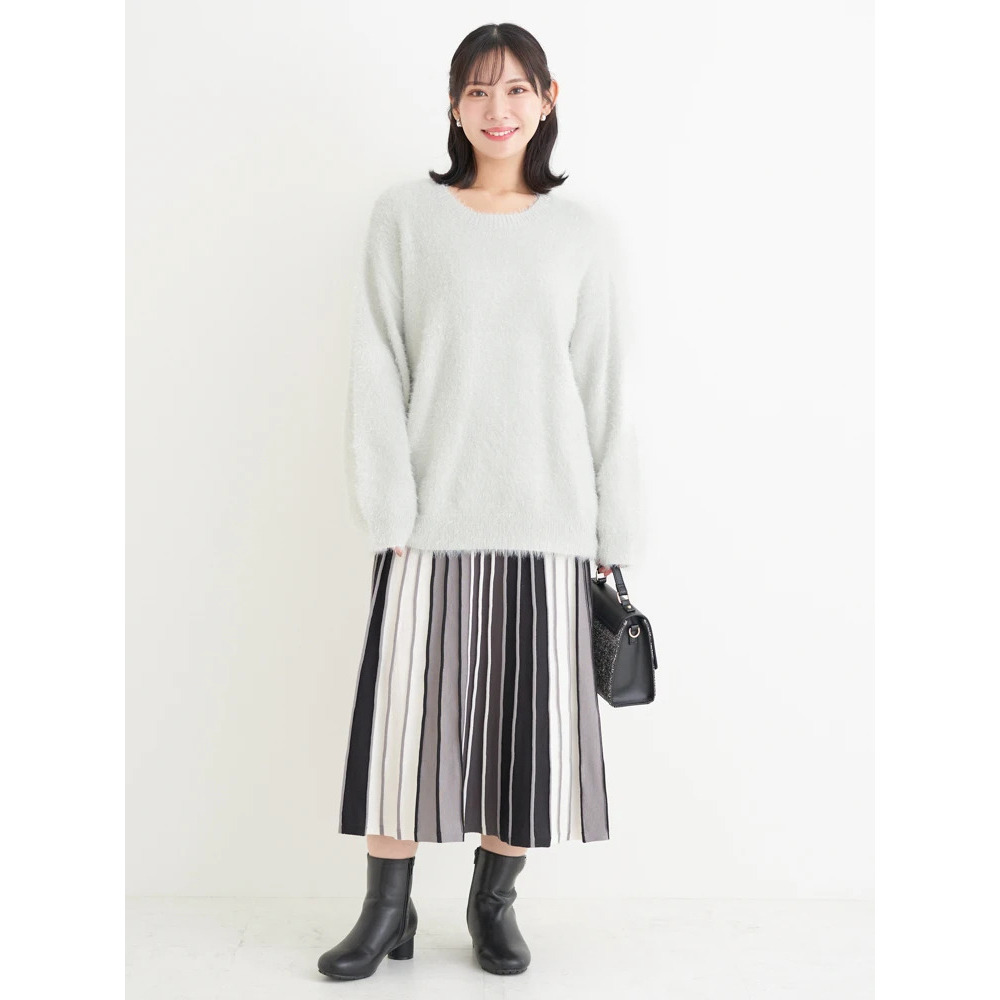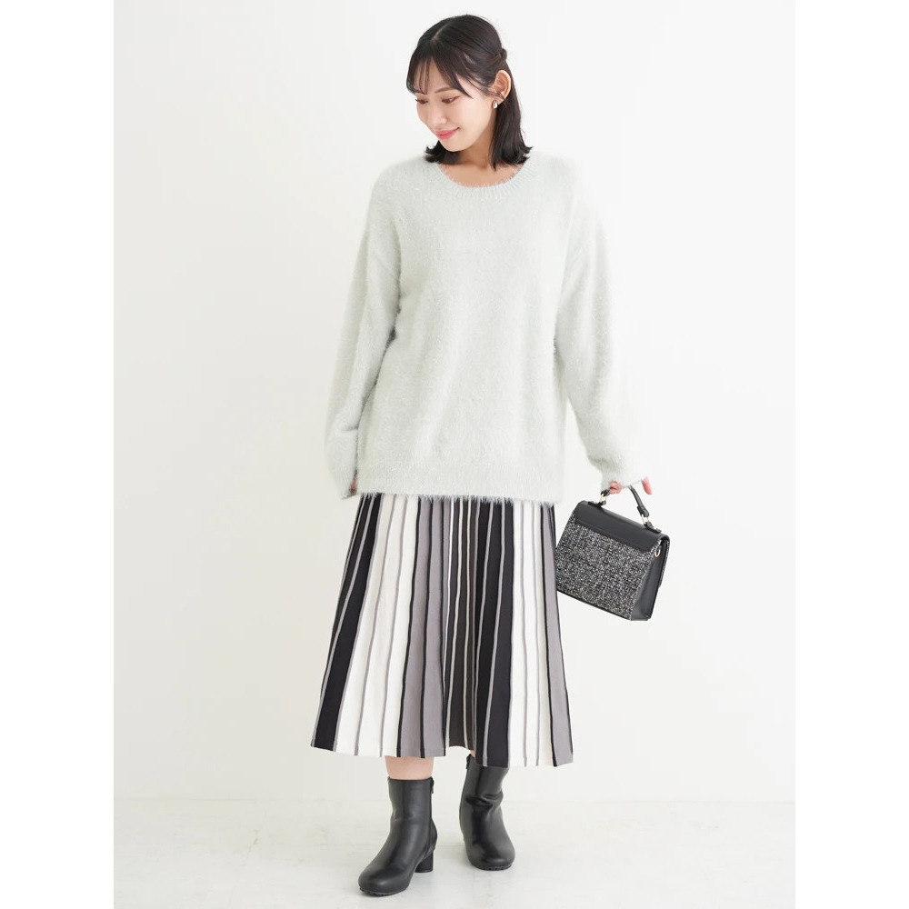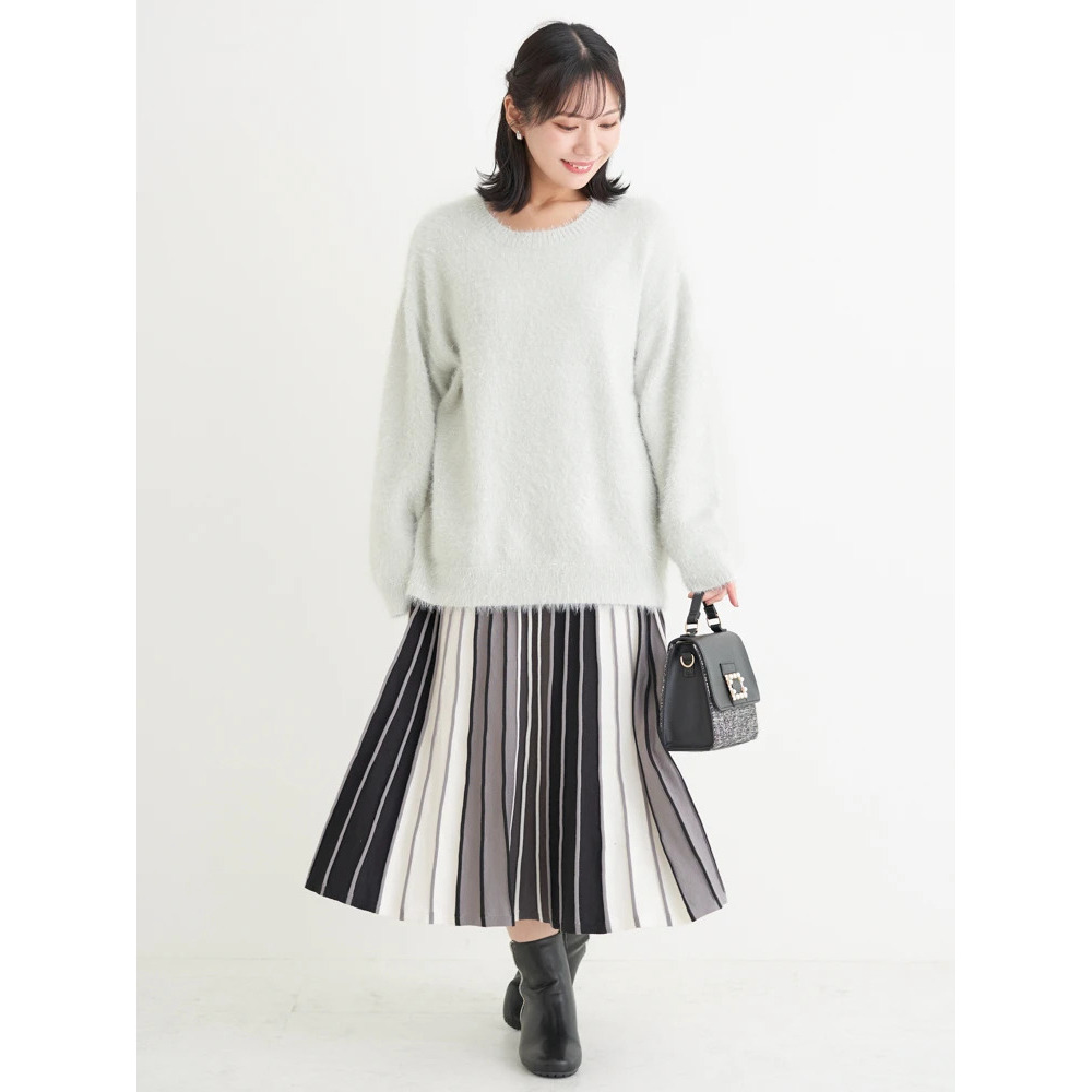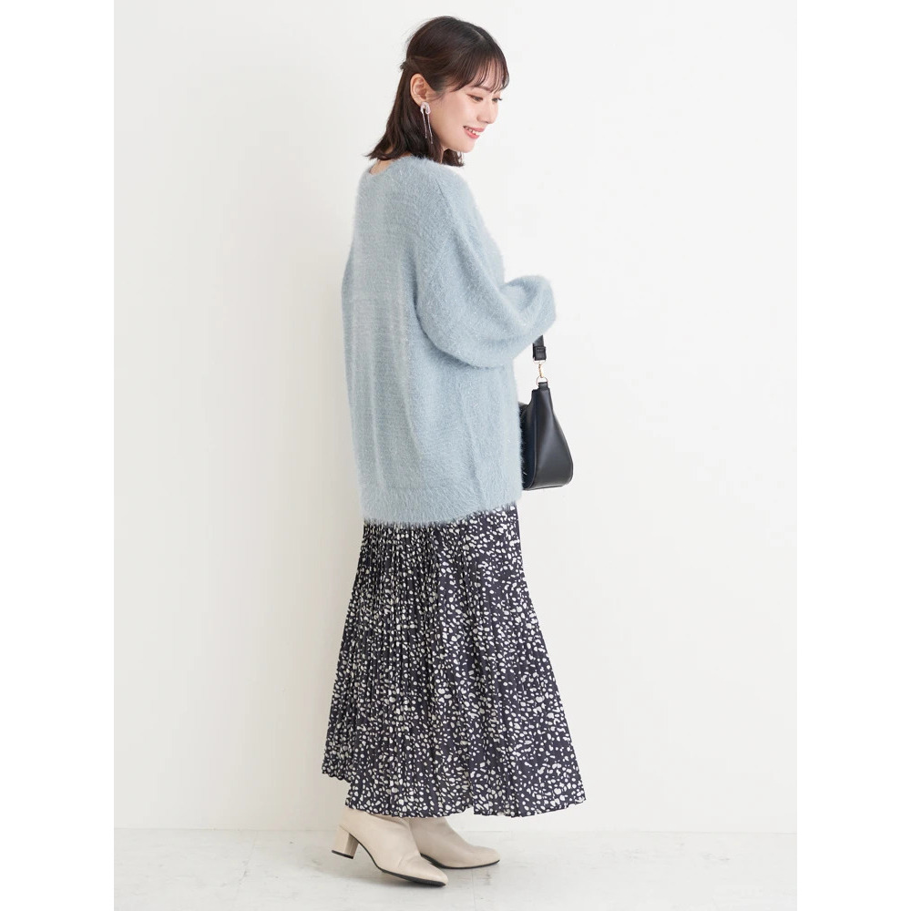 キラキラと輝くラメ糸入りのフェザーニット素材。