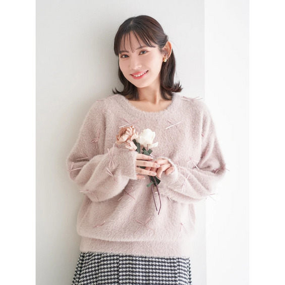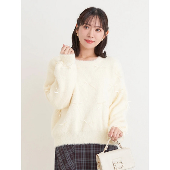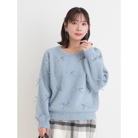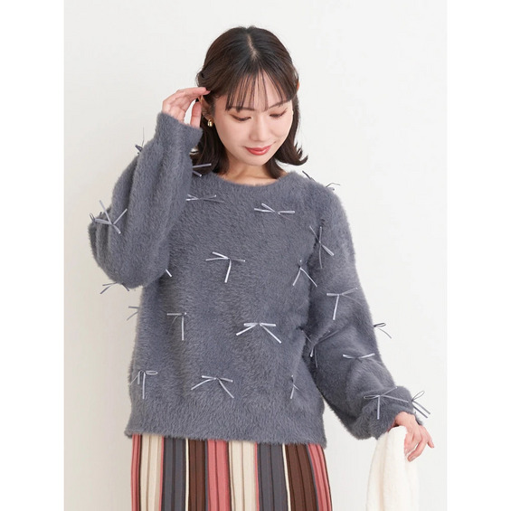 プチリボンフェザーニットプルオーバー