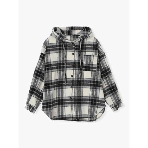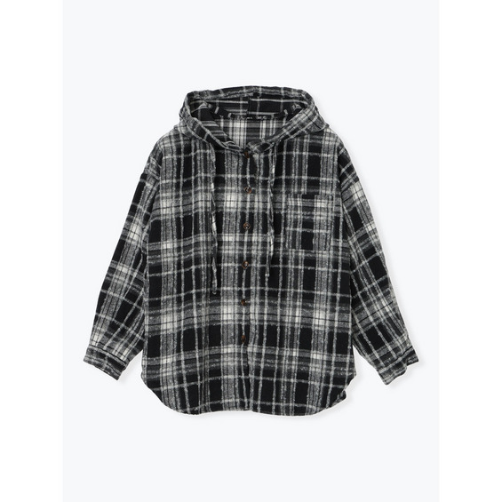 着るだけでトレンド感高まる♪フード付きチェックシャツ