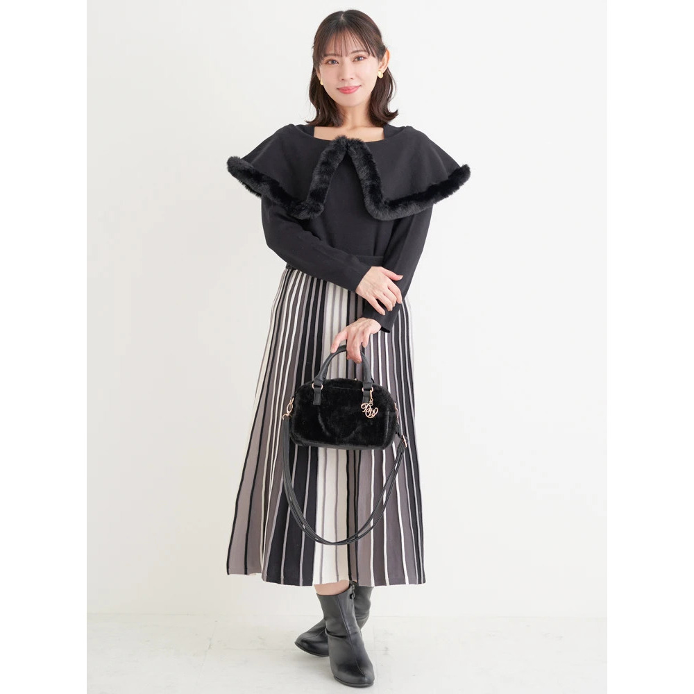 ・ワントーンでまとめたフェイクファーが上品なアクセントに◎