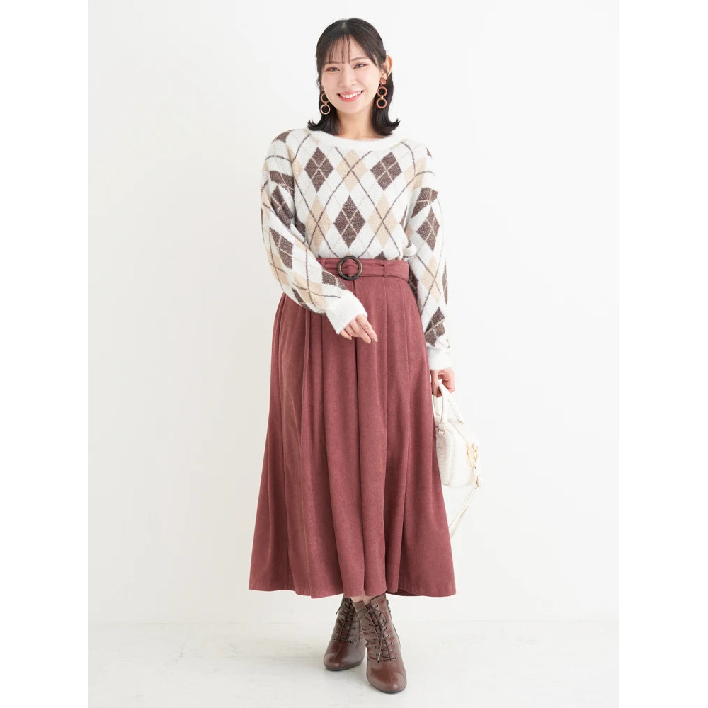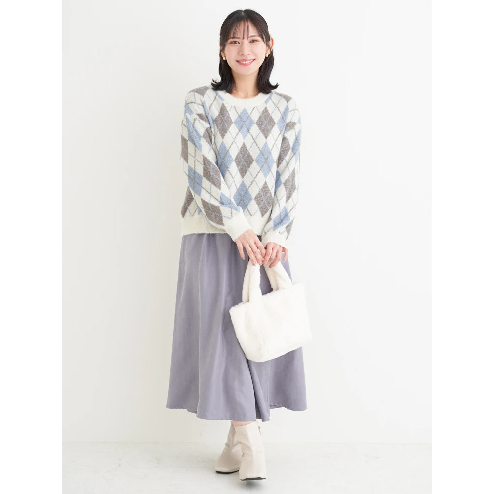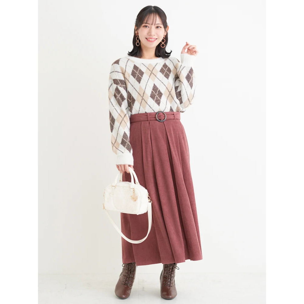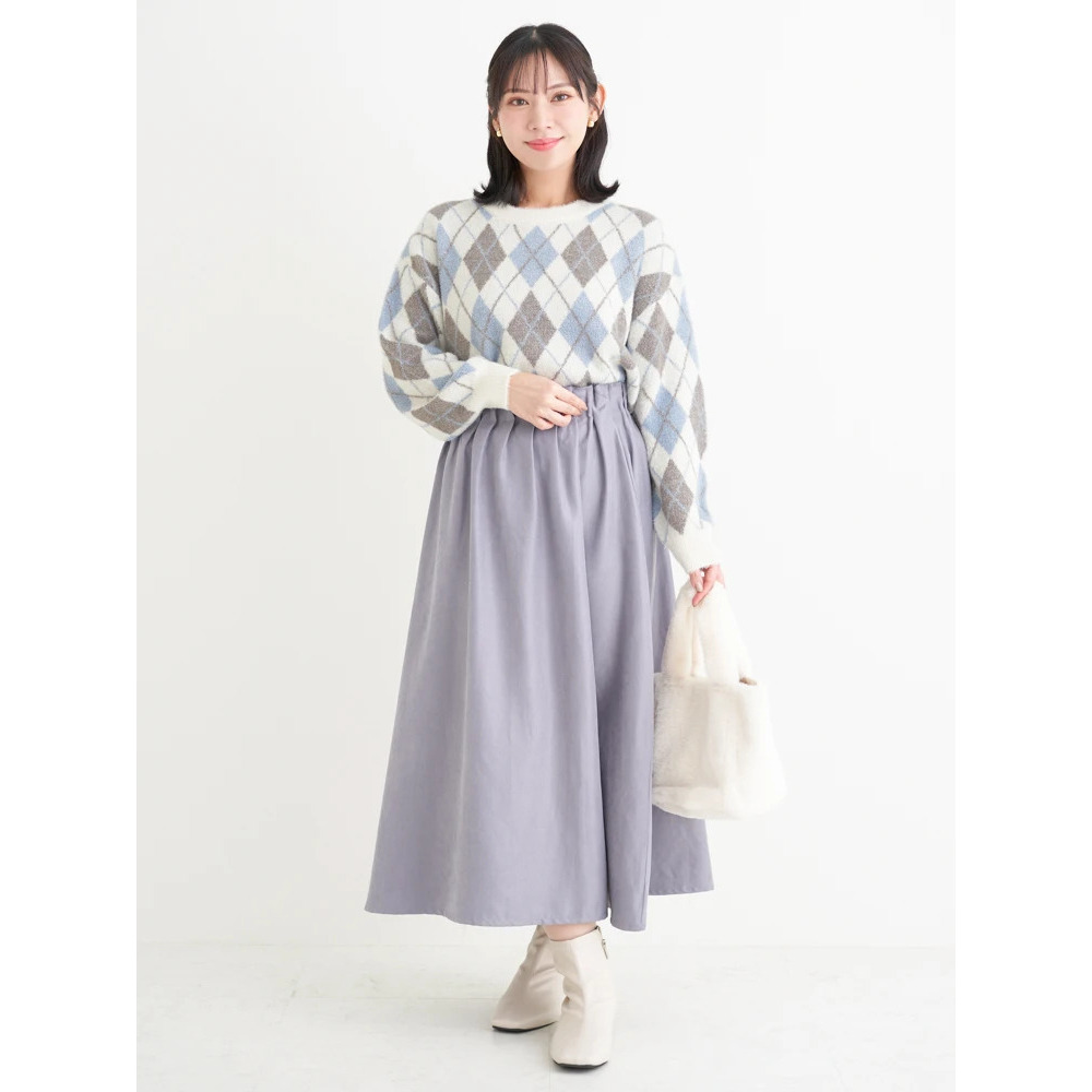 ・肌触りの良いフェザーニット素材がフェミニンムードを高めてくれる♡