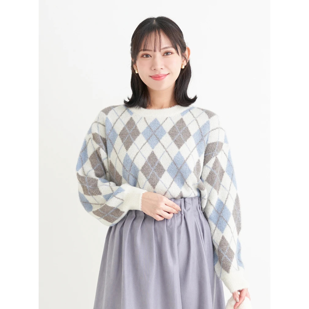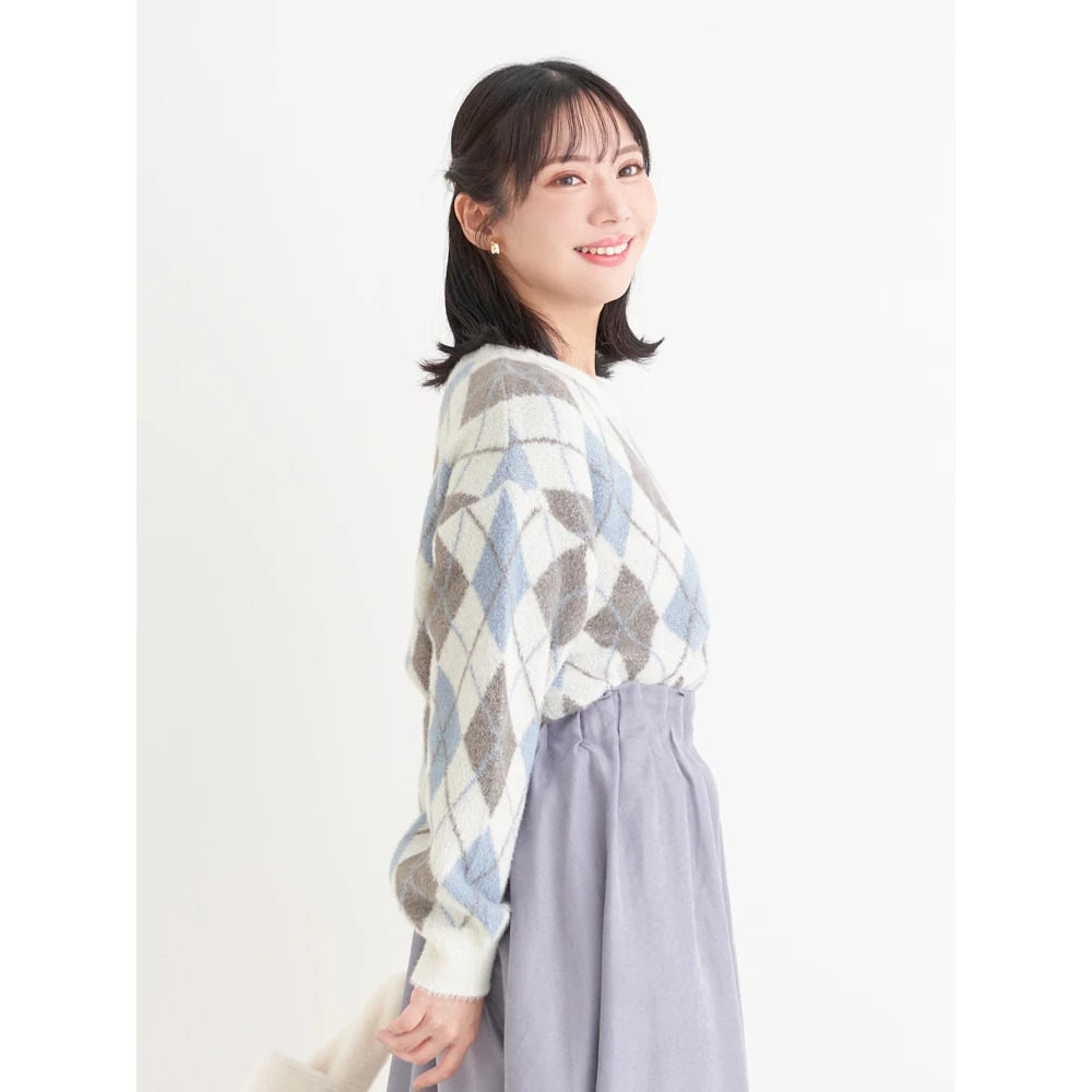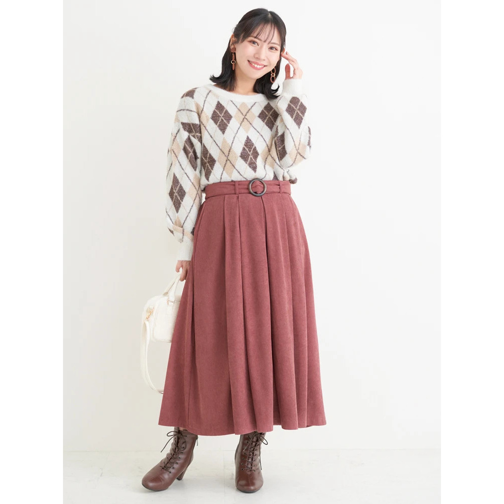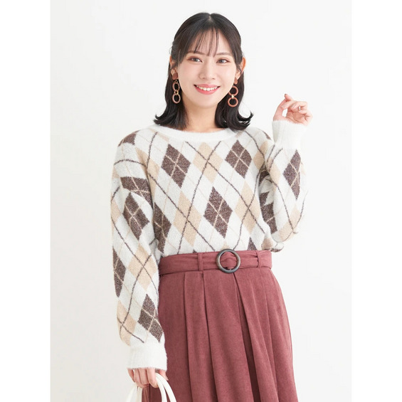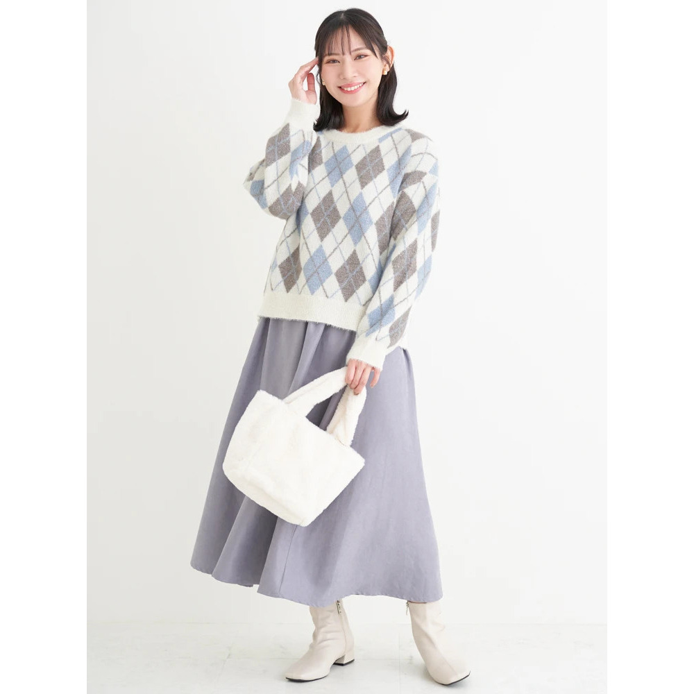 ・肌触りの良いフェザーニット素材がフェミニンムードを高めてくれる♡