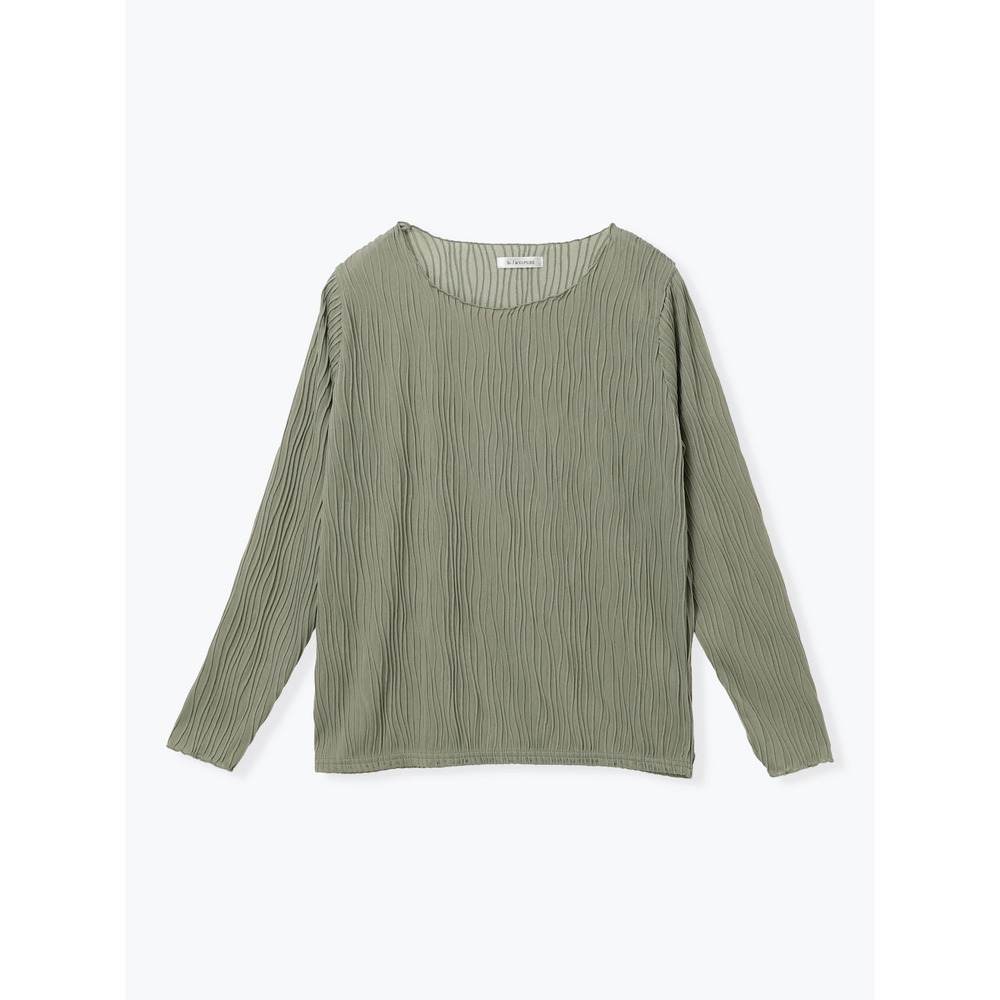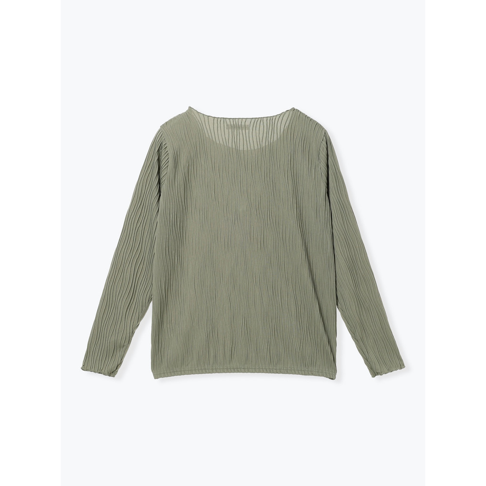 ・シンプルになりがちな無地トップスも表面感のある素材使いで1枚で着てもコーデのポイントに。