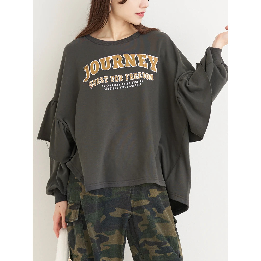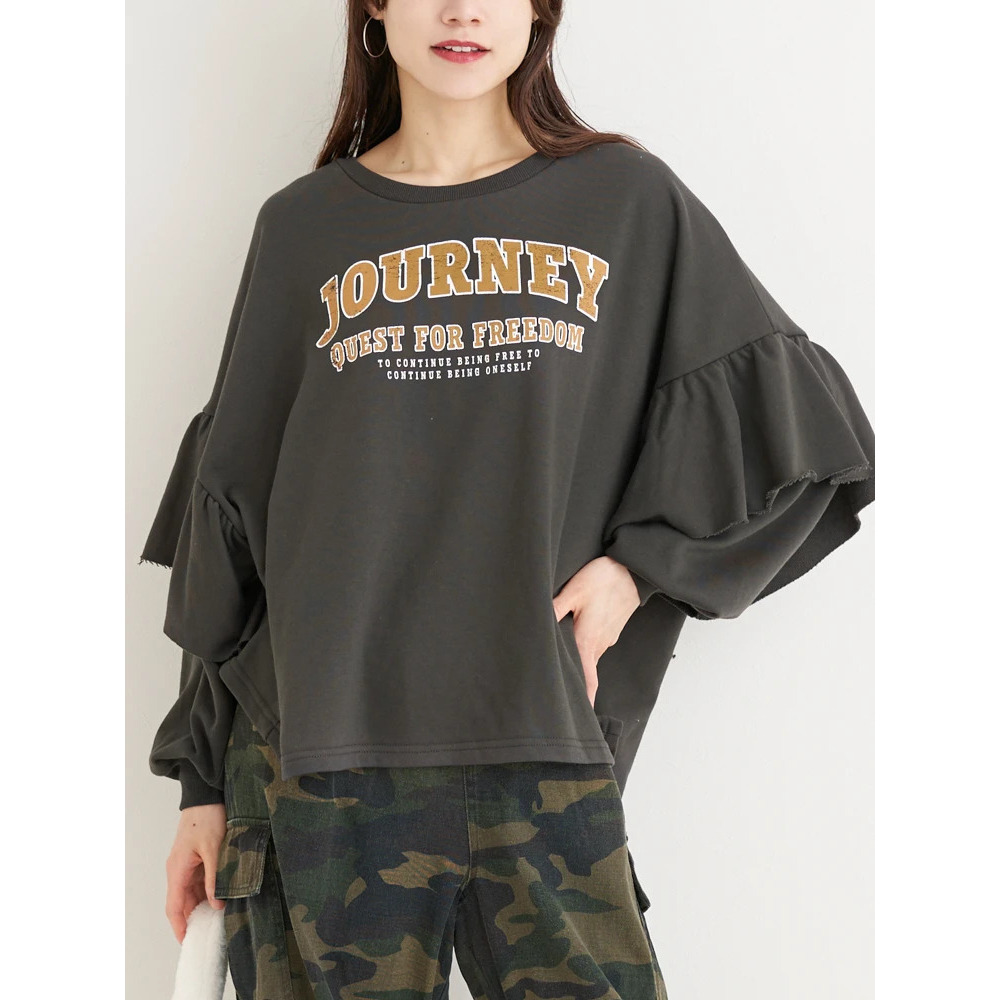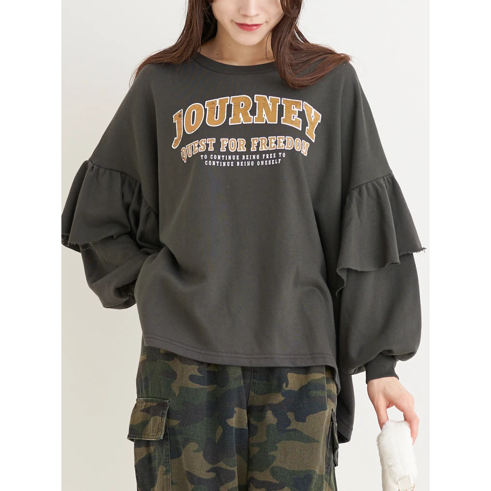 ・カジュアルになりがちなスウェットも袖フリルのデザインでガーリーに♡