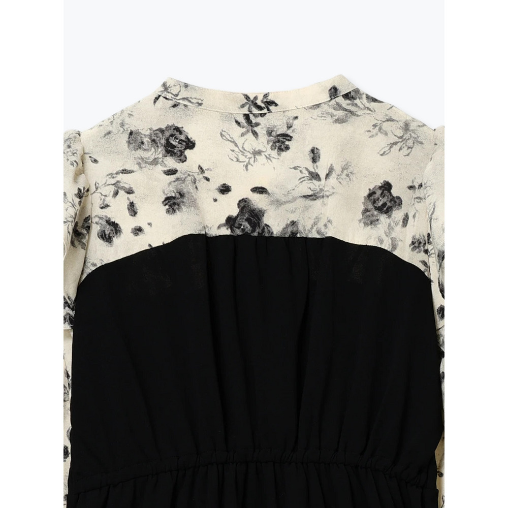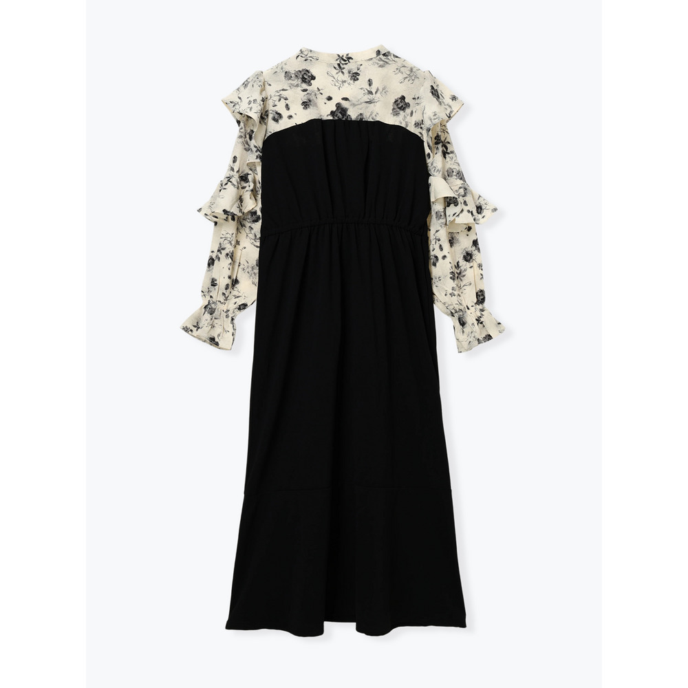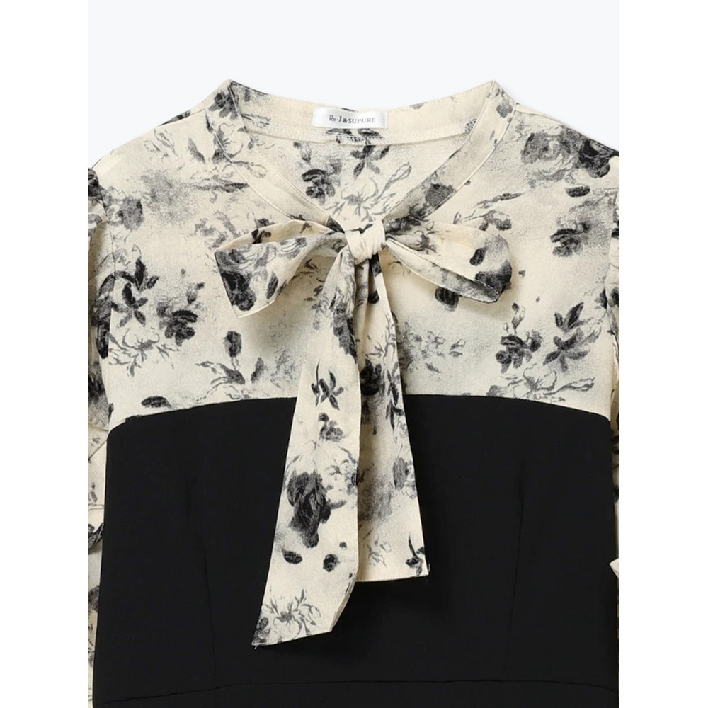 【WEB限定】花柄フリルボウタイブラウスドッキングワンピース