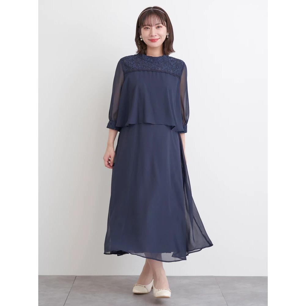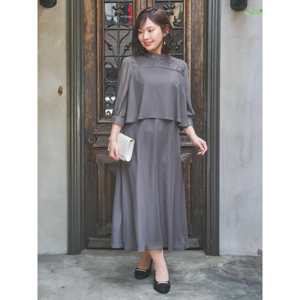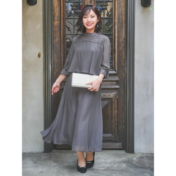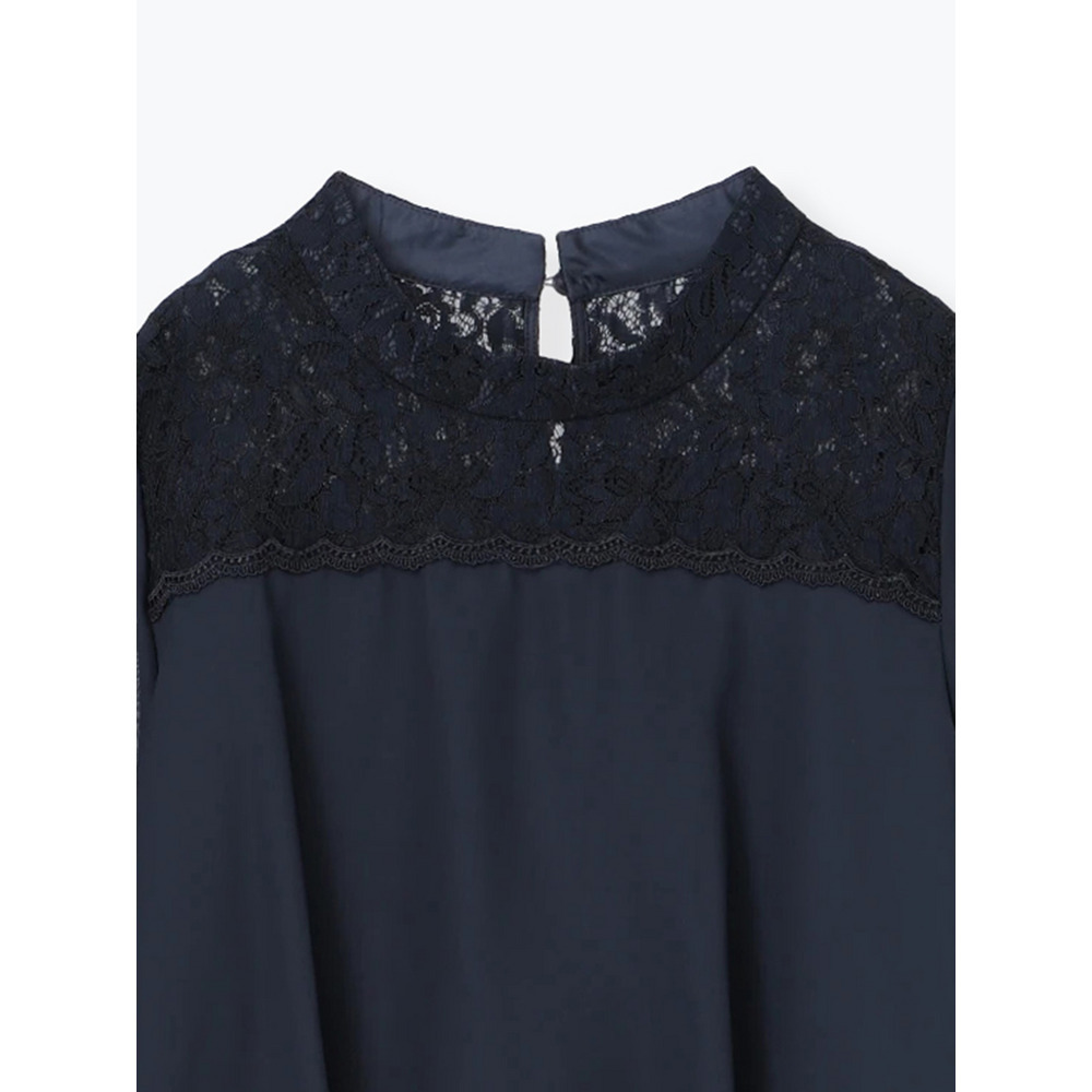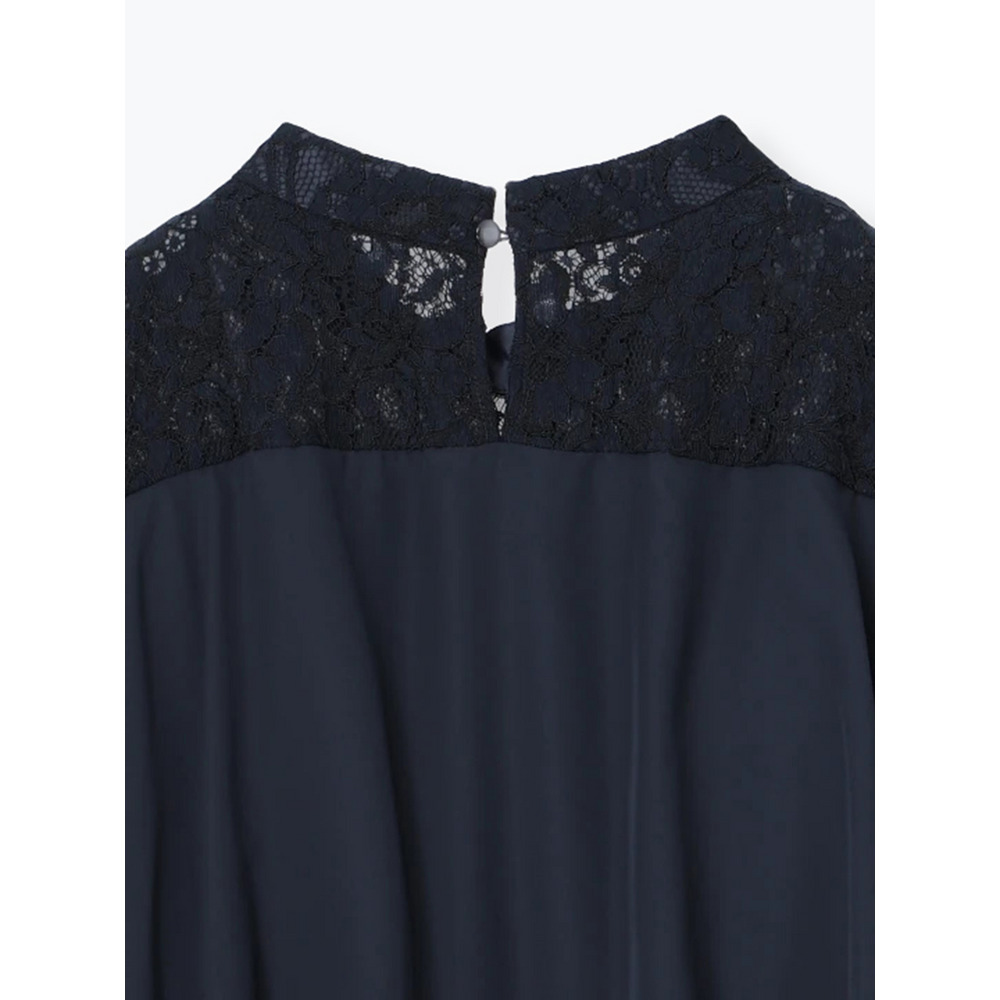 ・胸上と袖口をレースで切り替えたデザインで装いも華やかな印象に。