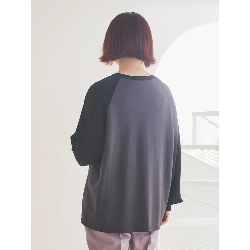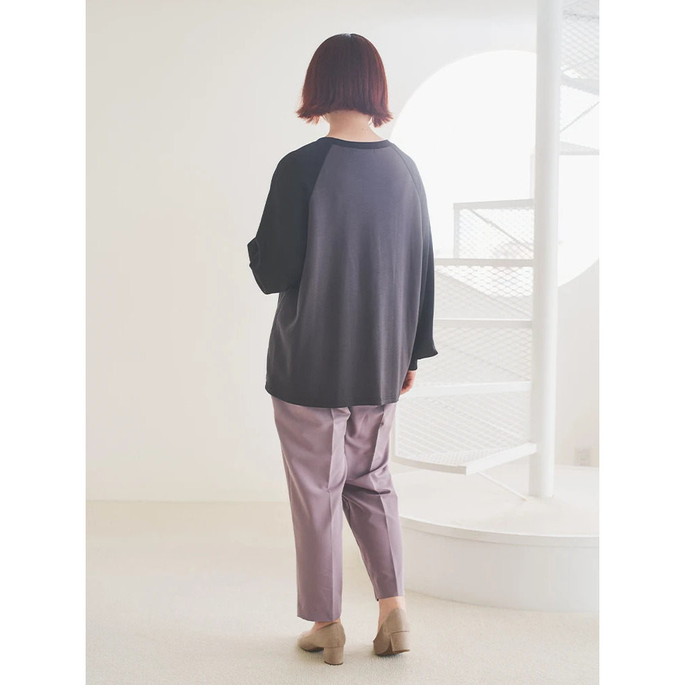 ・ラグランスリーブで動きやすく、リラックスして着られる。