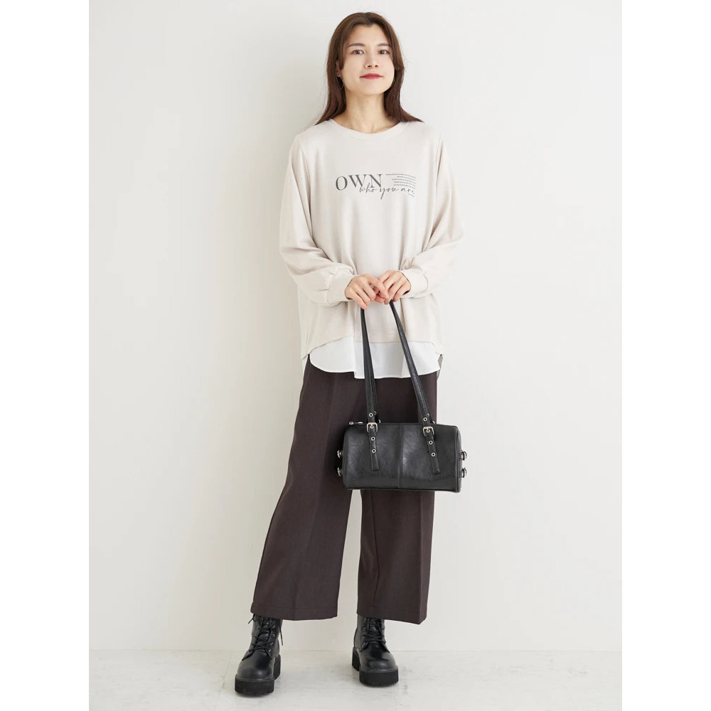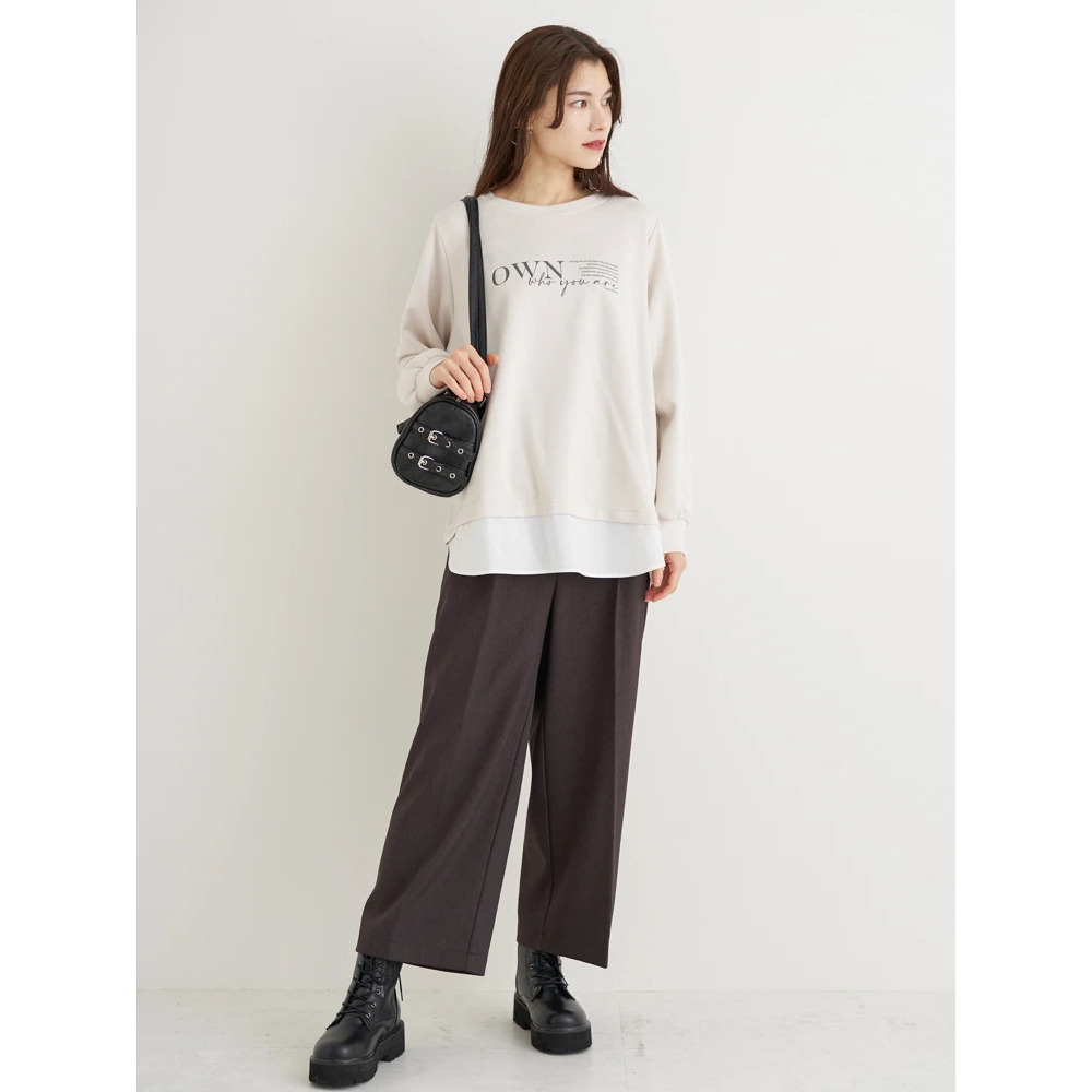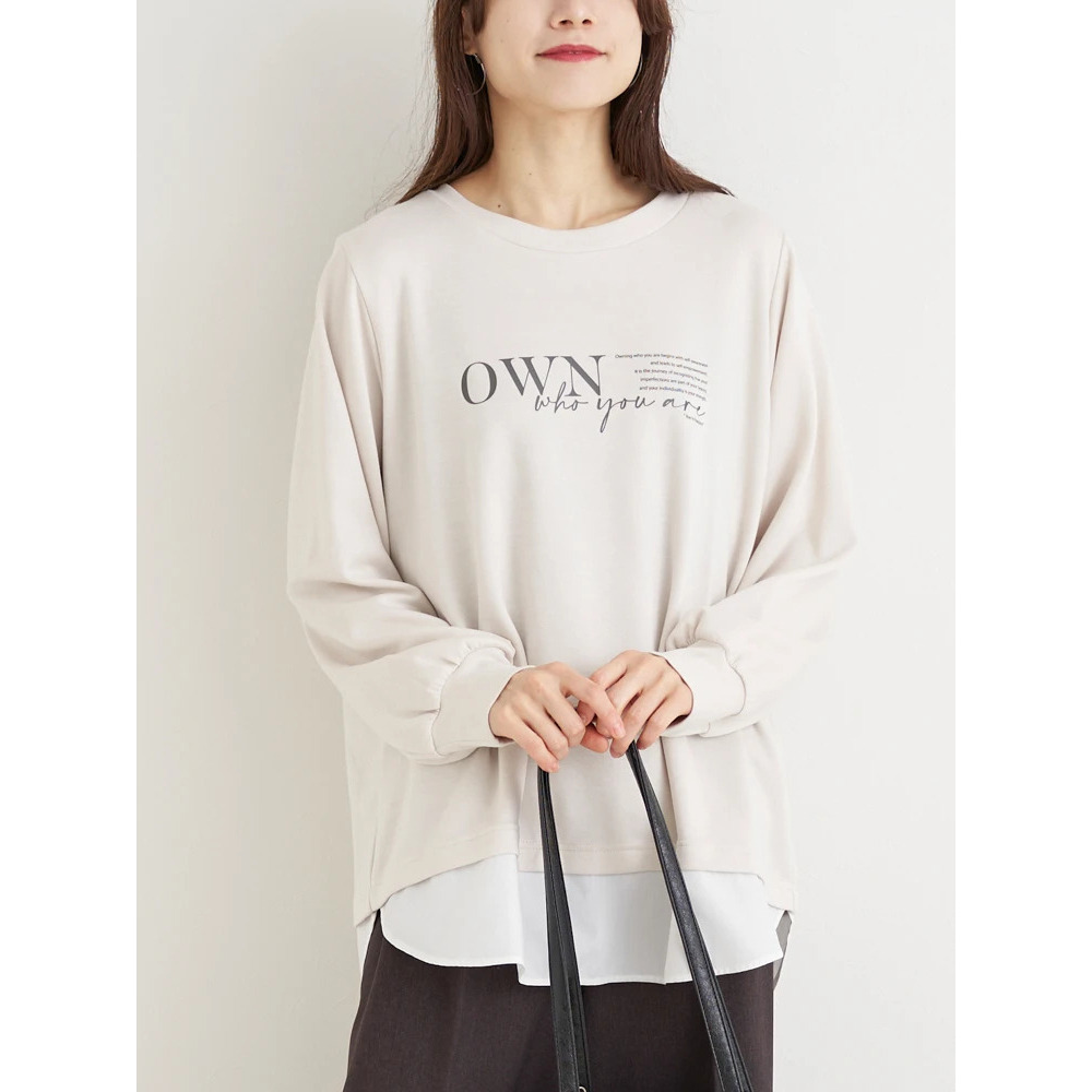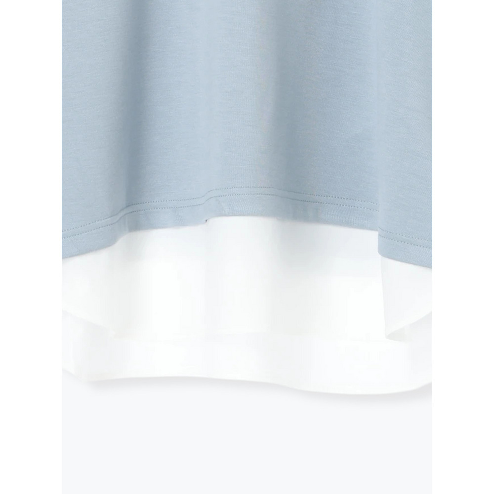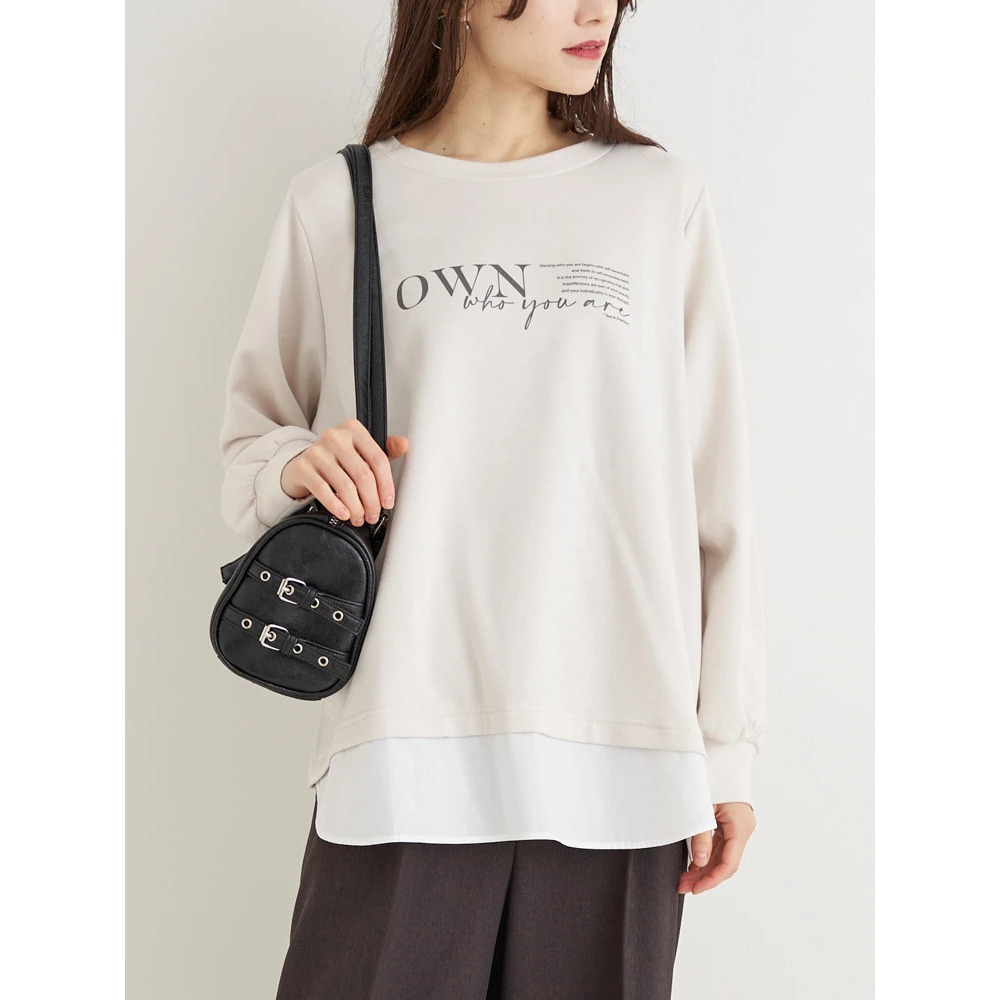 ・白シャツを下に着ているようなドッキングデザインで、重ね着不要の時短アイテム。