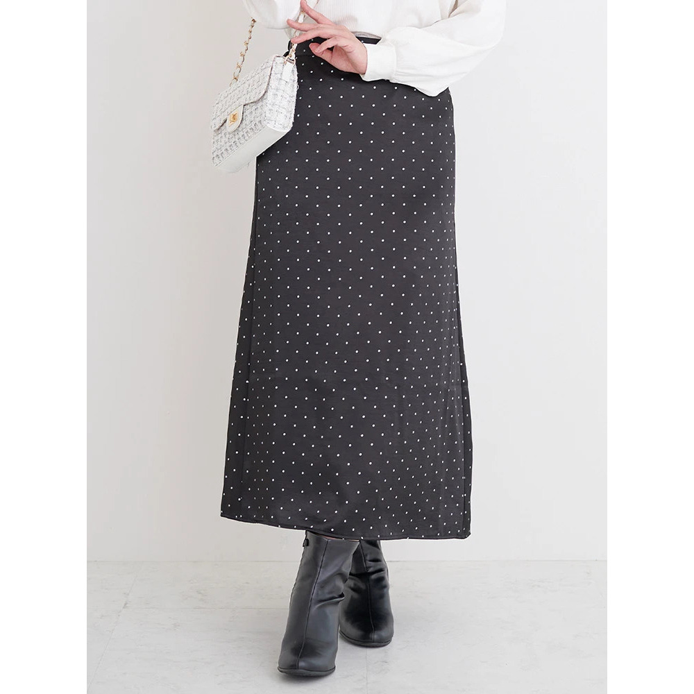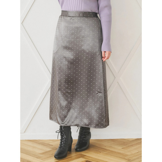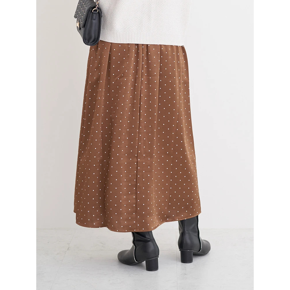 ほどよい光沢ととろみのあるドット柄サテン素材×伸縮性のあるさらりとした肌触りの裏地