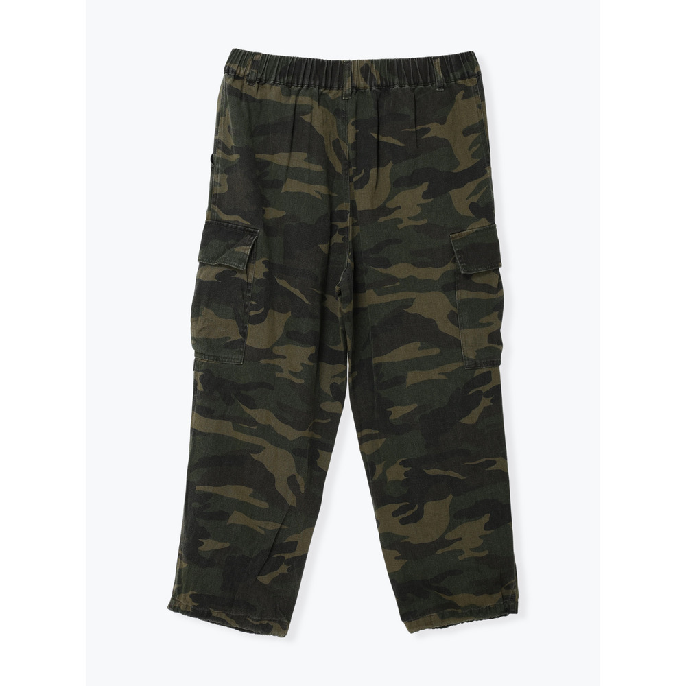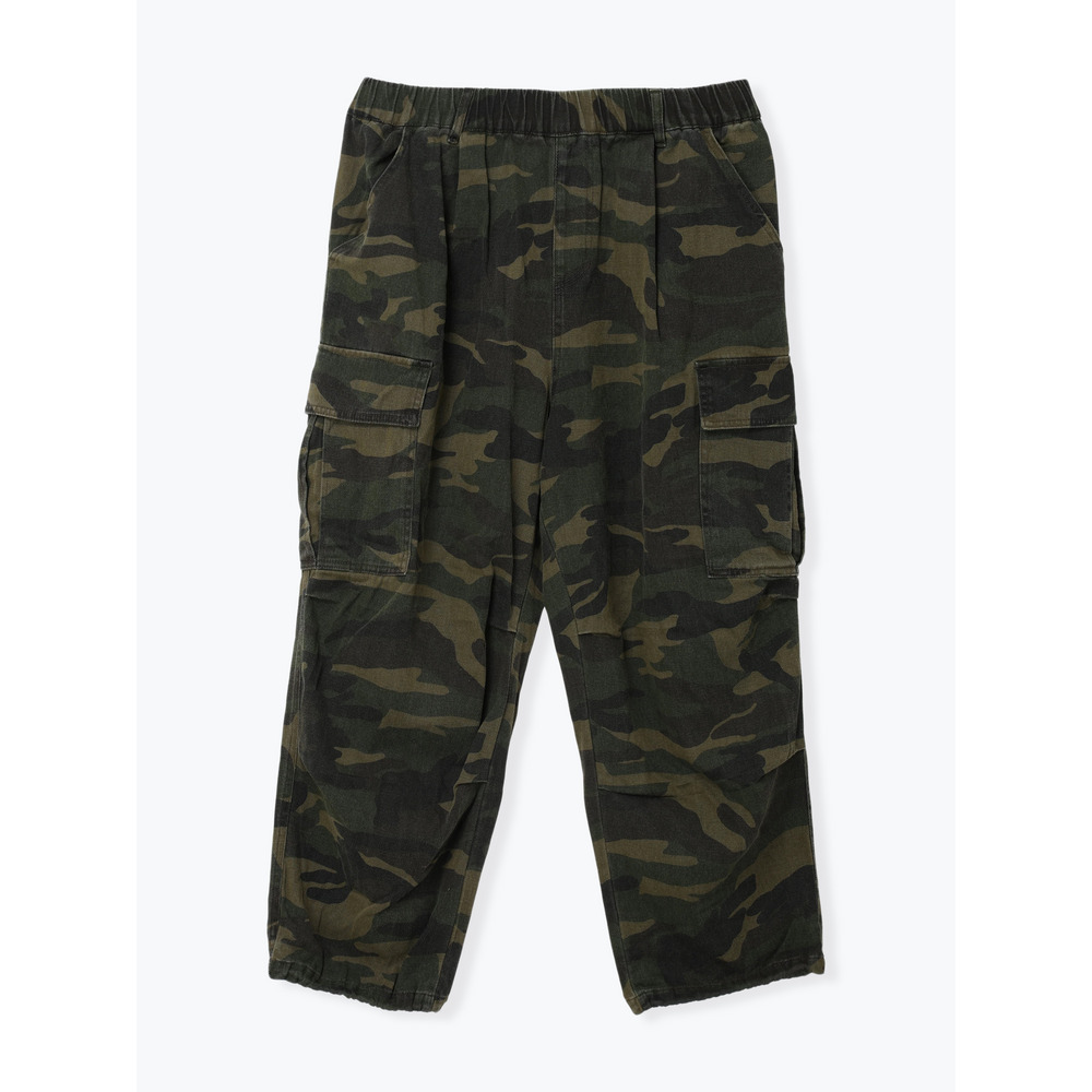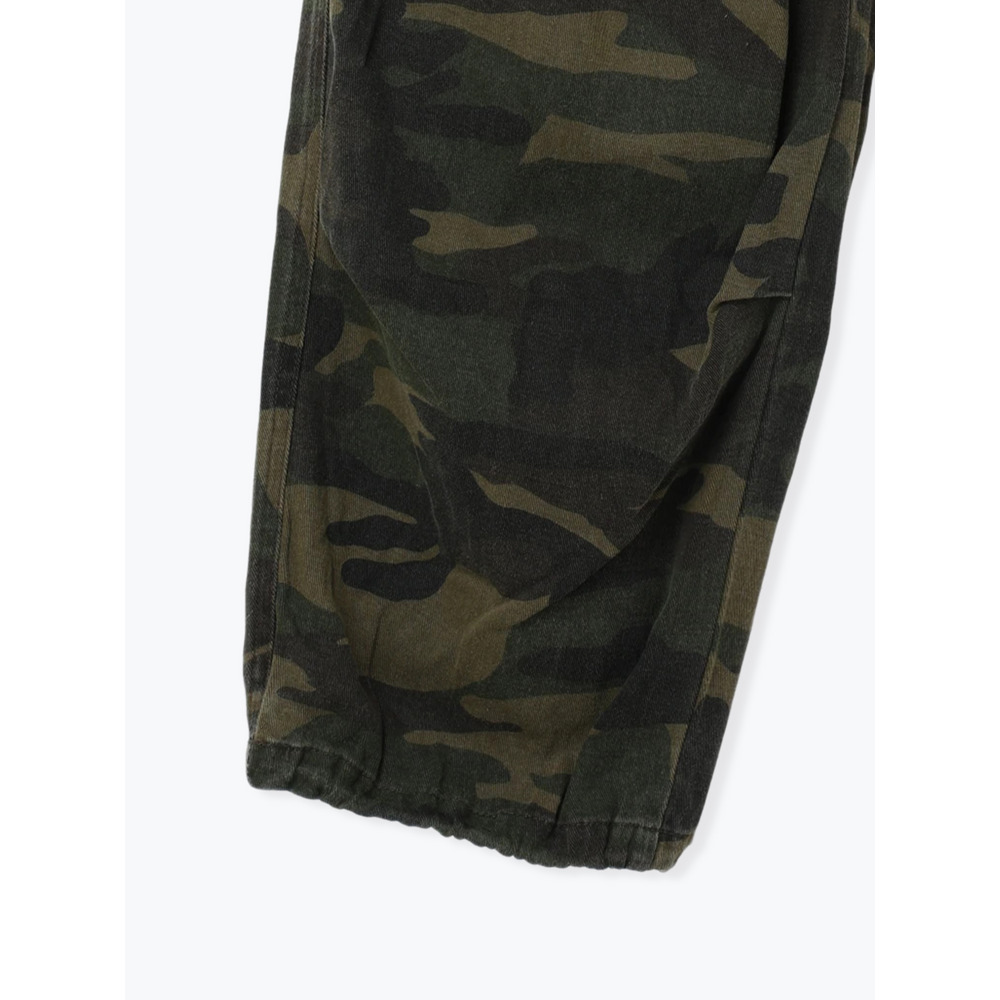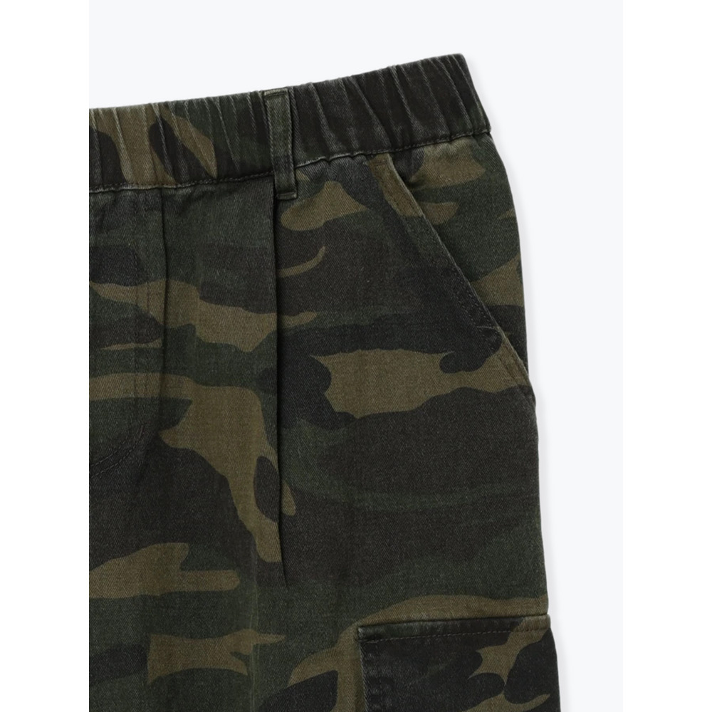 やわらかく程よい厚みのデニム素材と迷彩柄プリント素材
