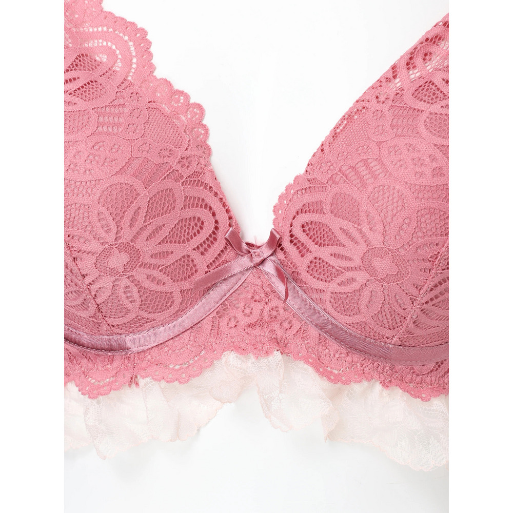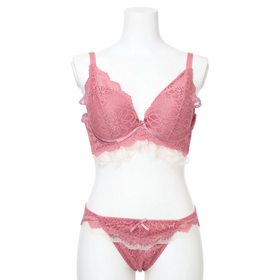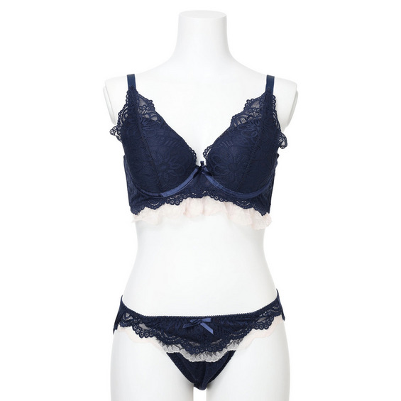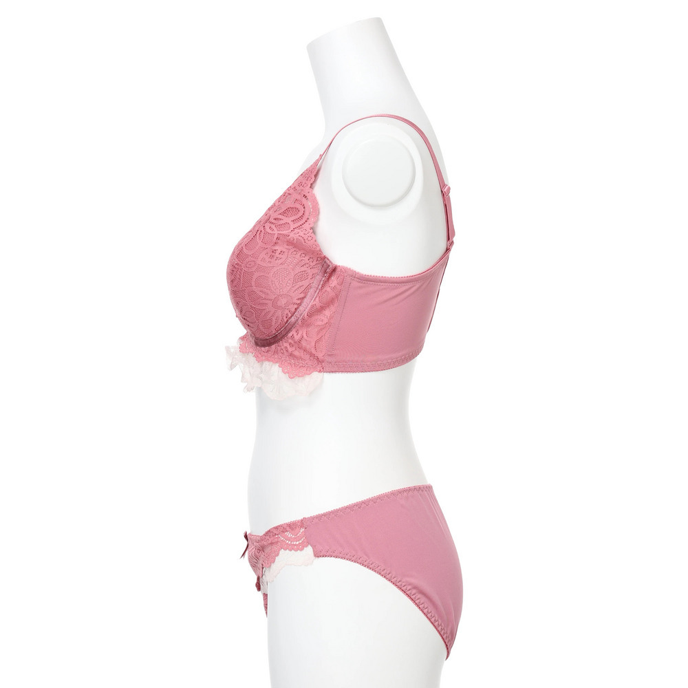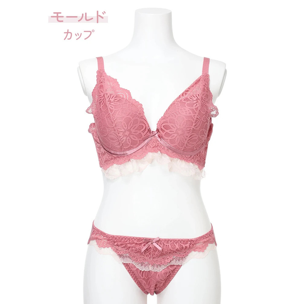 【脇高】[D85-I95]フルカップ風レースブラ&ショーツ(モールドカップ)