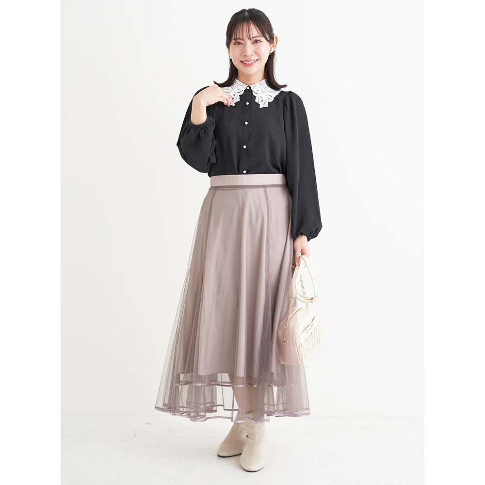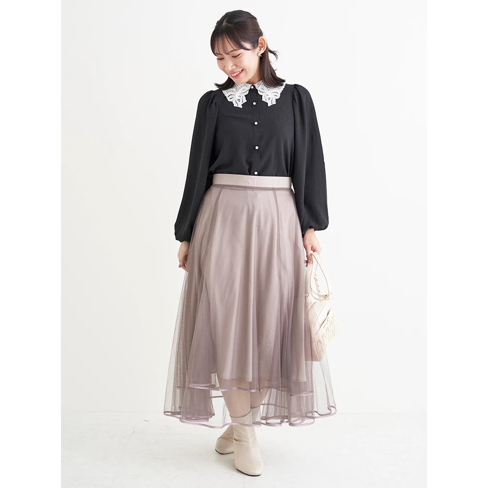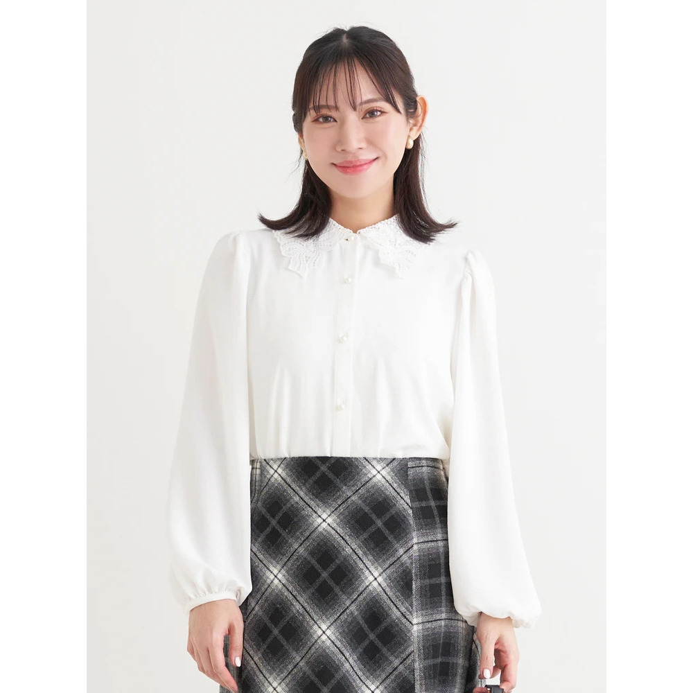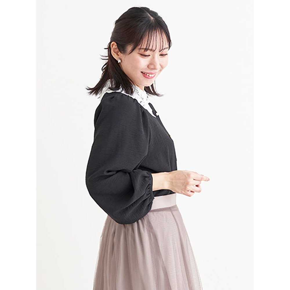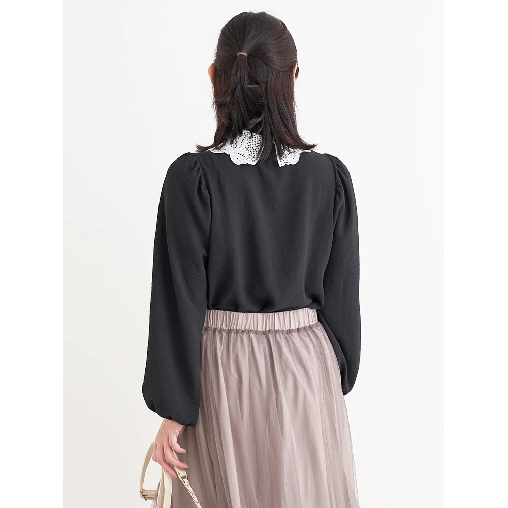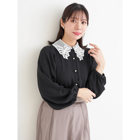 繊細なレース襟が華やかでクラシカルな印象のブラウス