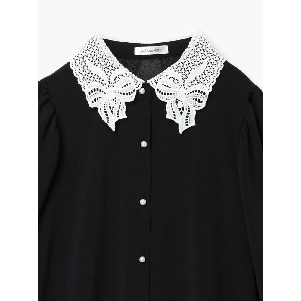 ・顔回りを華やかに魅せるレース襟はリボンモチーフが施されたフェミニンなデザイン♡