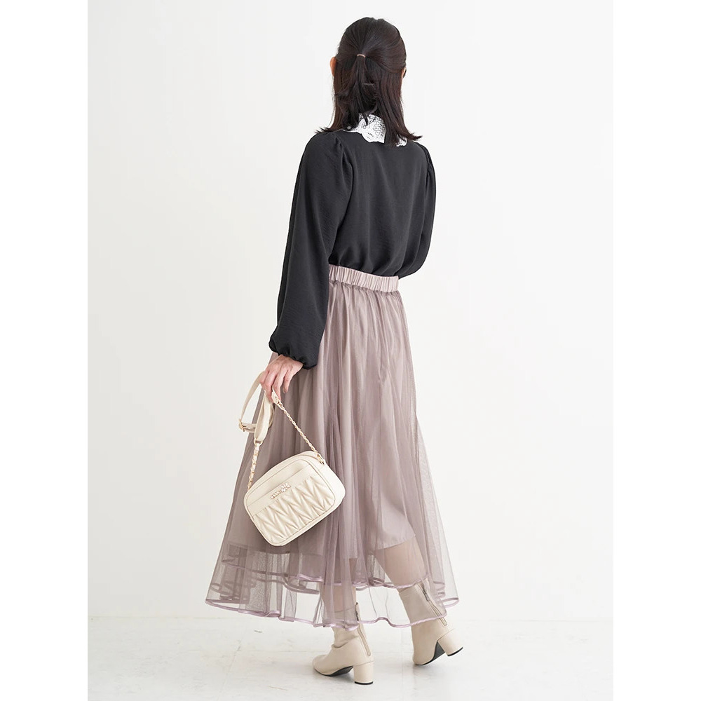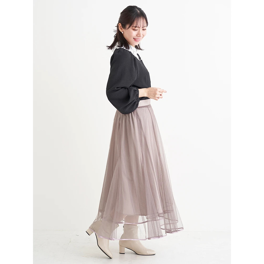 お手持ちのスカートを合わせるだけでフェミニンムードたっぷりの華やぎコーデが即完成!