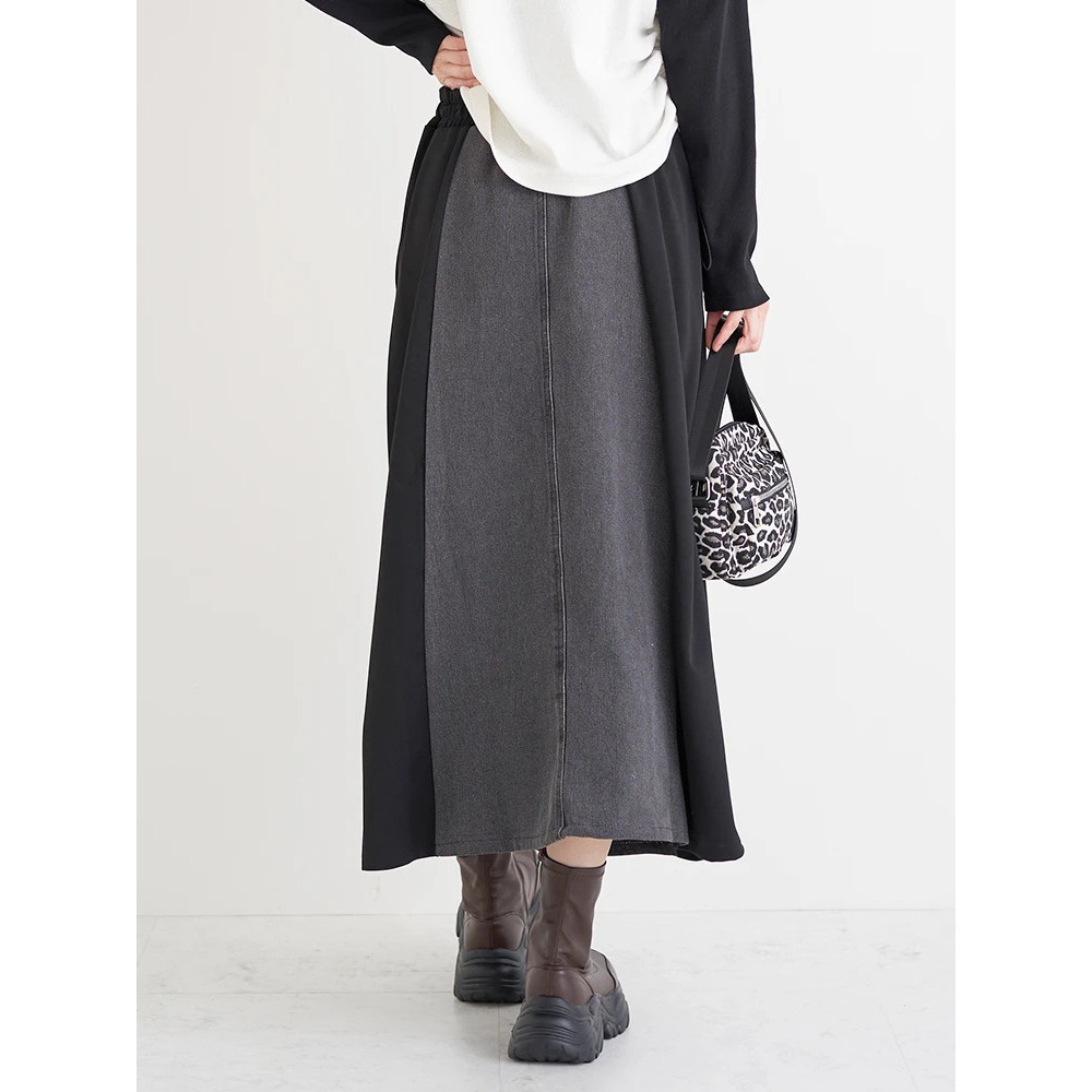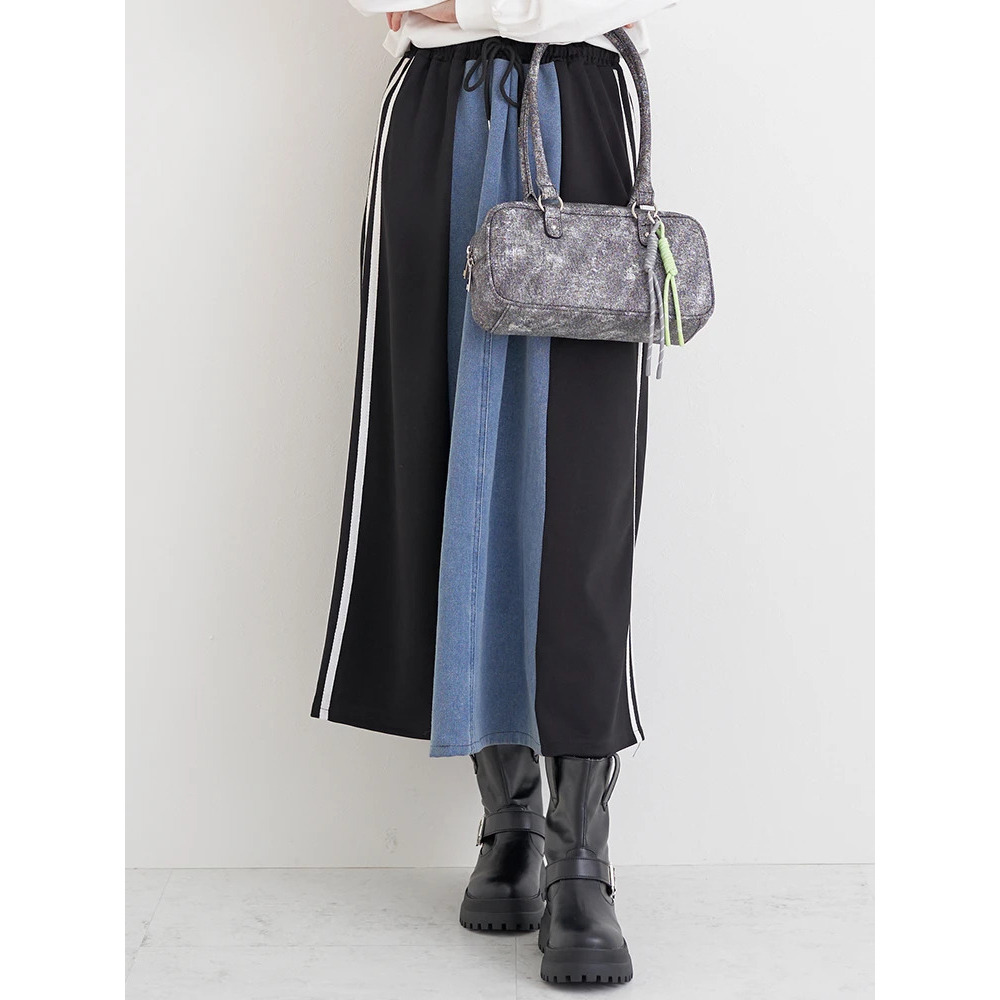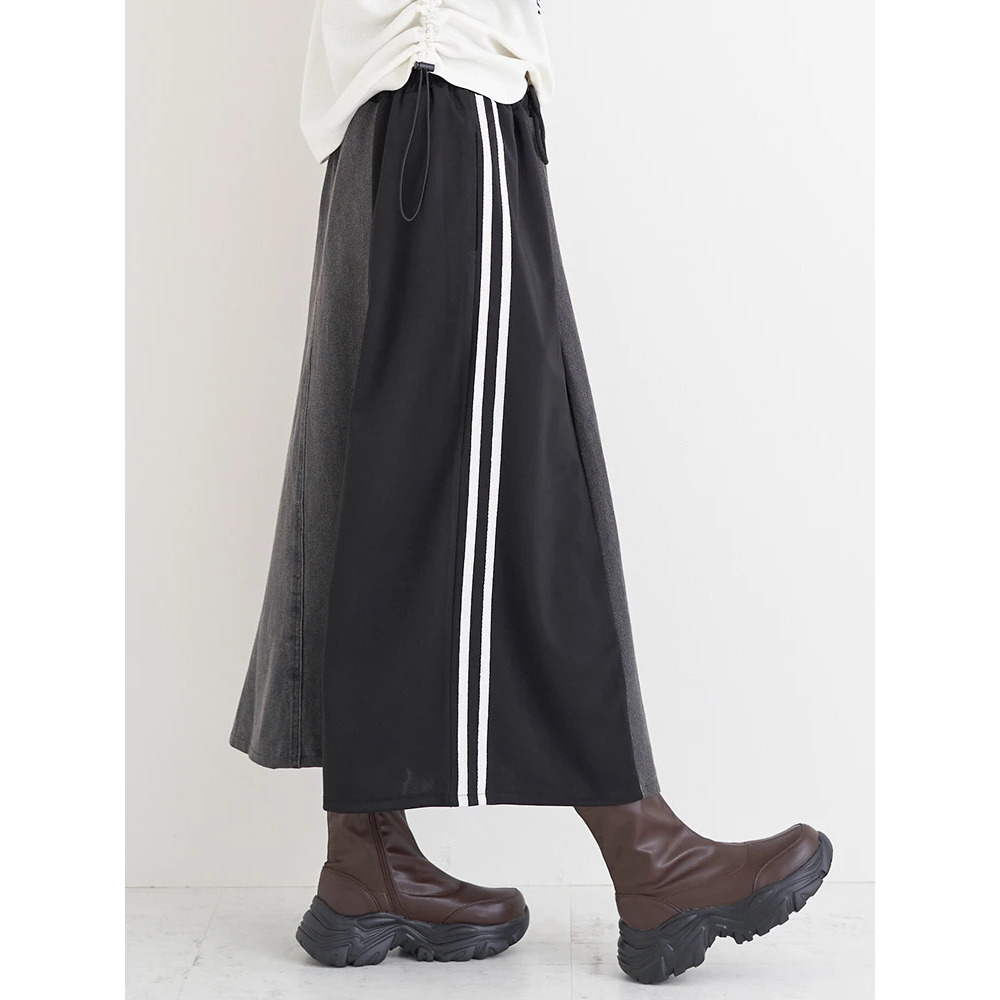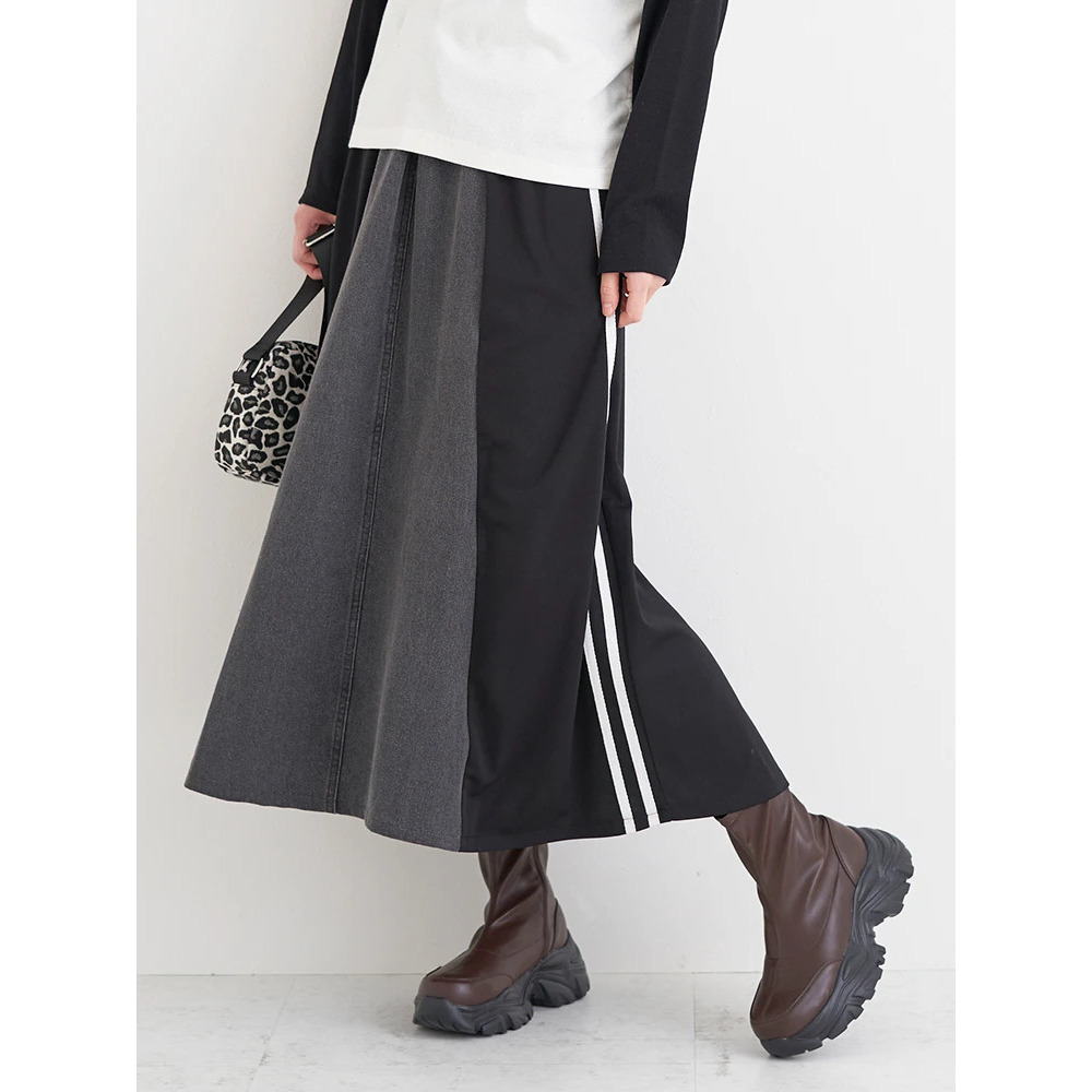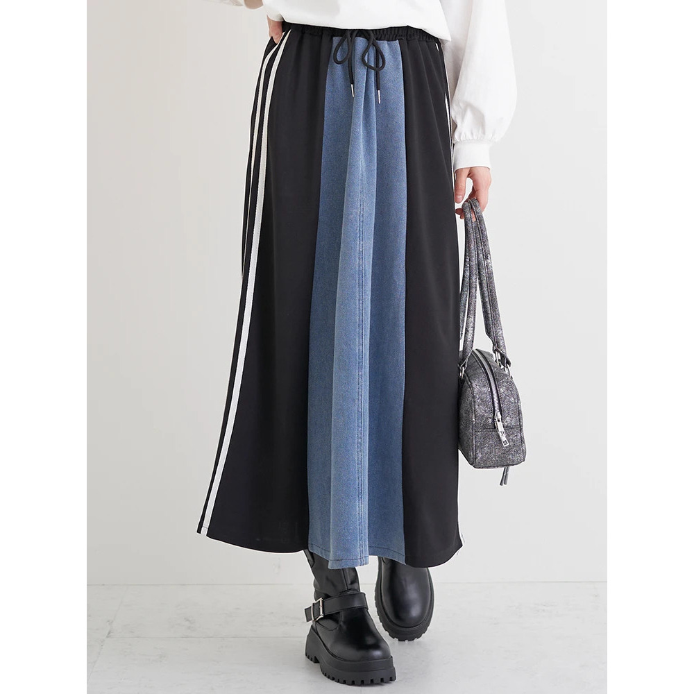 ポンチ×デニム切り替えサイドラインスカート