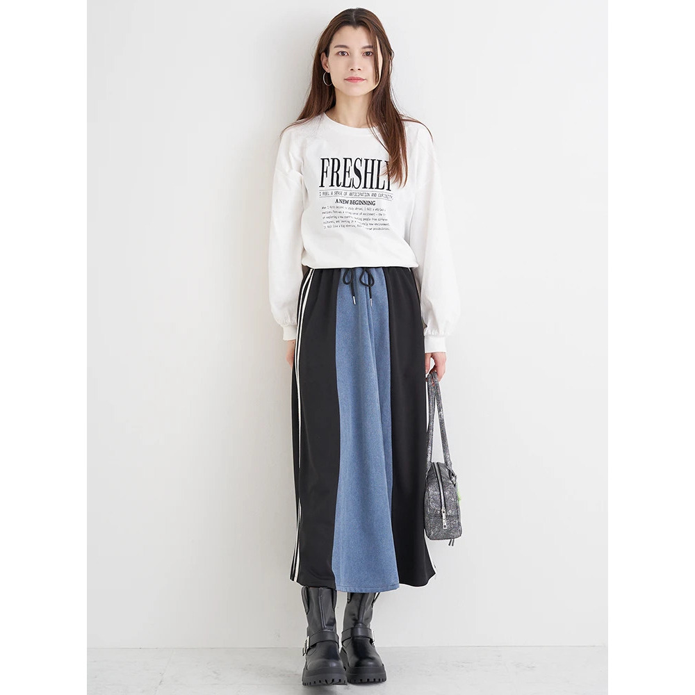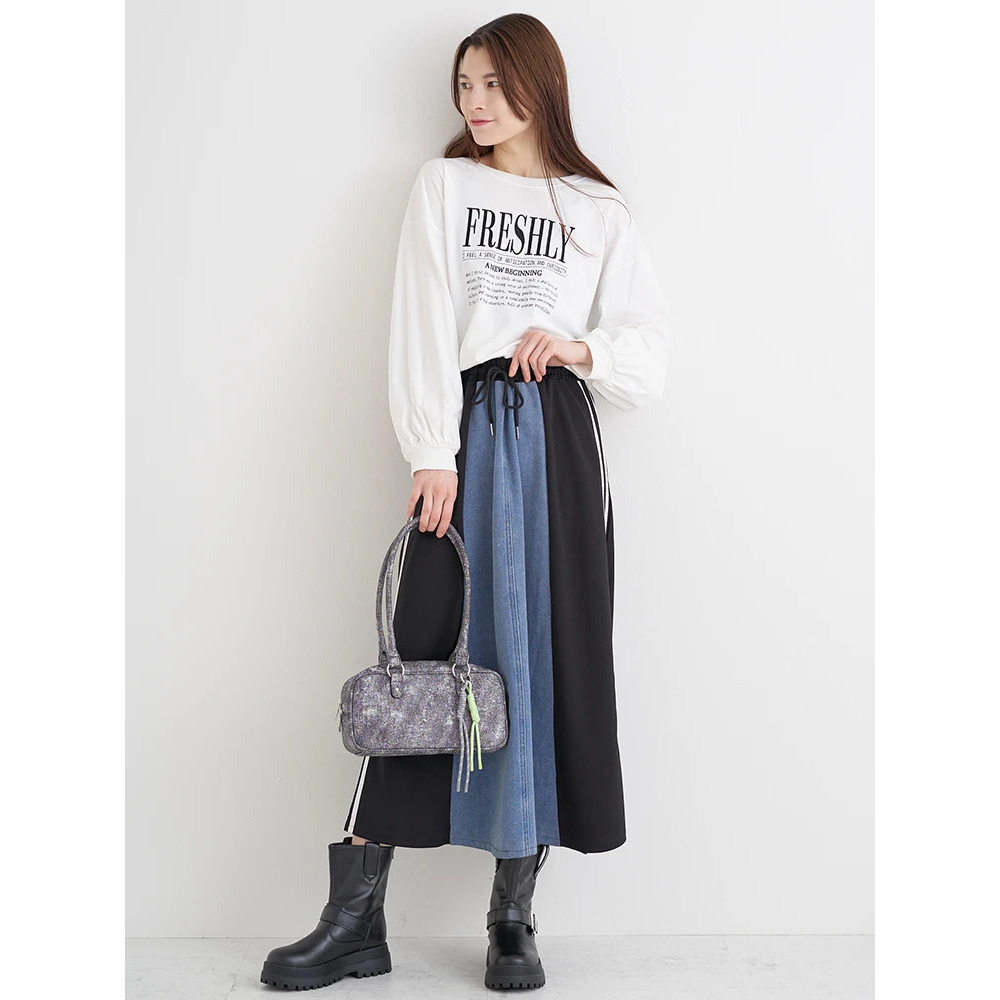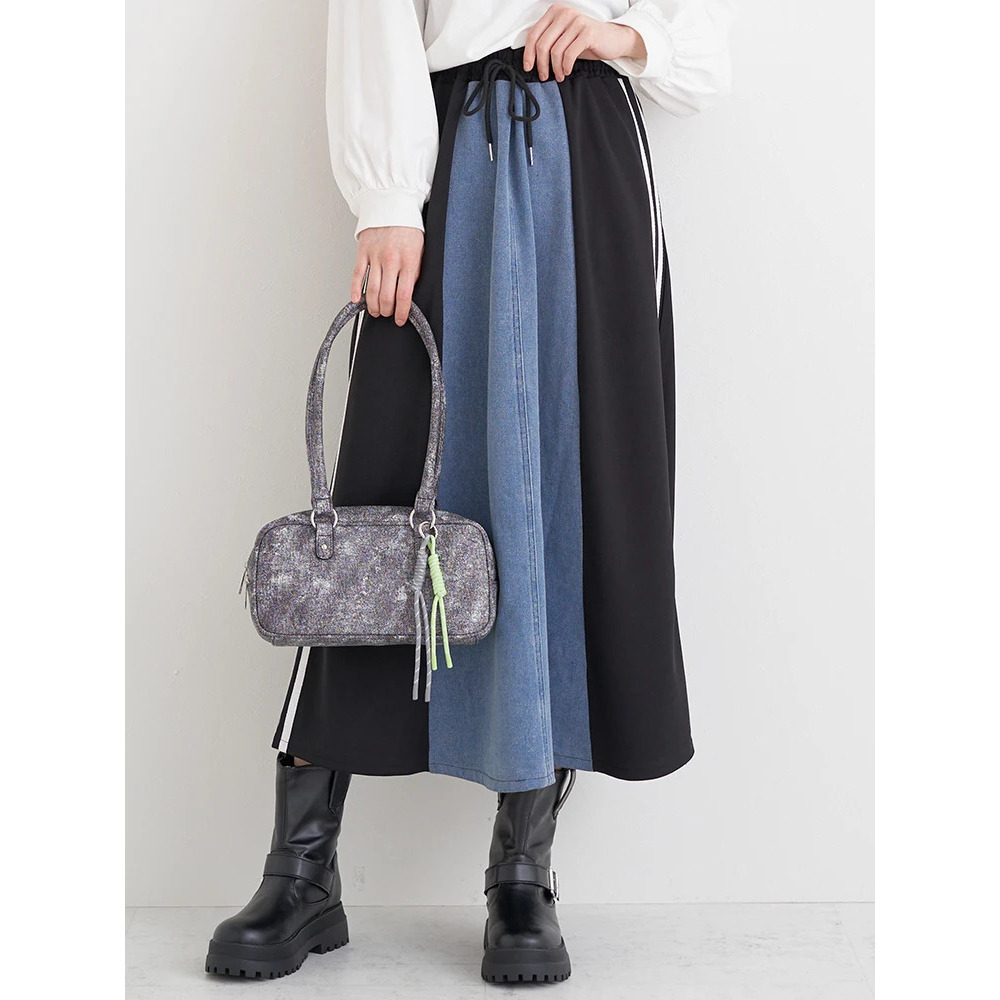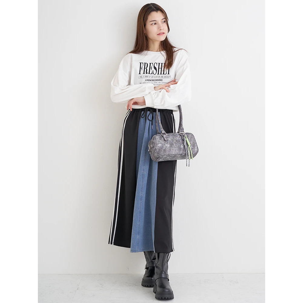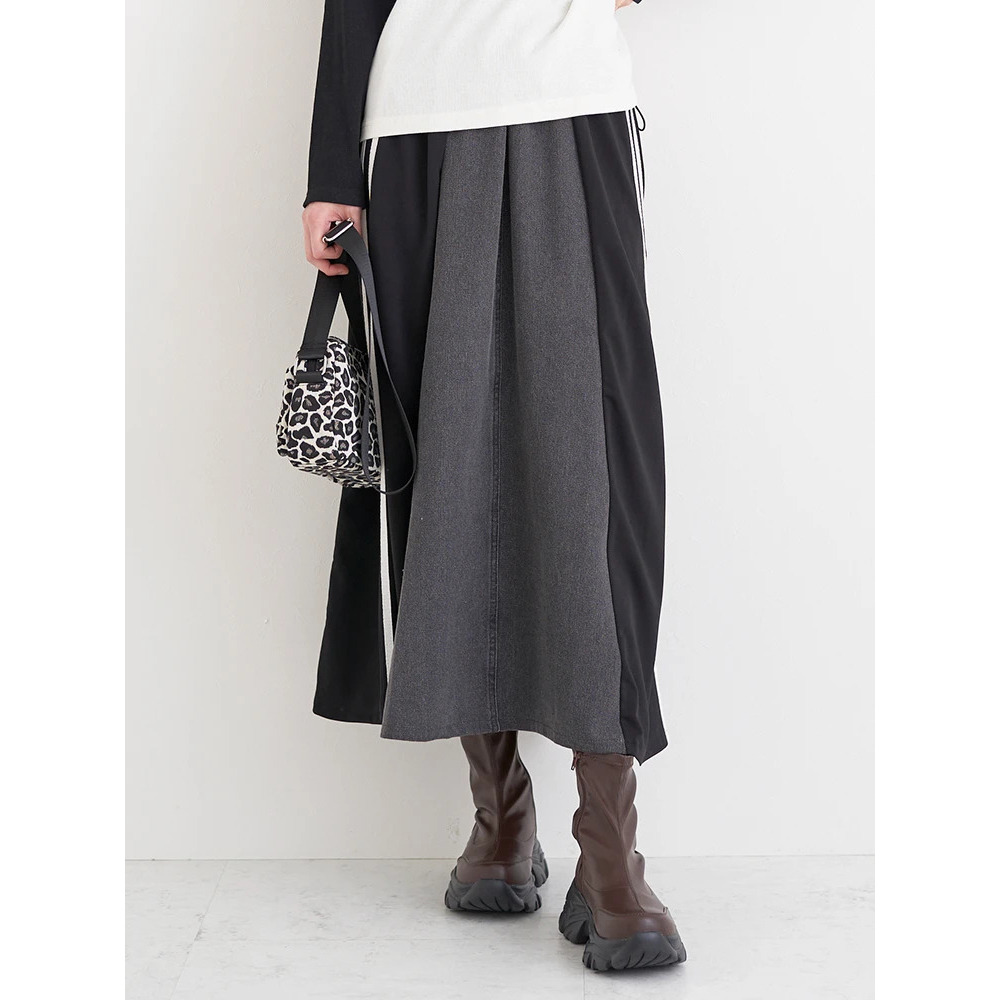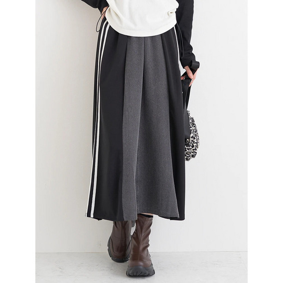 ポンチ×デニム切り替えサイドラインスカート
