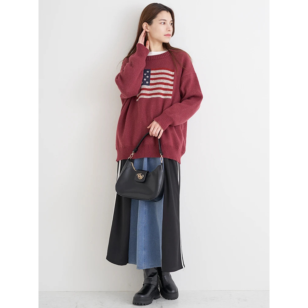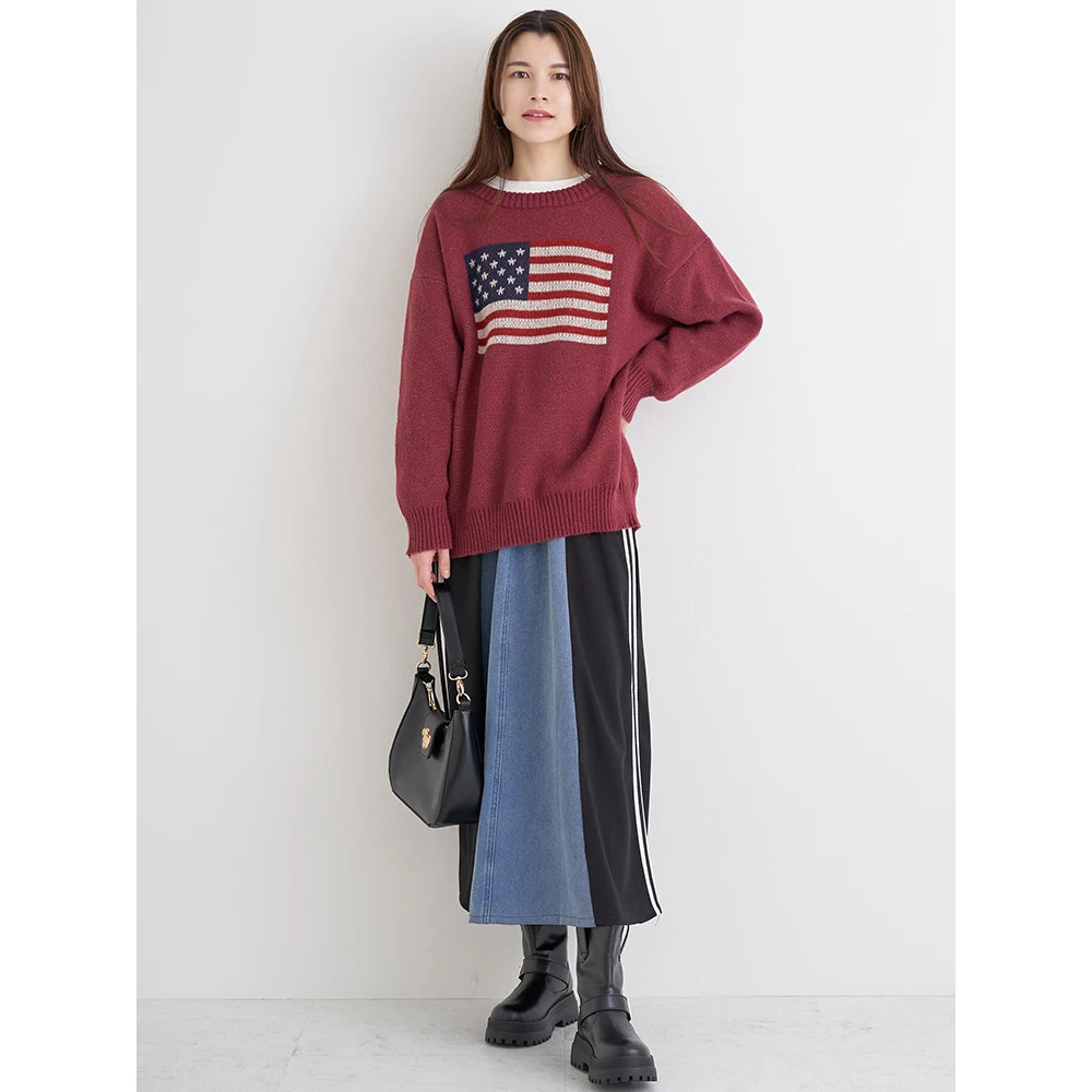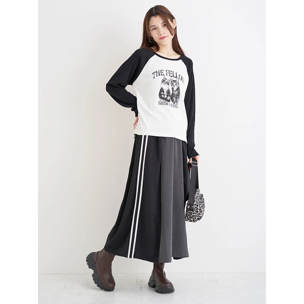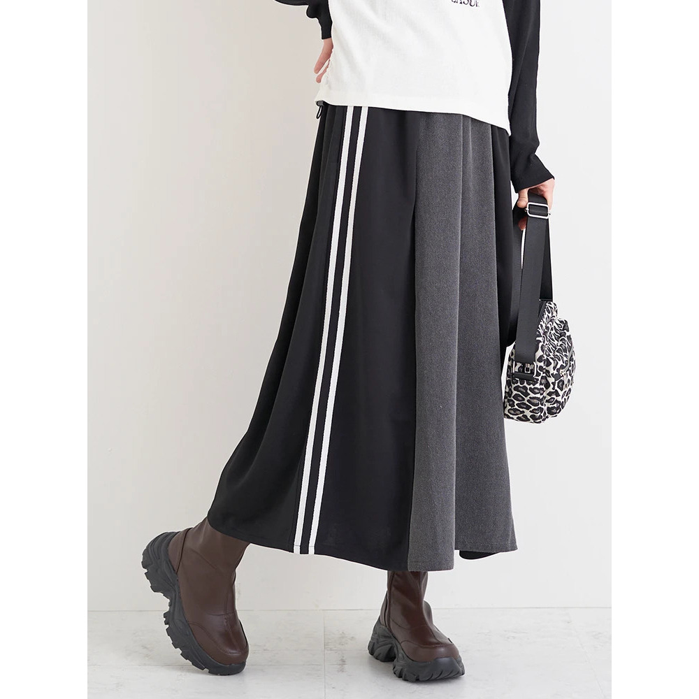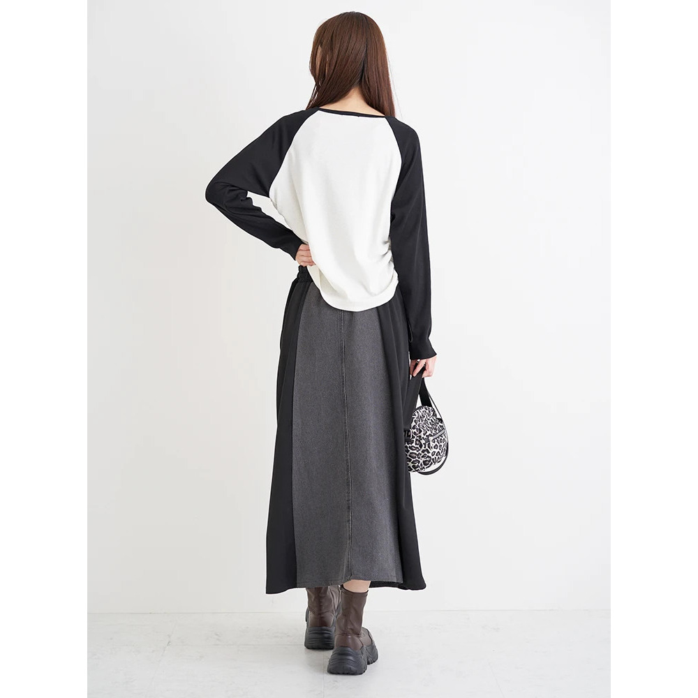 ポンチ×デニム切り替えサイドラインスカート